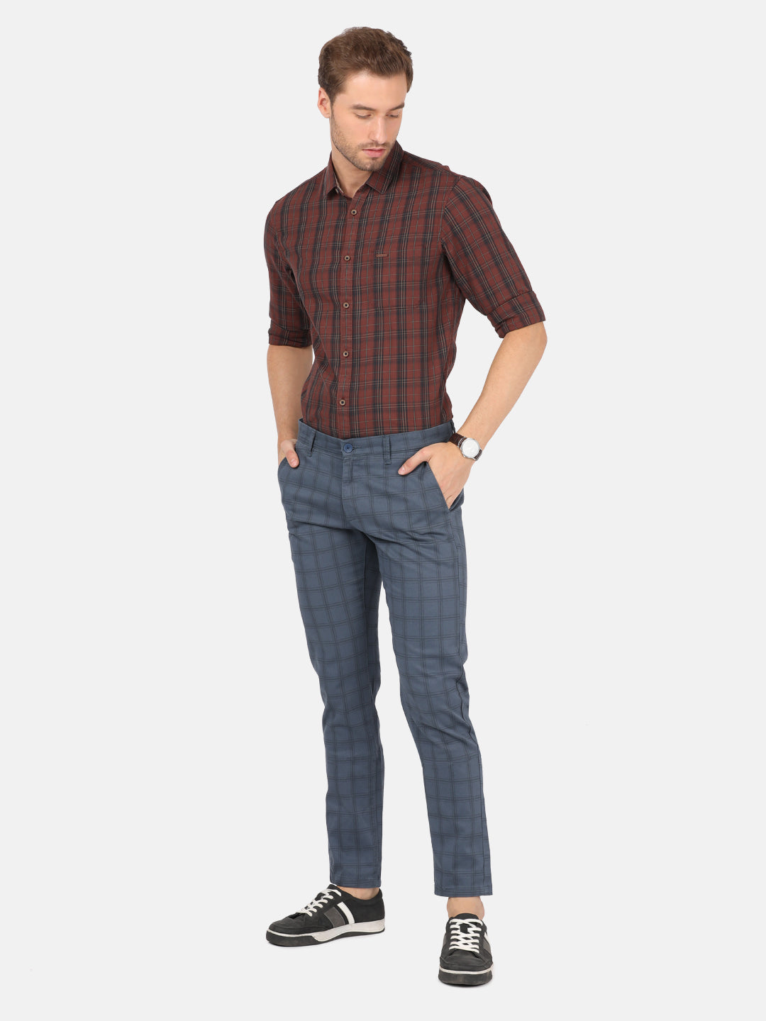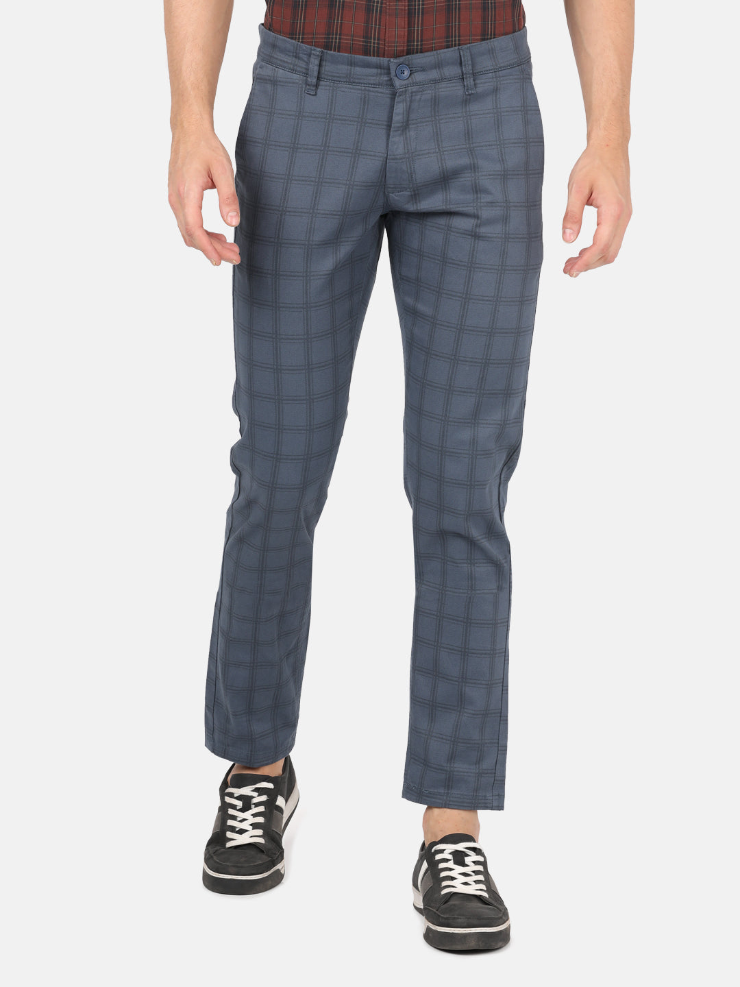 Checked Casual Navy Trouser