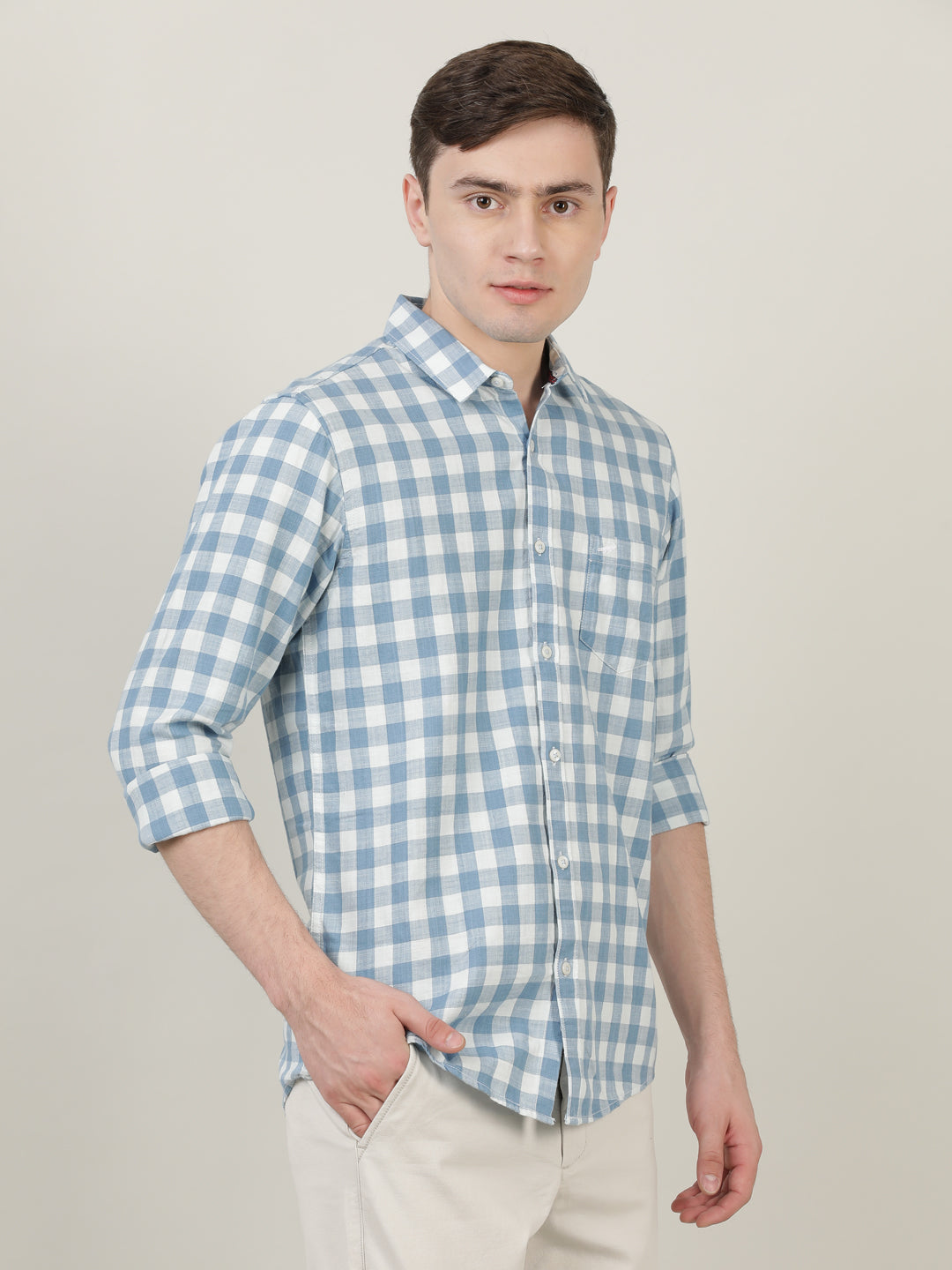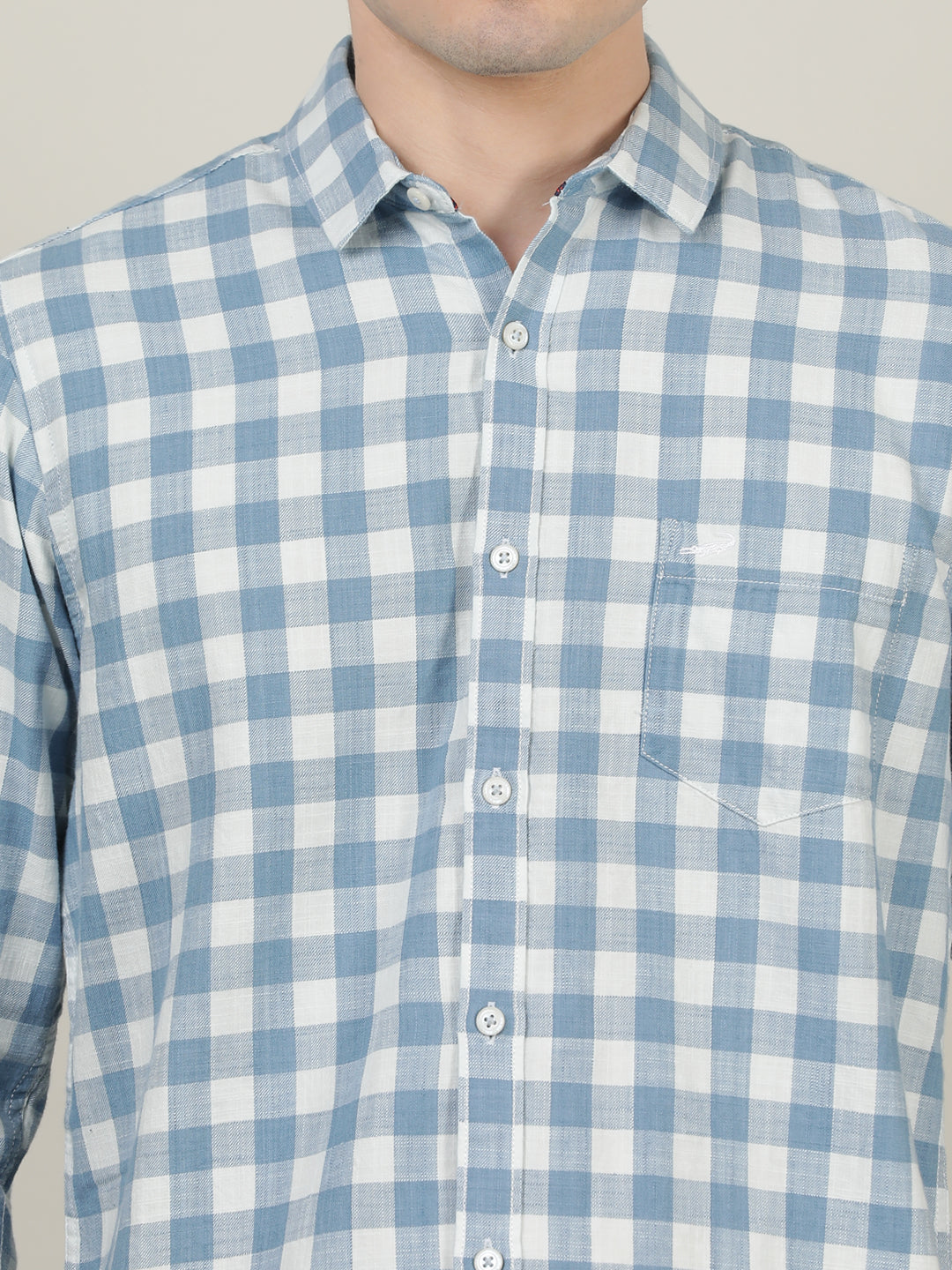 Checked Full Sleeve 100% Cotton Blue Shirt