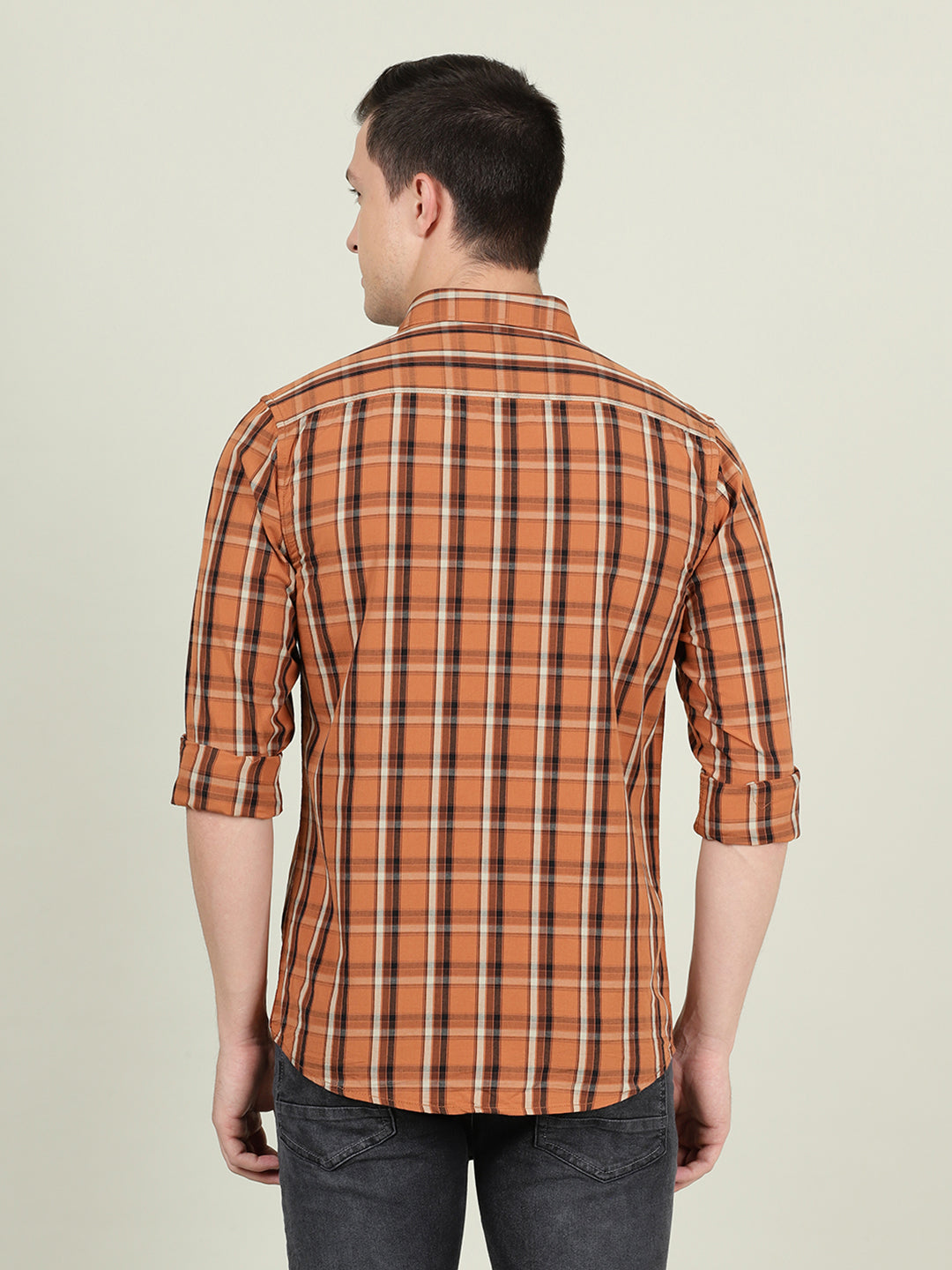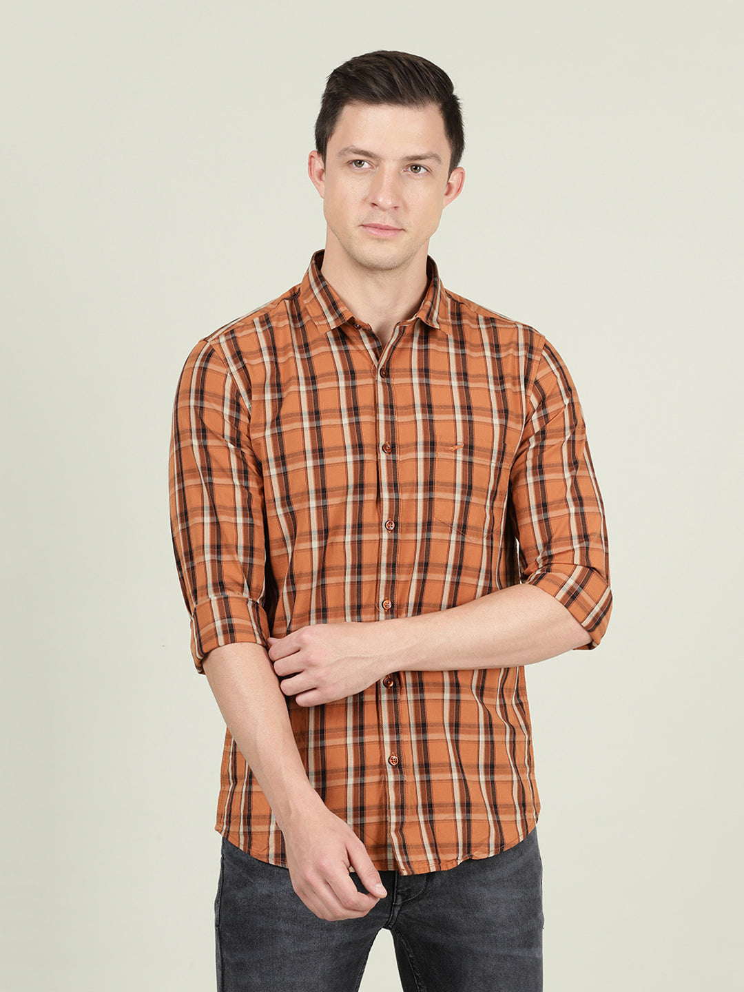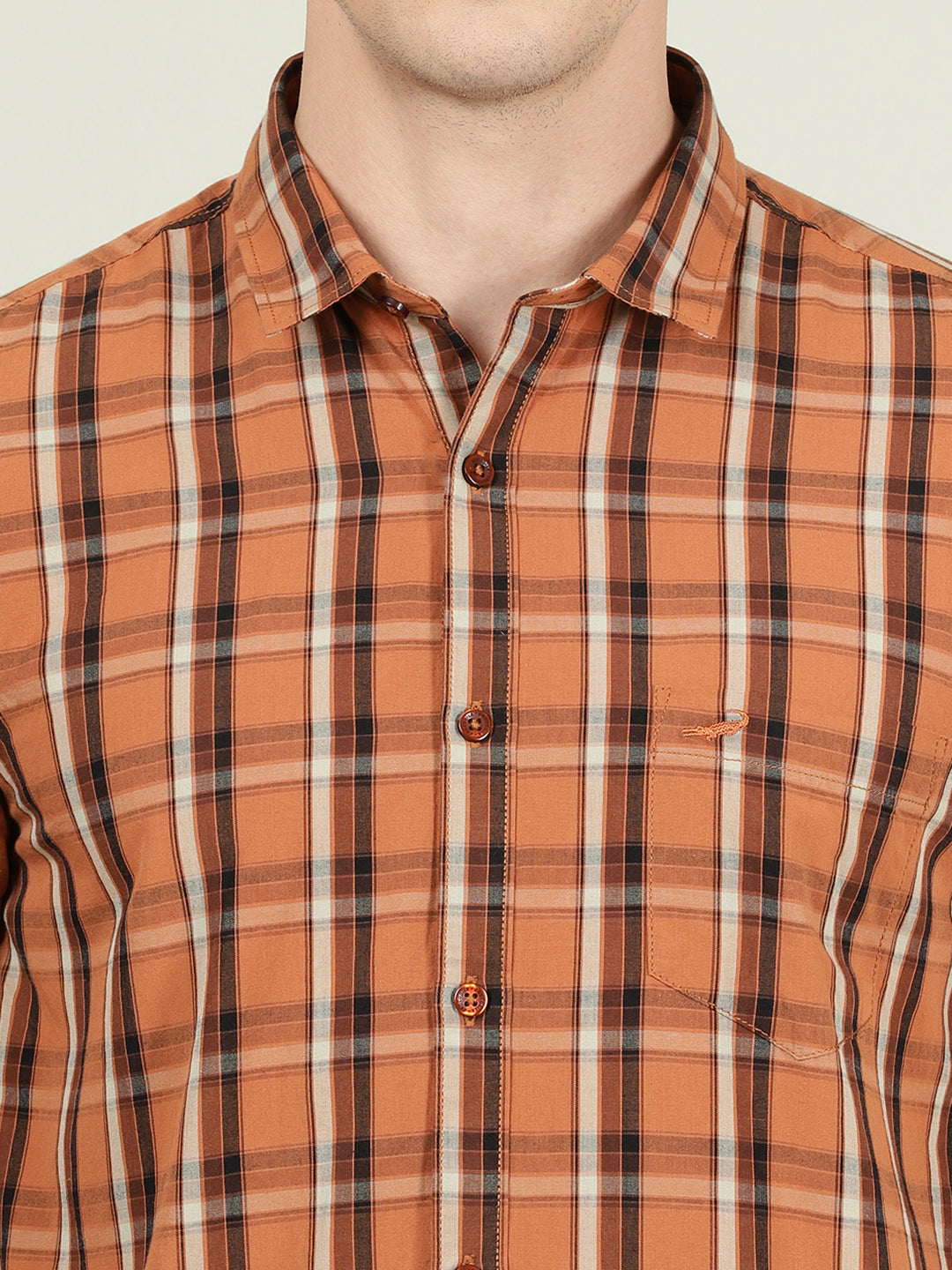 Checked Full Sleeve 100% Cotton Brown Shirt