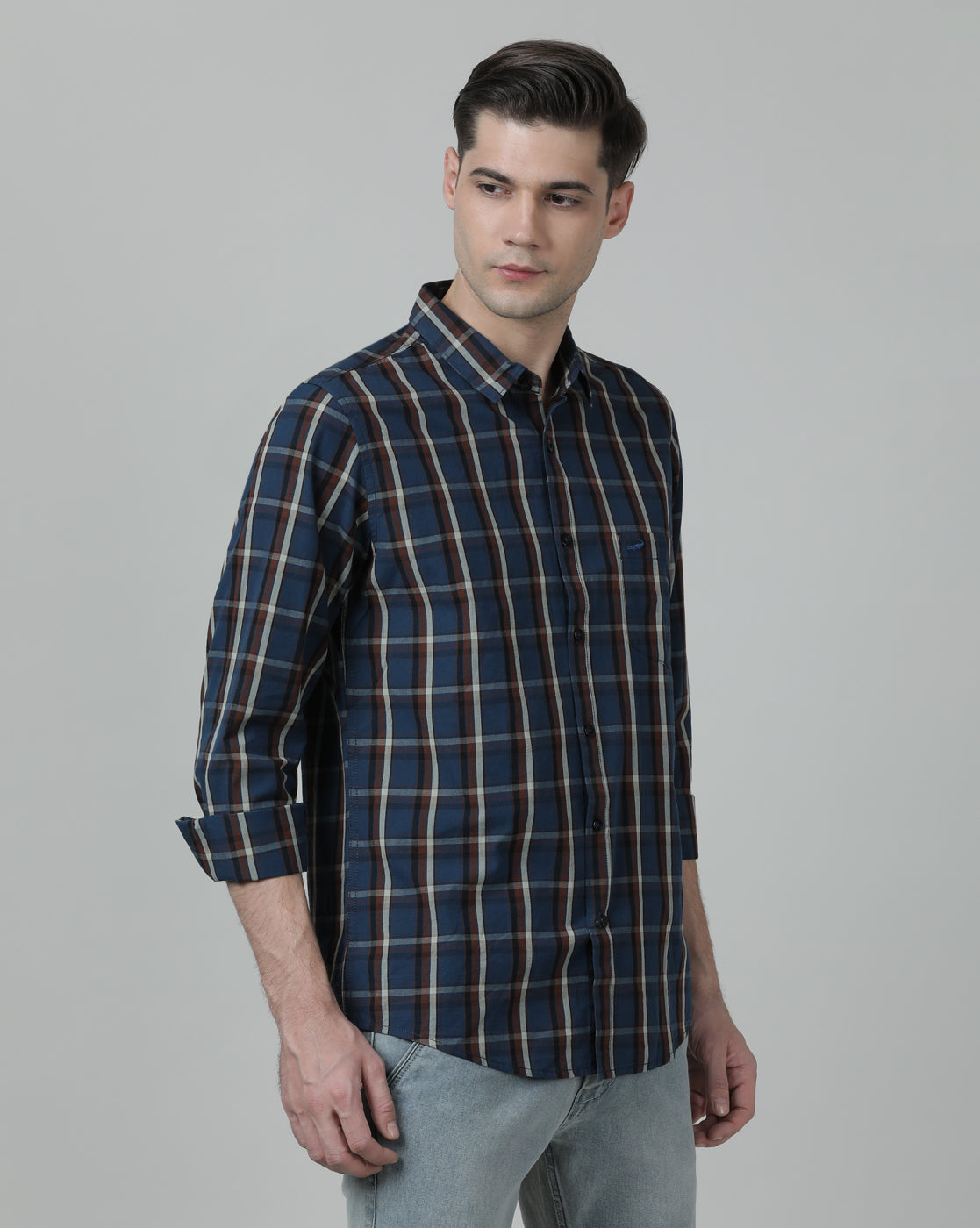 Checked Navy Casual Full Sleeve 100% Cotton Shirt