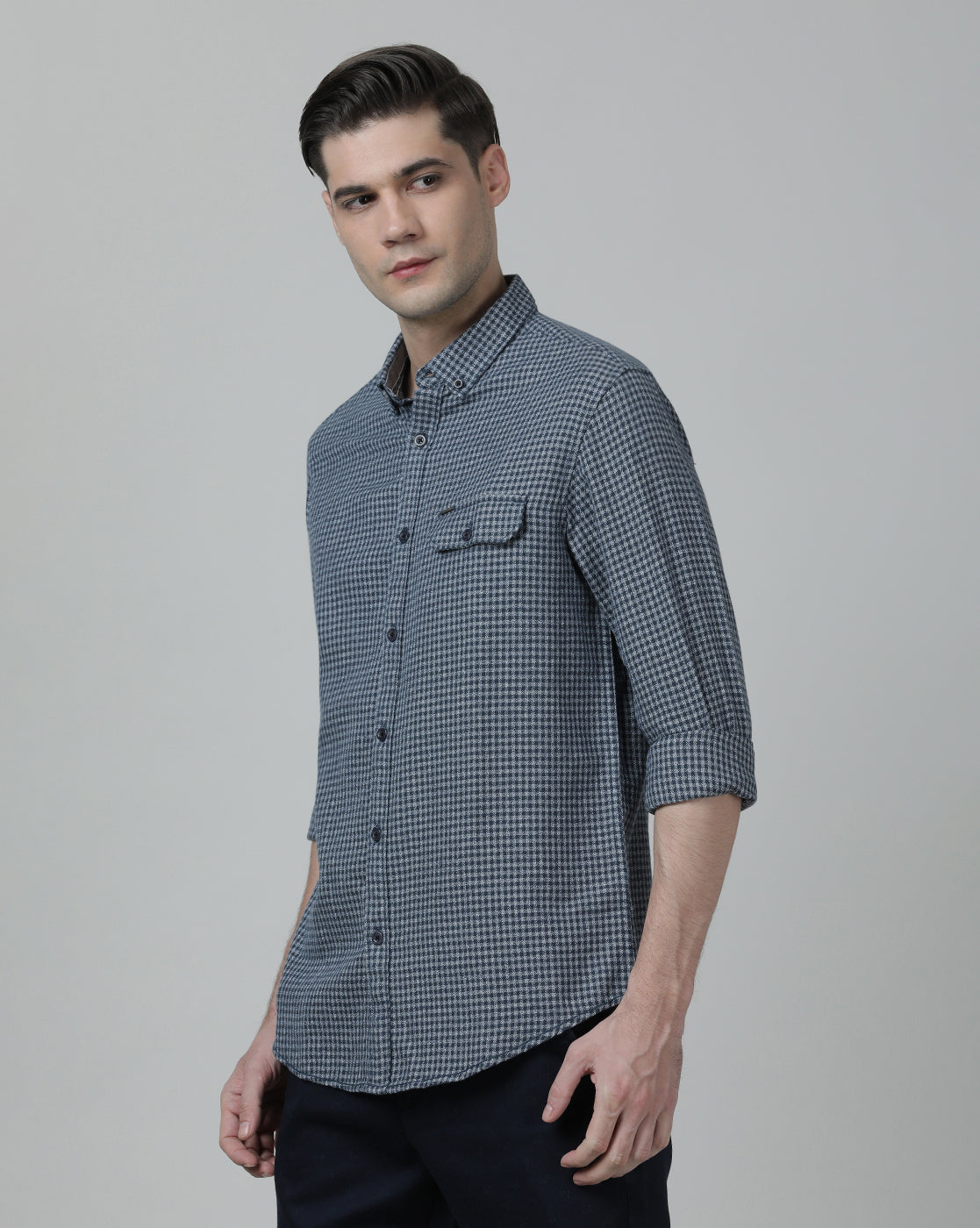 Checked Navy Full Sleeve 100% Cotton Casual Shirt