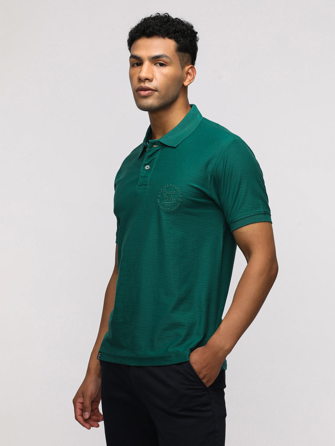 Classic Green T-Shirt with Slim Fit And Collared Design