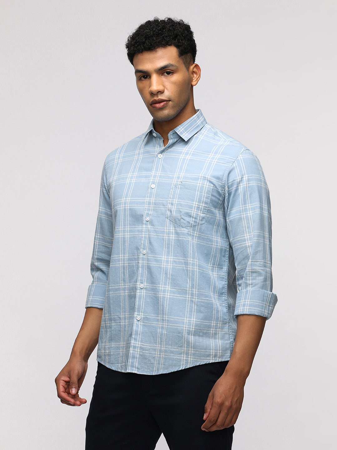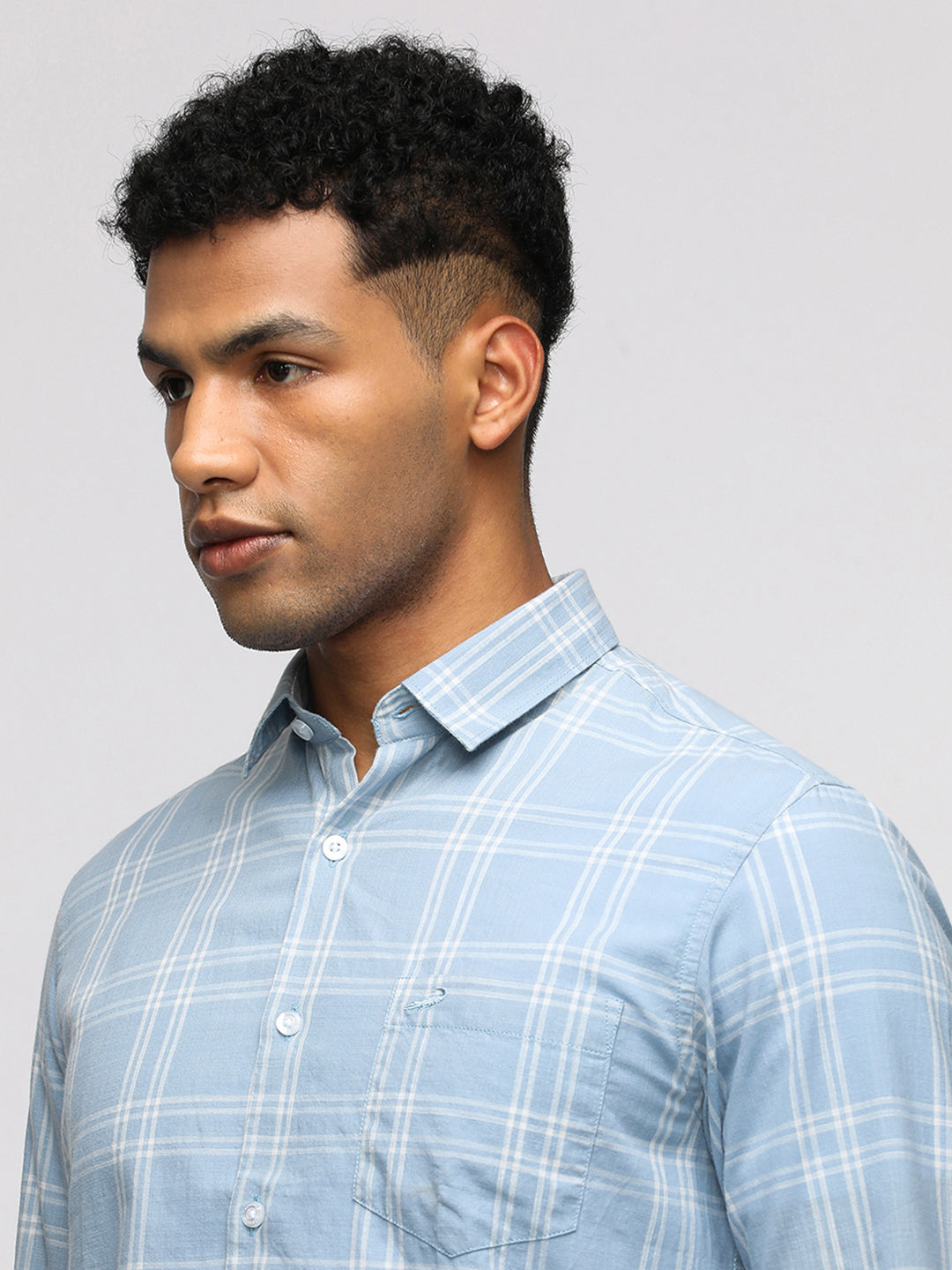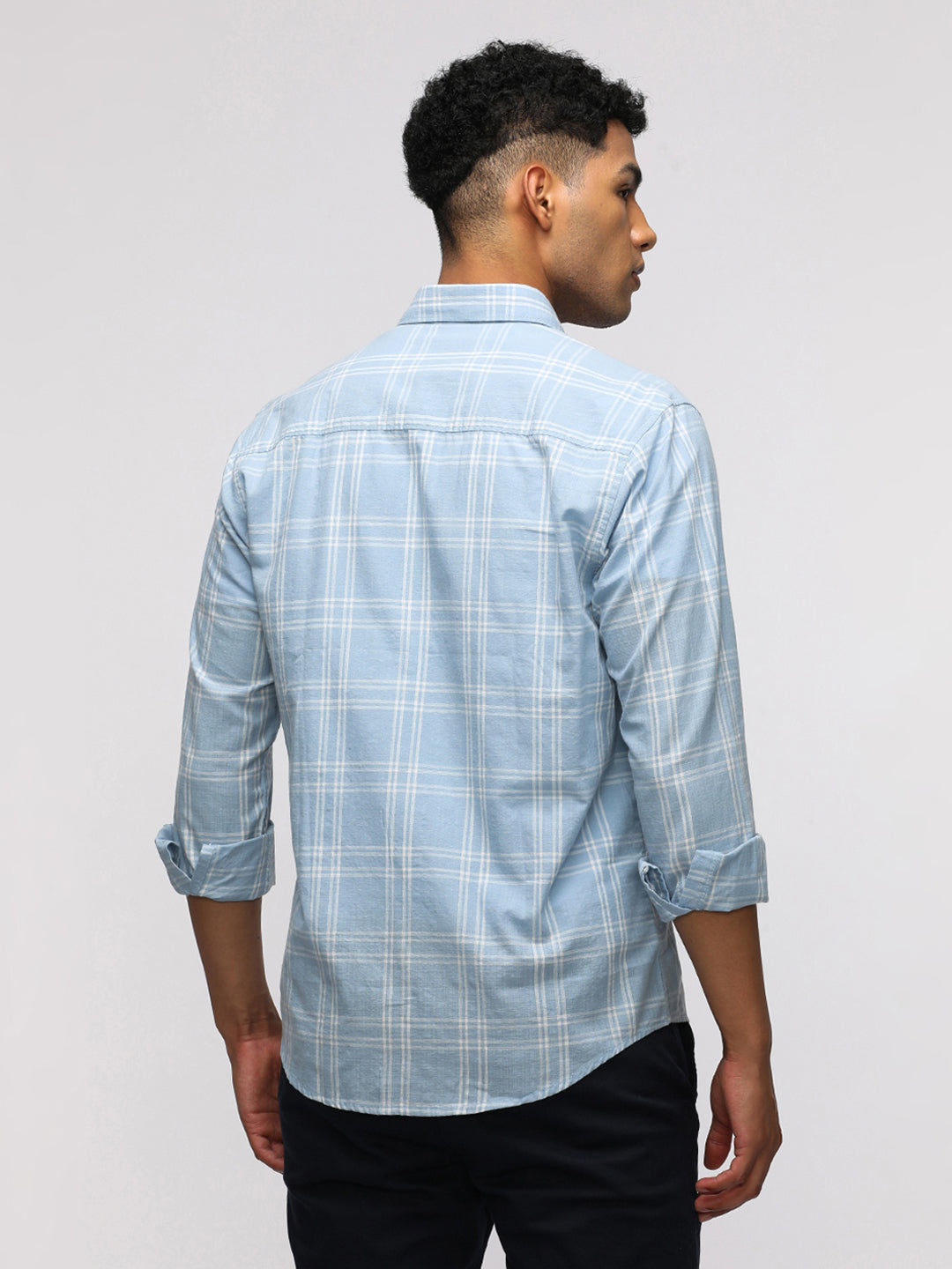 Comfort Fit Sport Light Blue Checked Shirt for Stylish Wear