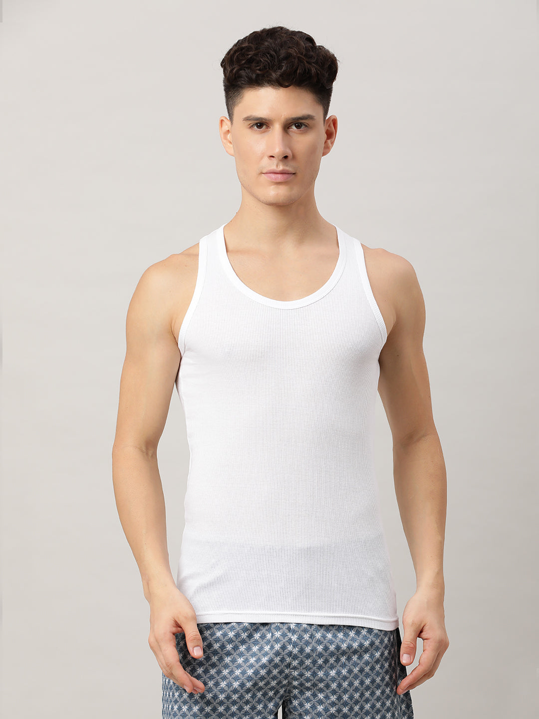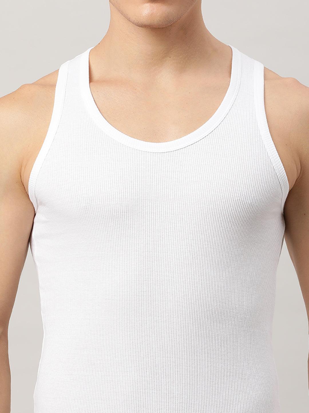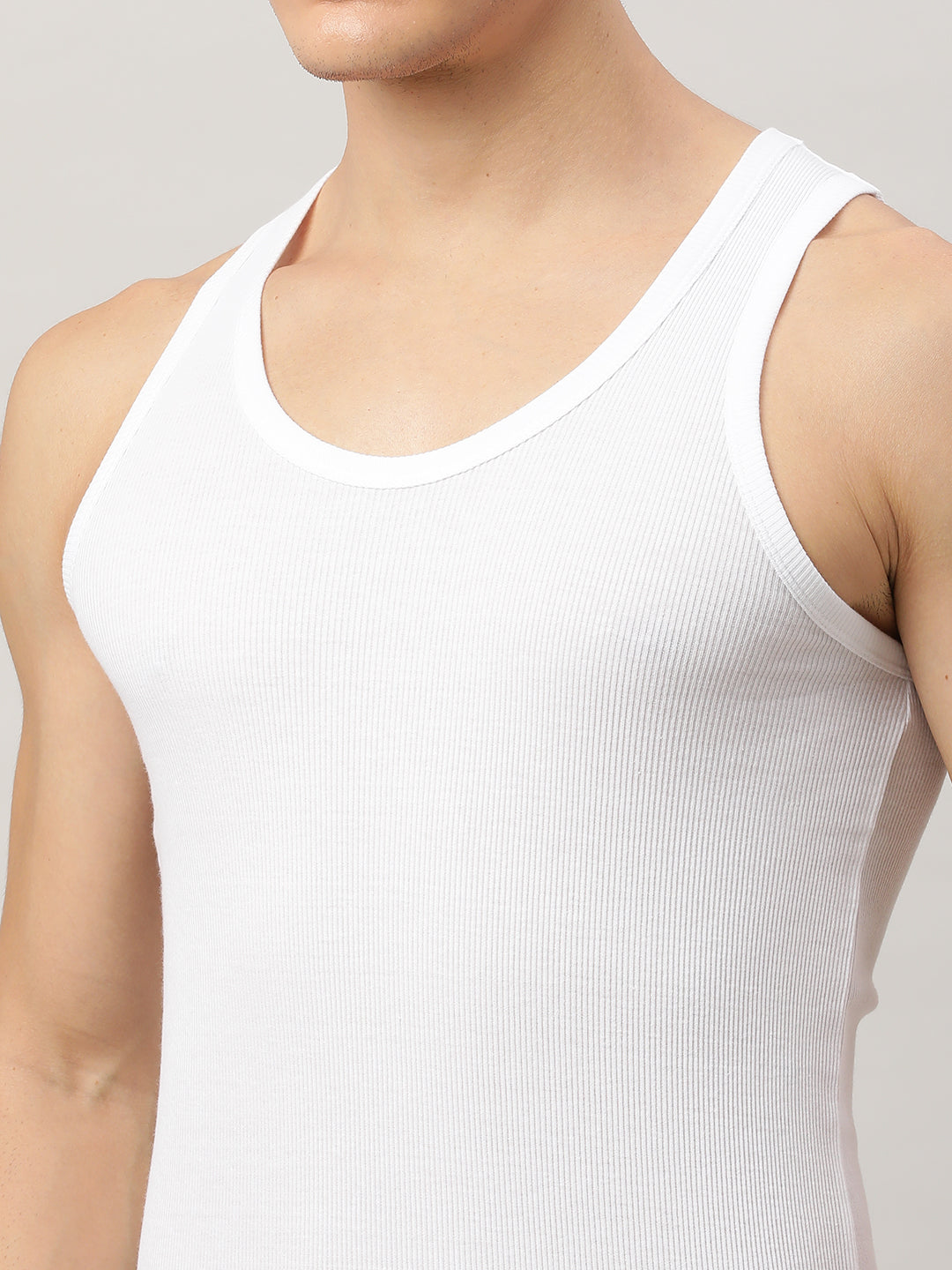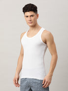 Cotton White Solid Regular Fit Vest