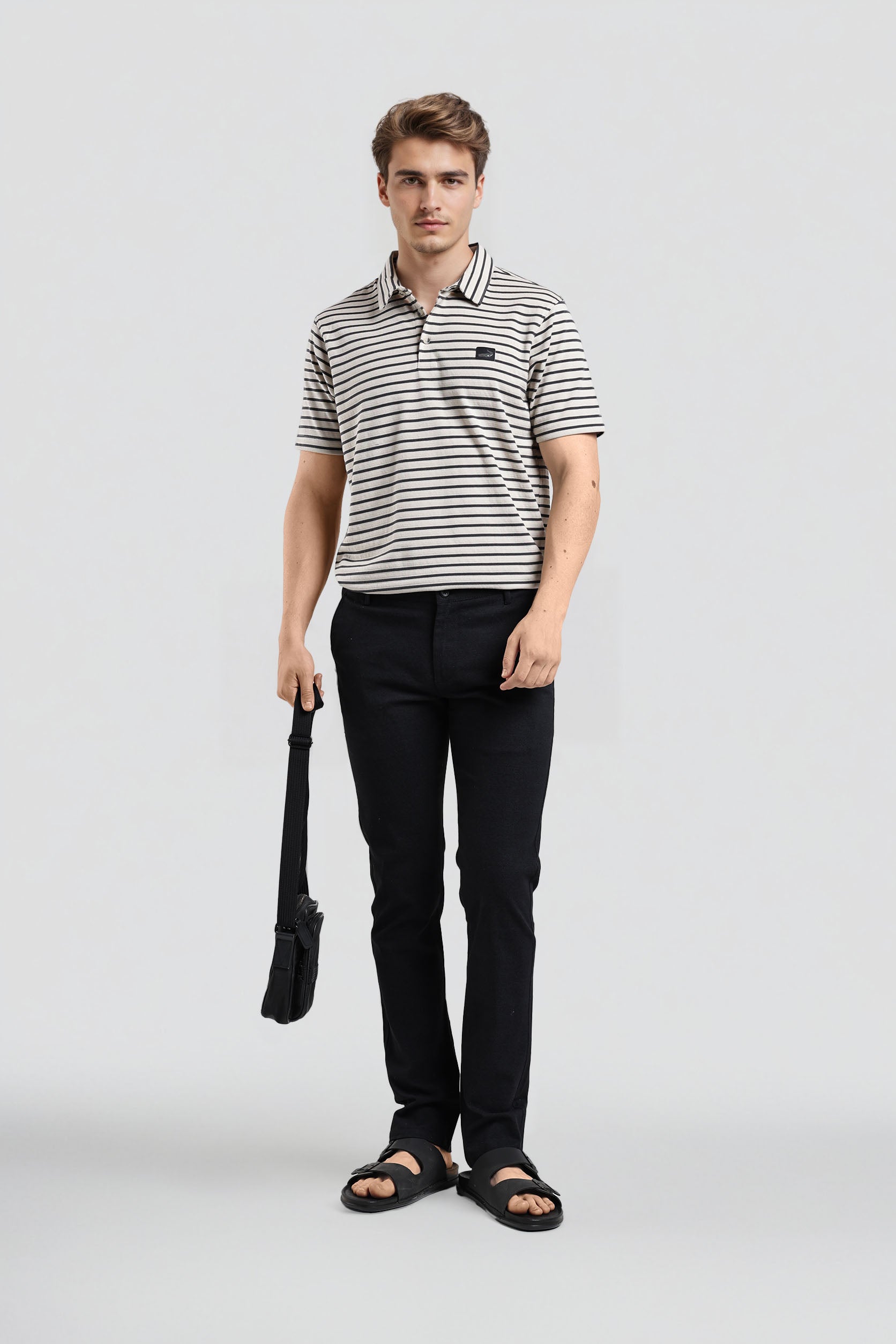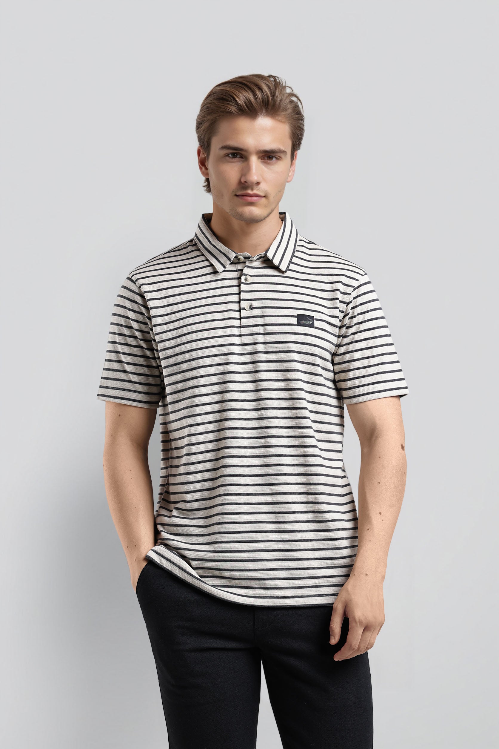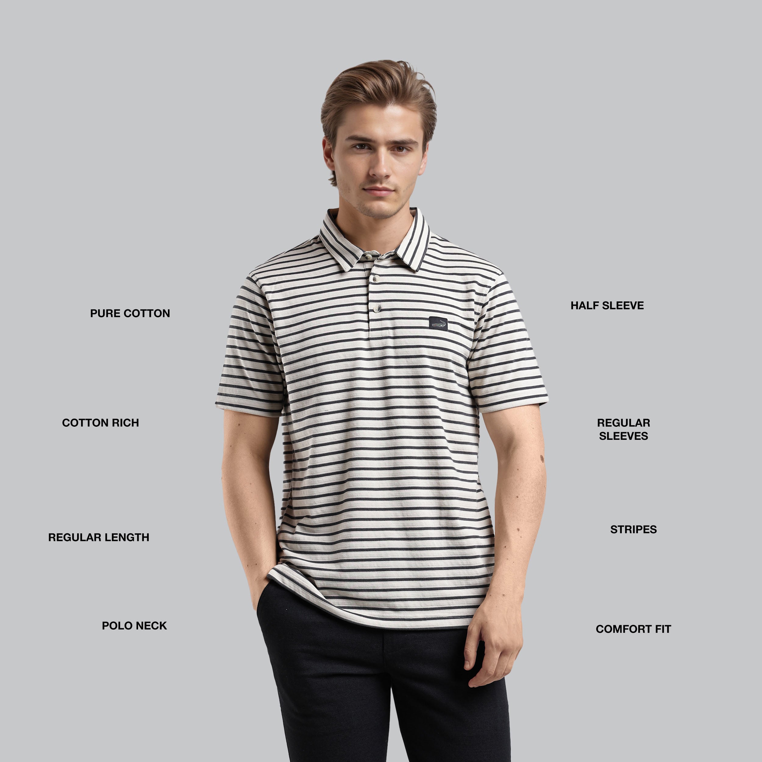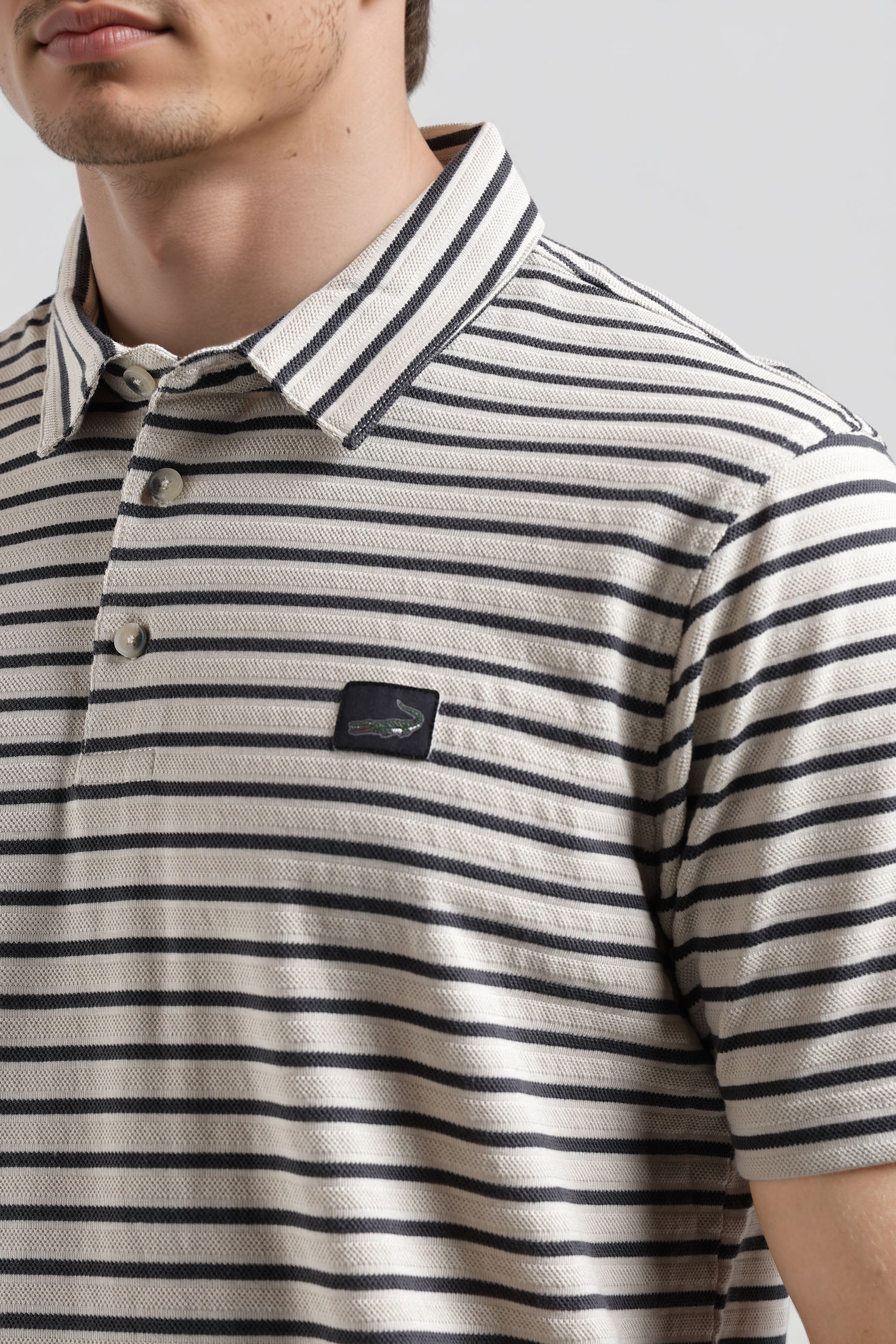 Cream Jacquard Polo T-Shirt Comfort Fit Polo T-Shirts