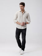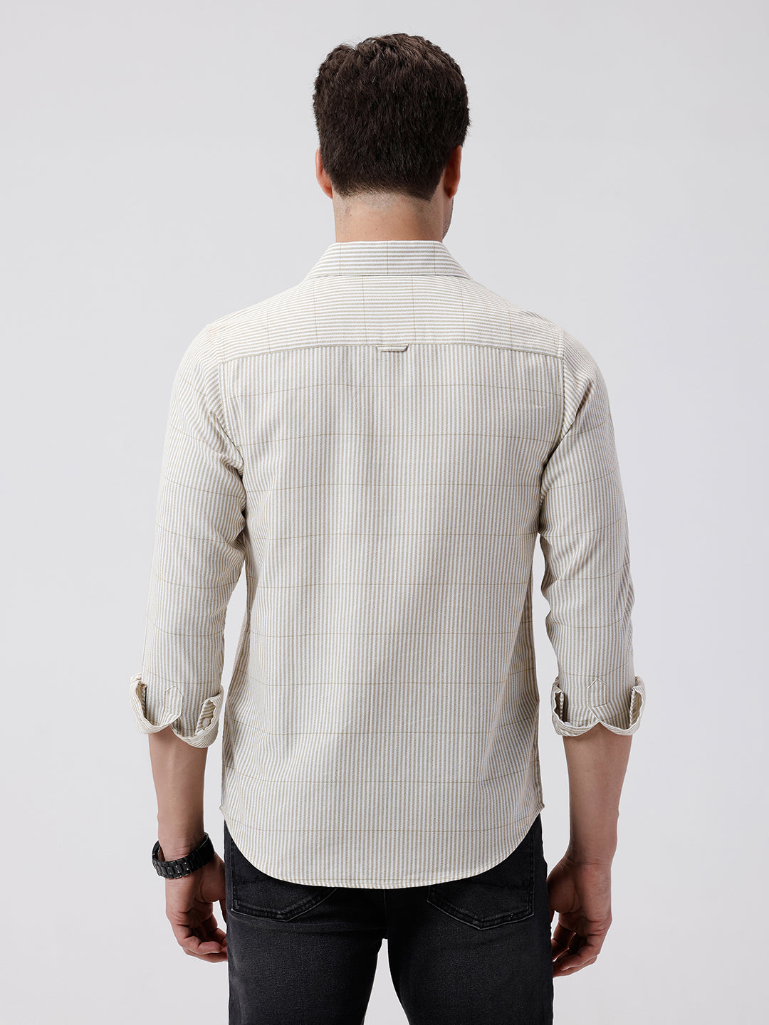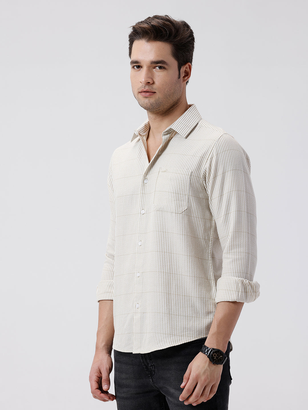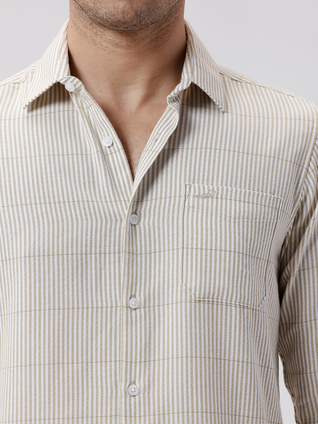 Crepe Texture Stripe Shirt Olive