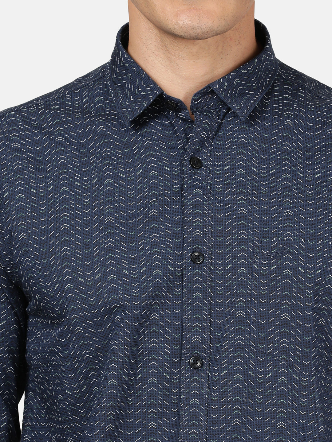Dark Blue Printed Full Sleeve 100% Cotton Casual Shirt