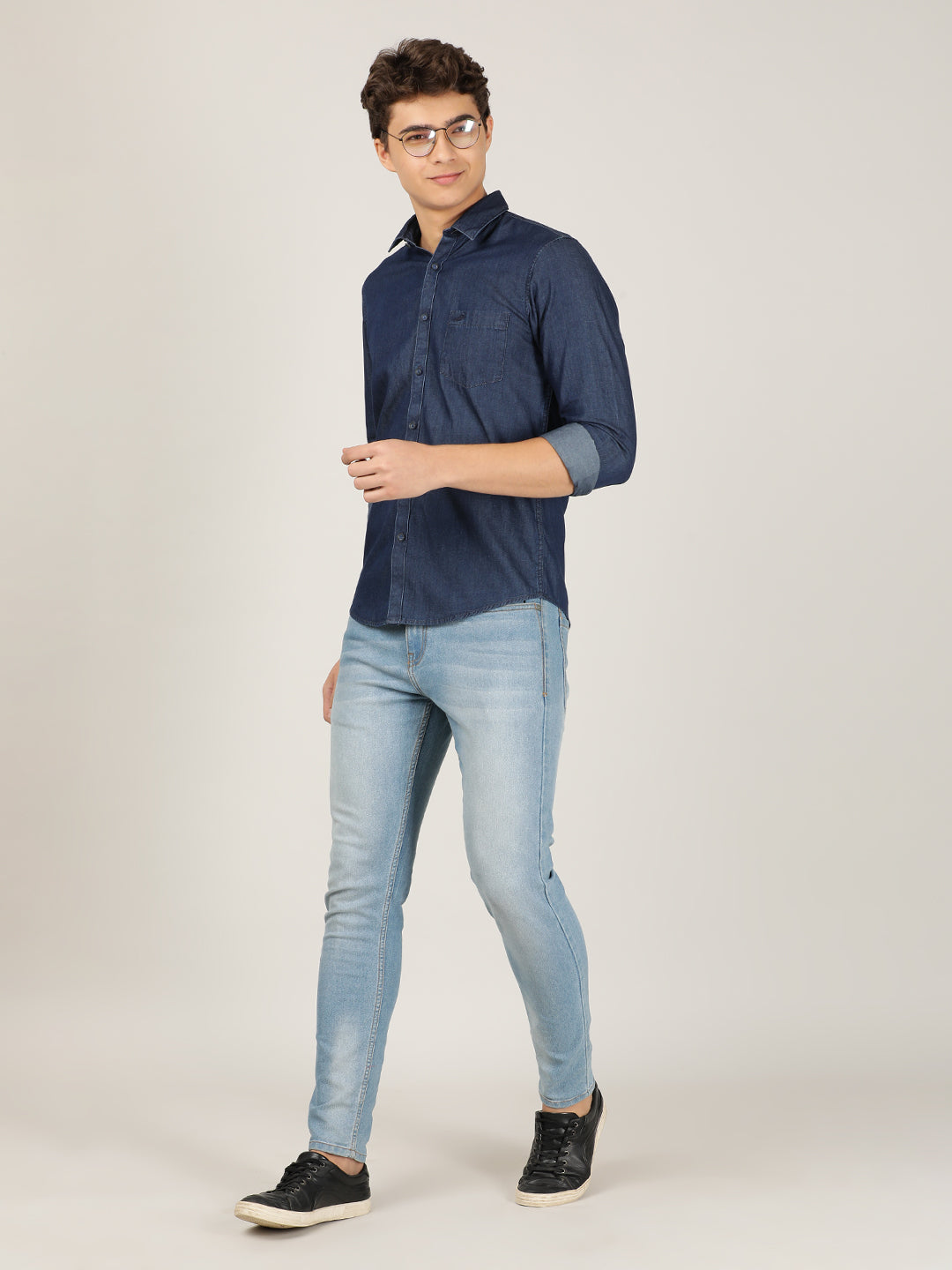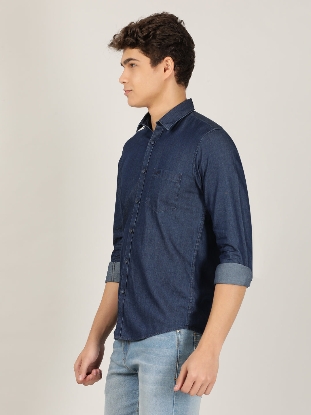 Dark Blue Solid Full Sleeve 100% Cotton Shirt