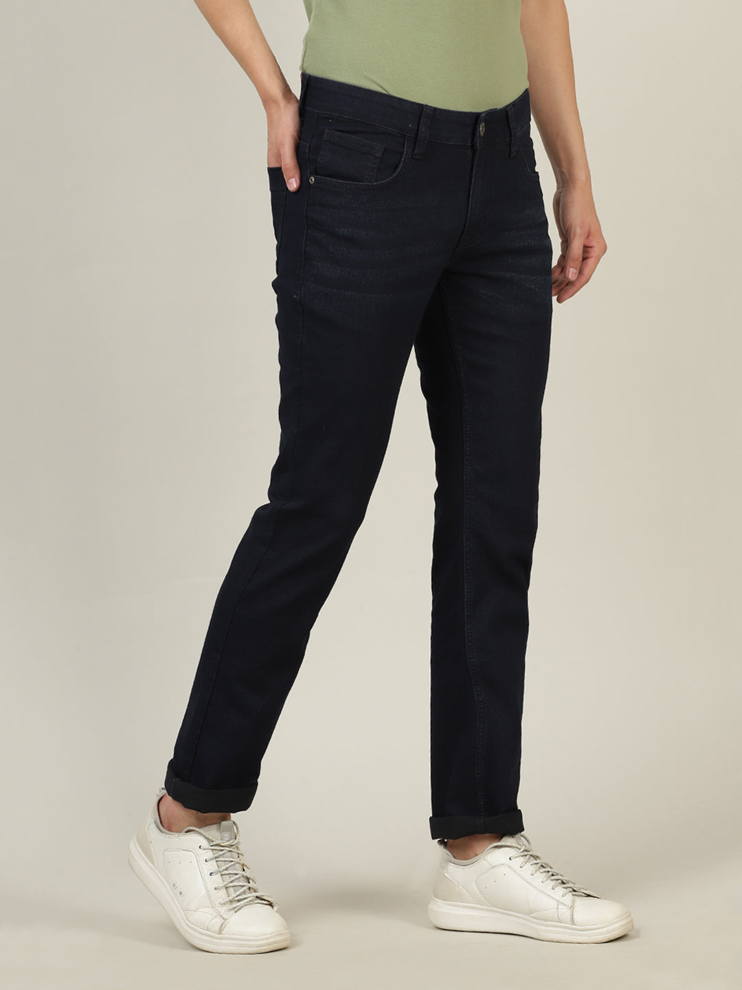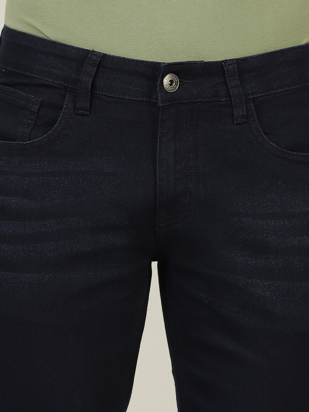 Dark Blue Solid Mid Rise Casual Slim Fit Jean