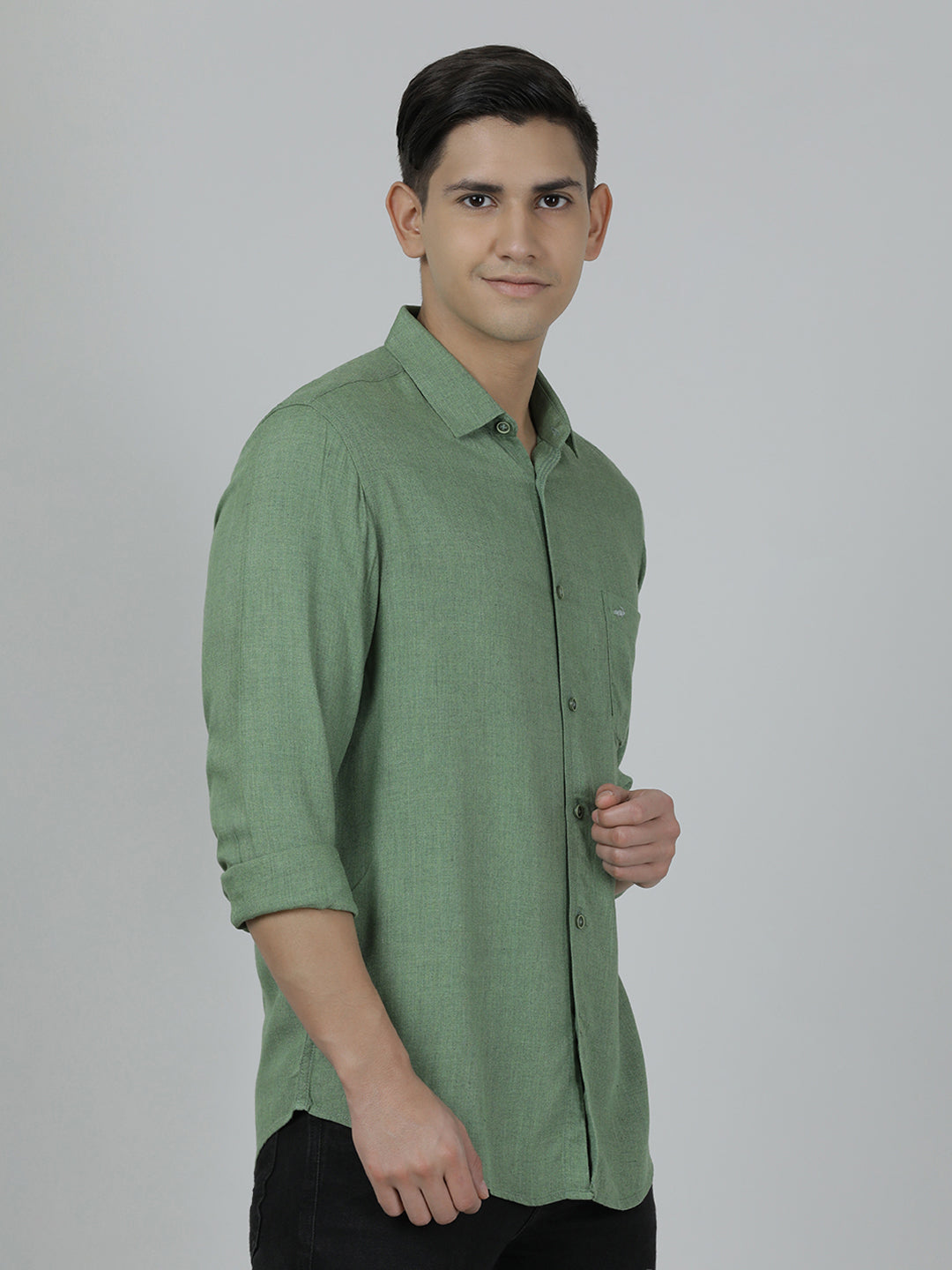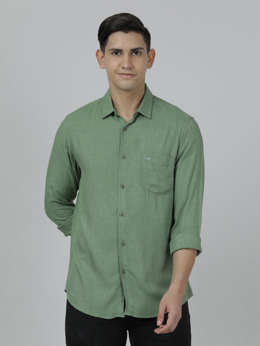 Dark Green Solid Full Sleeve Shirt