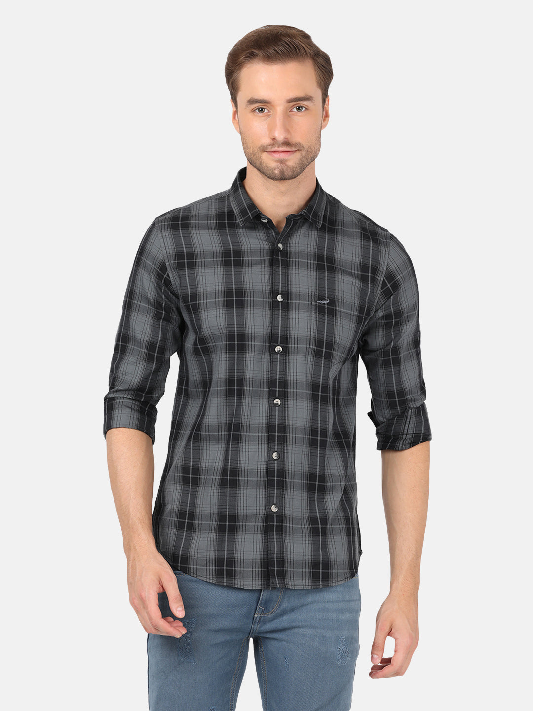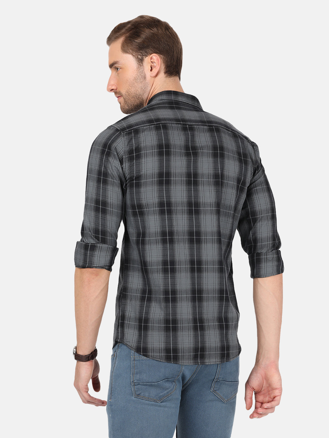 Dark Grey Checked Full Sleeve Casual Shirt