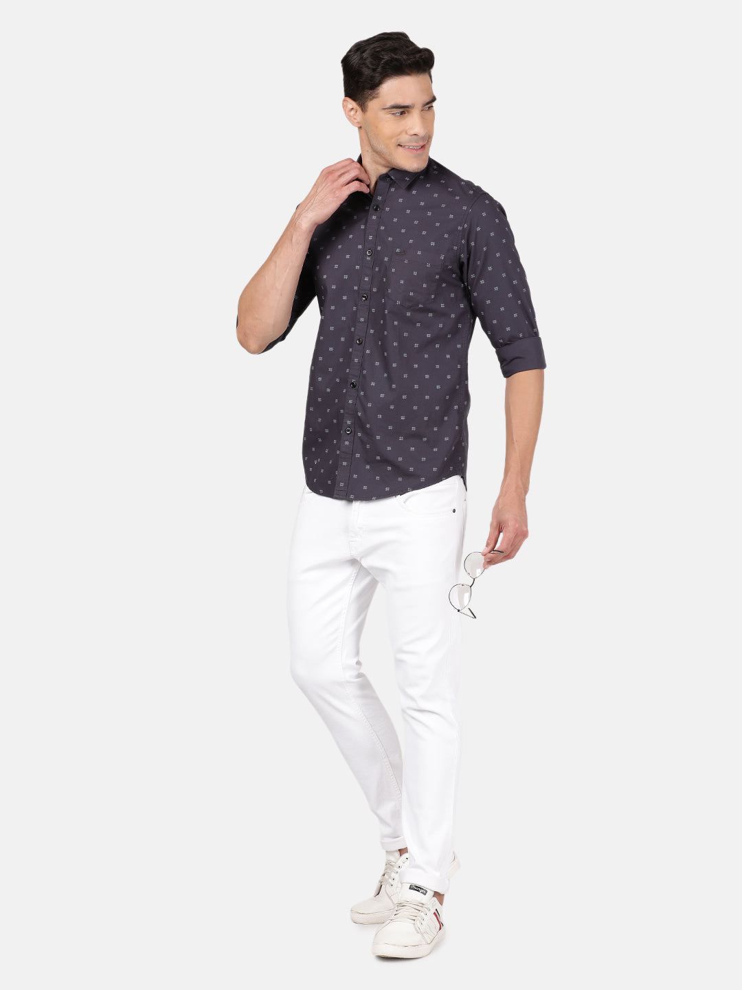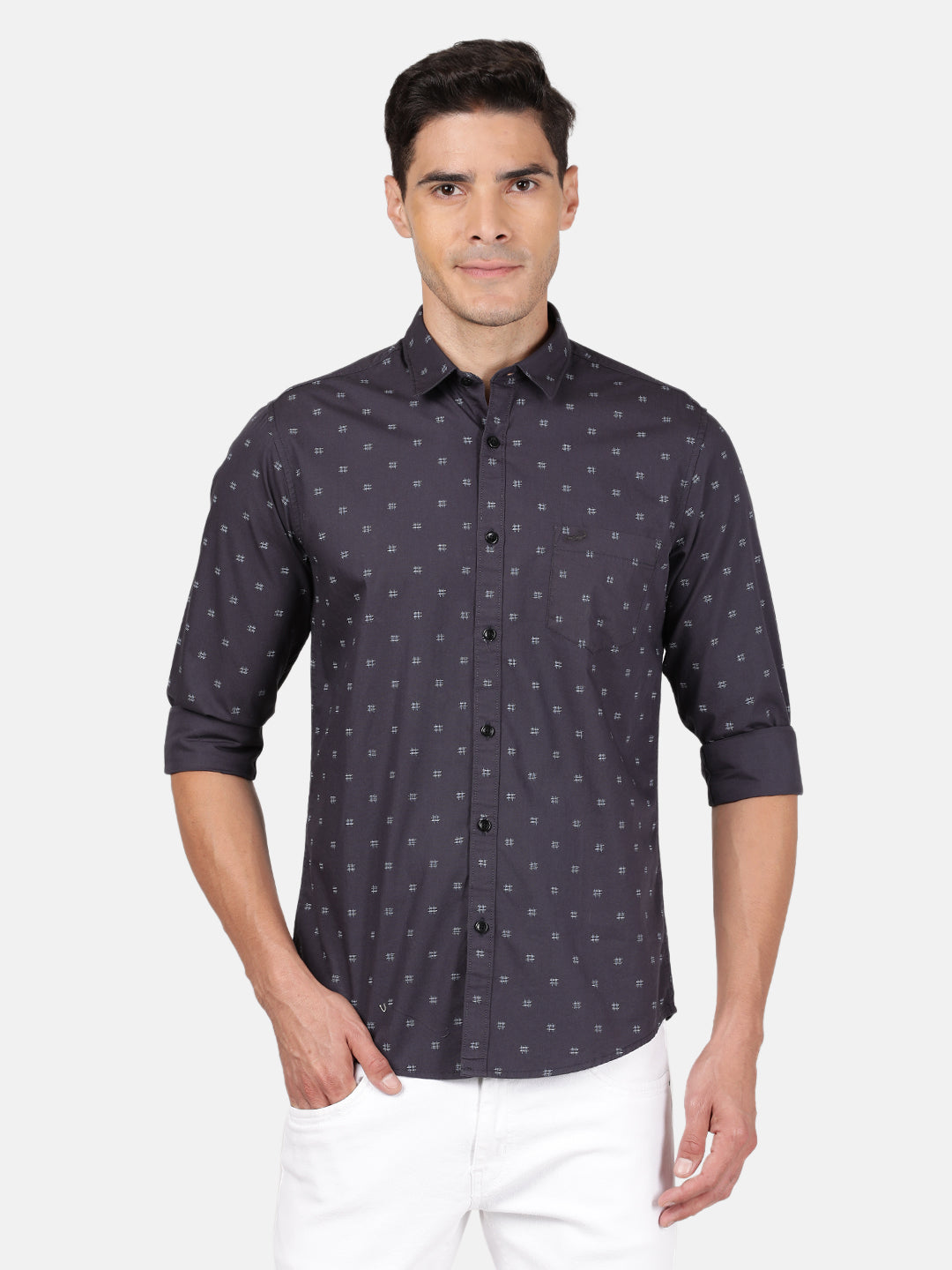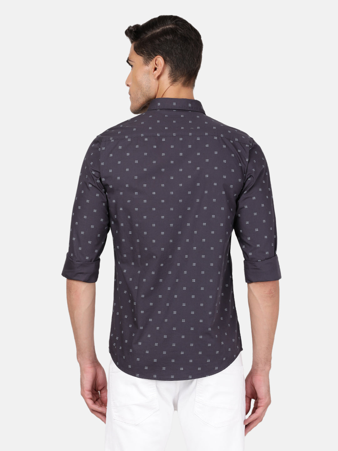 Dark Grey Printed Full Sleeve 100% Cotton Shirt