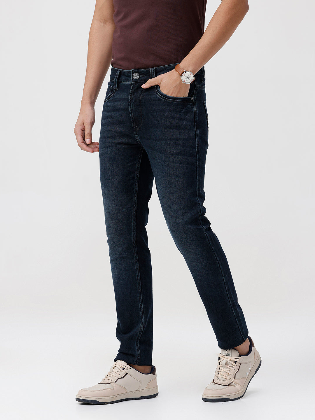 Dark Indigo Knit Slim Fit Jeans