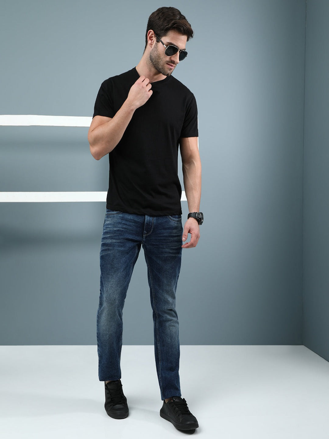 Dark Indigo Navy Solid Mid Rise Slim Fit Jean