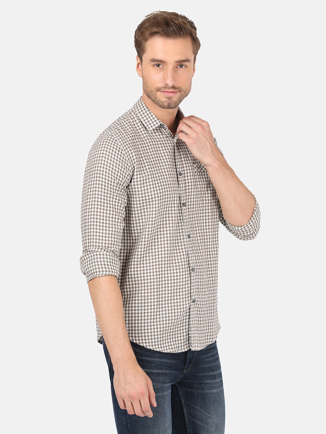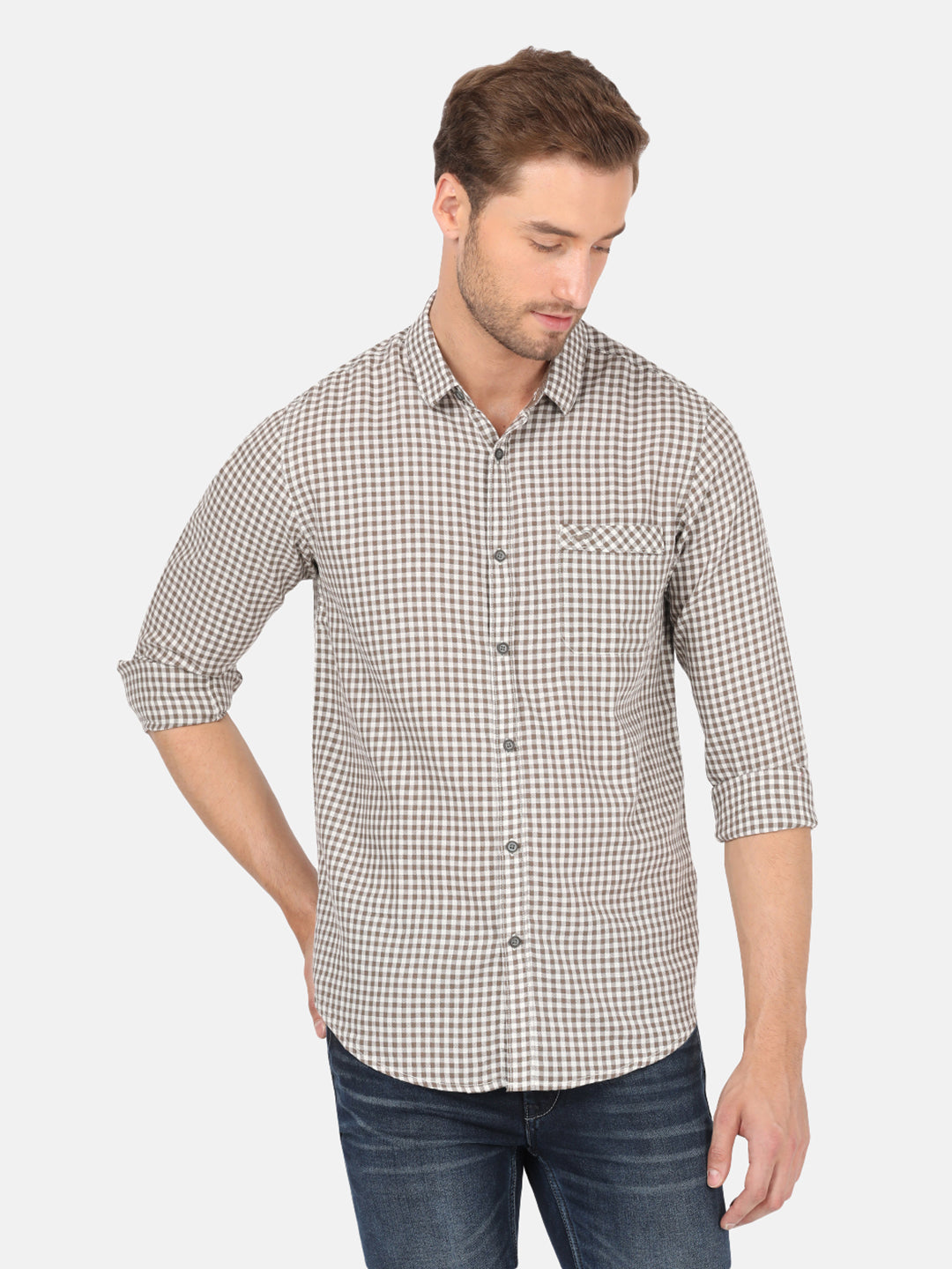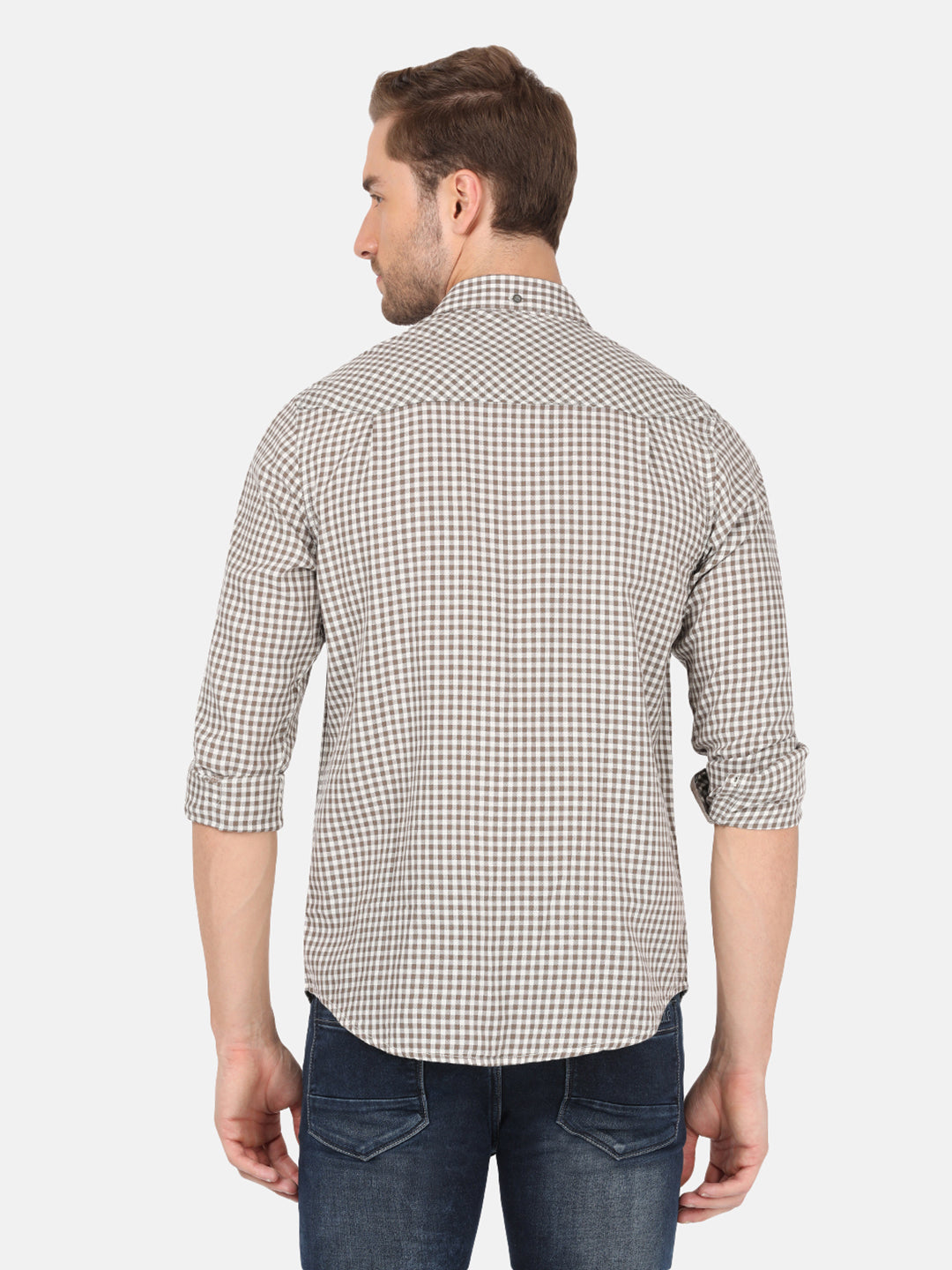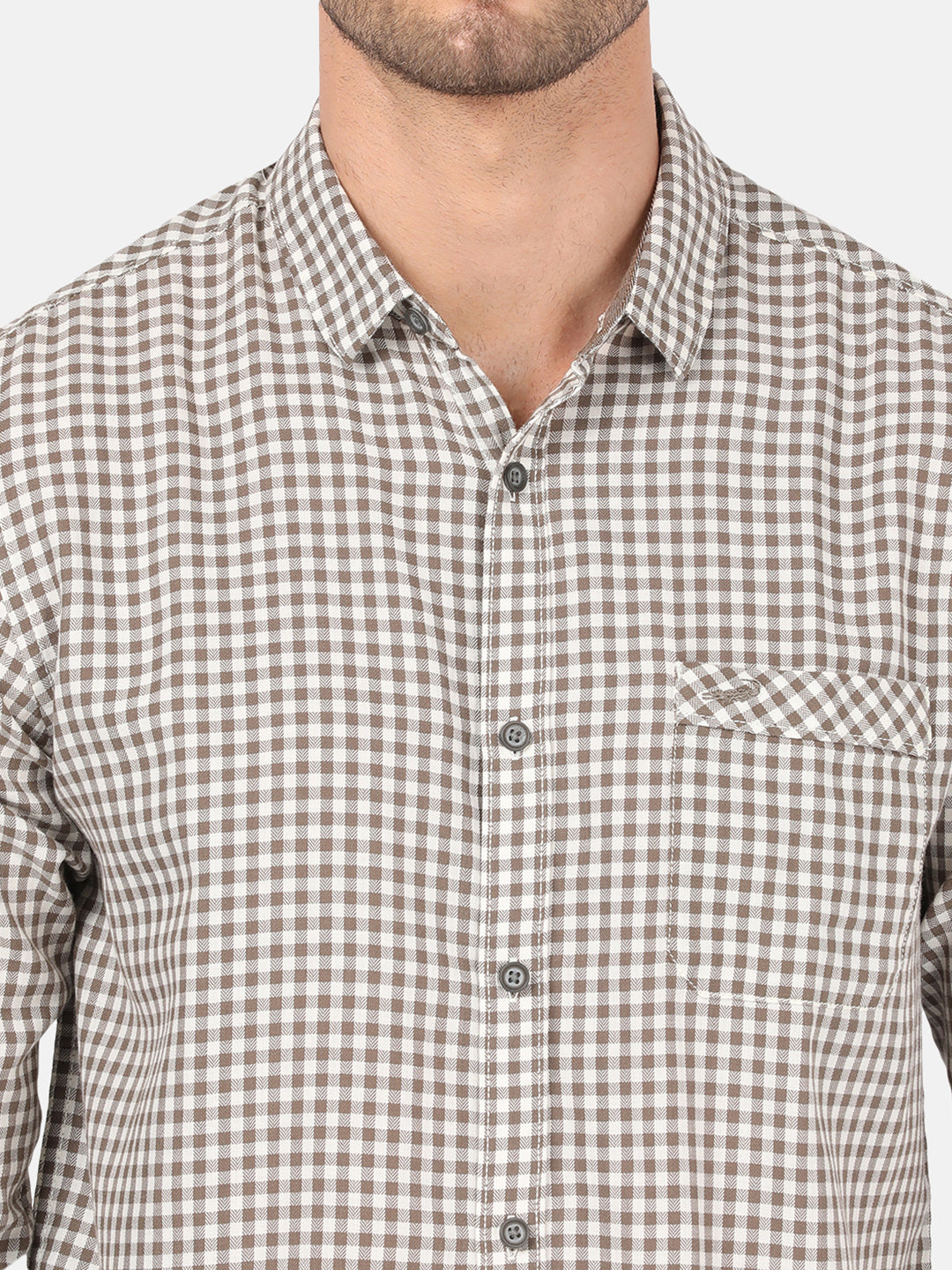 Dark Khaki Checked Full Sleeve Shirt