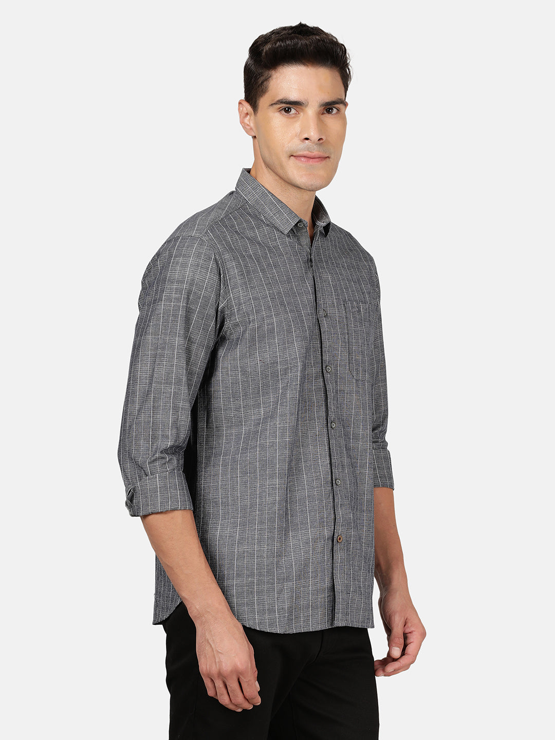 Dark Navy Striped Full Sleeve 100% Cotton Shirt