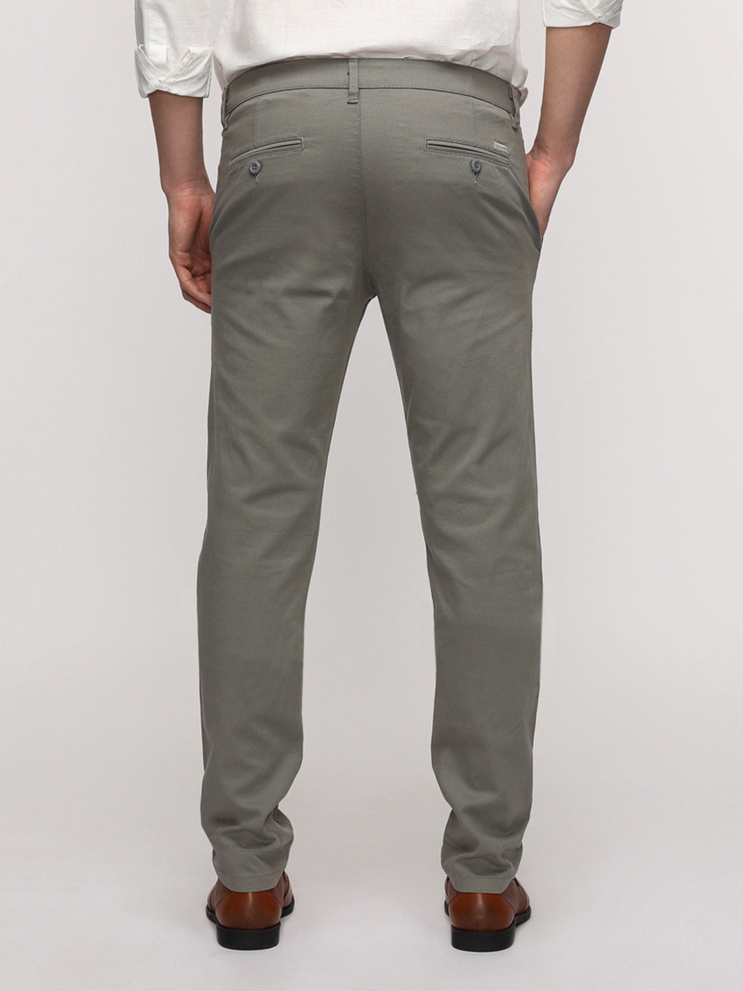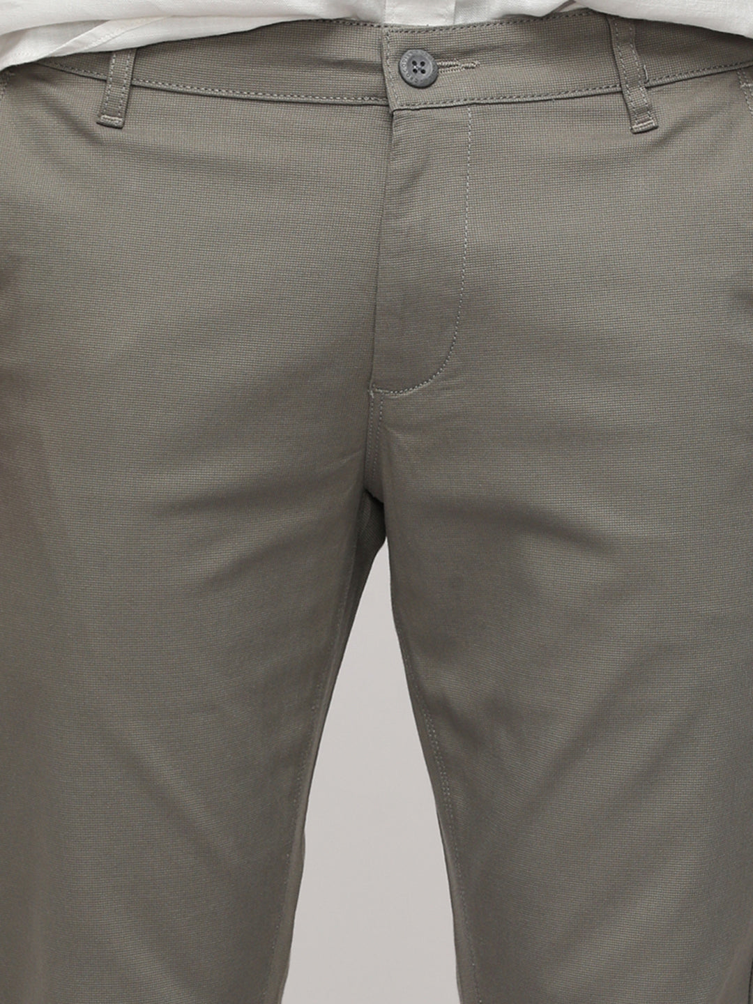 Dark Slate Cotton Textured Stretch Trouser