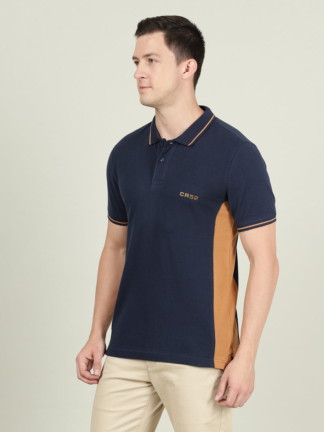 Dark Teal Blue Colourblocked Polo T-Shirt