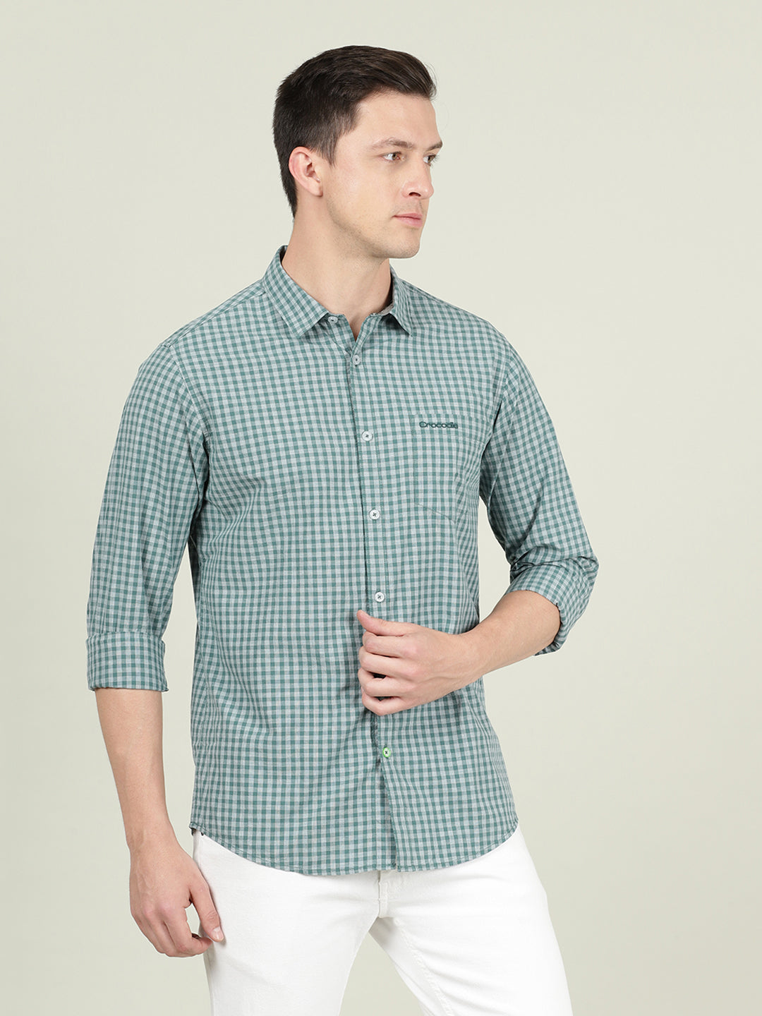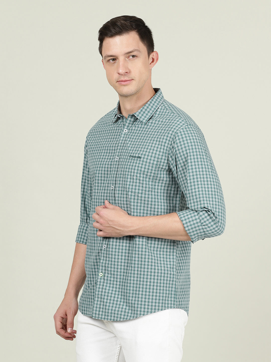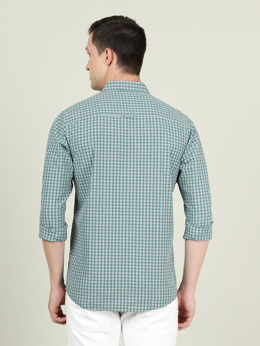 Deep Lake Blue Checked Full Sleeve 100% Cotton Shirt