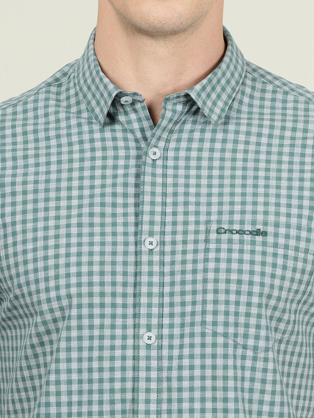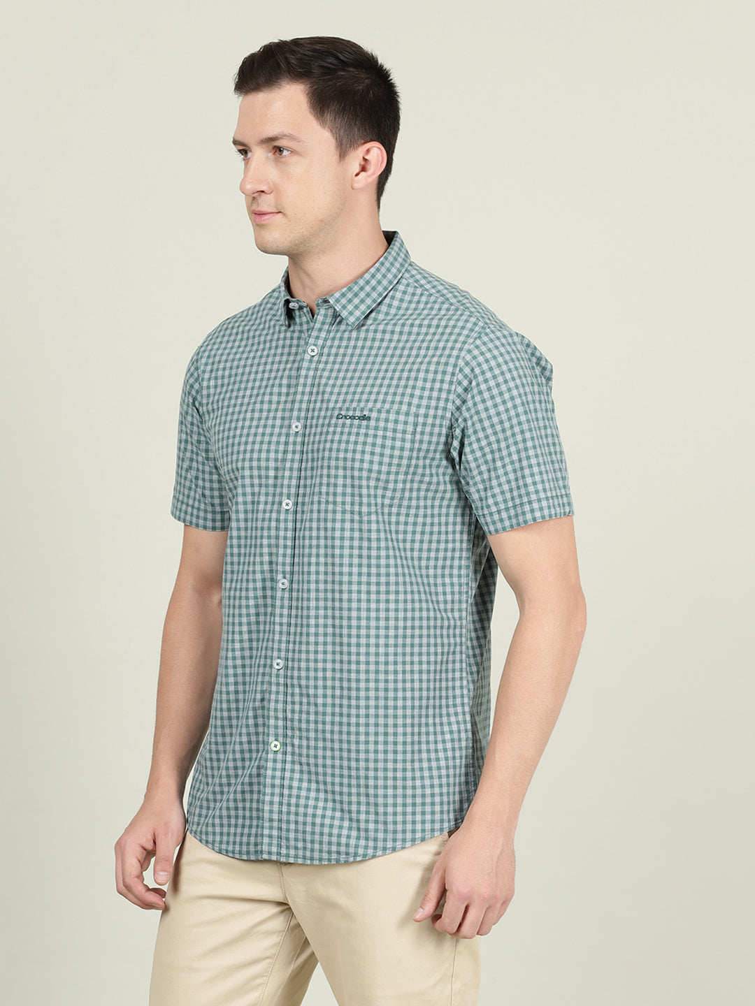 Deep Lake Blue Checked Half Sleeve 100% Cotton Shirt