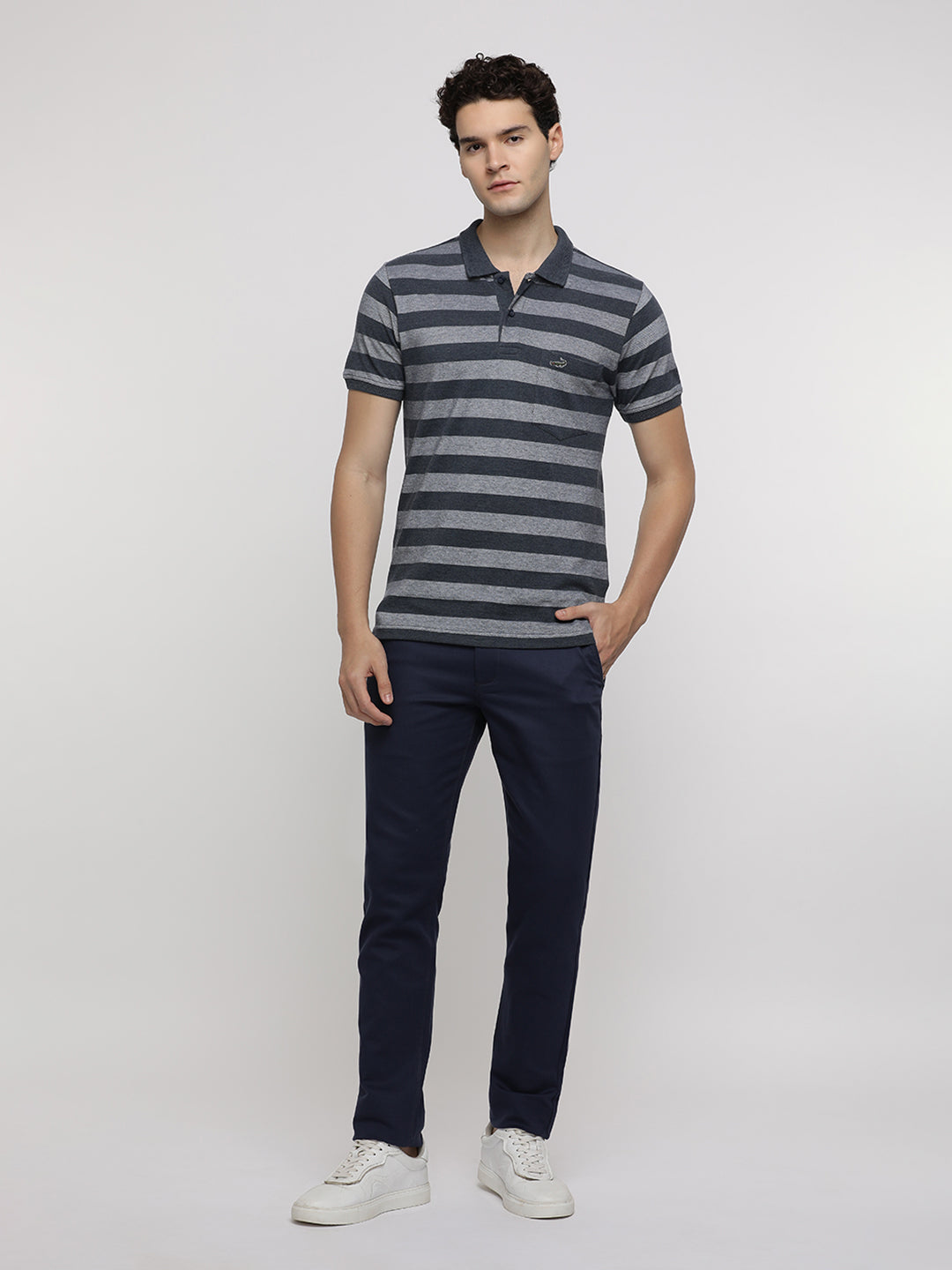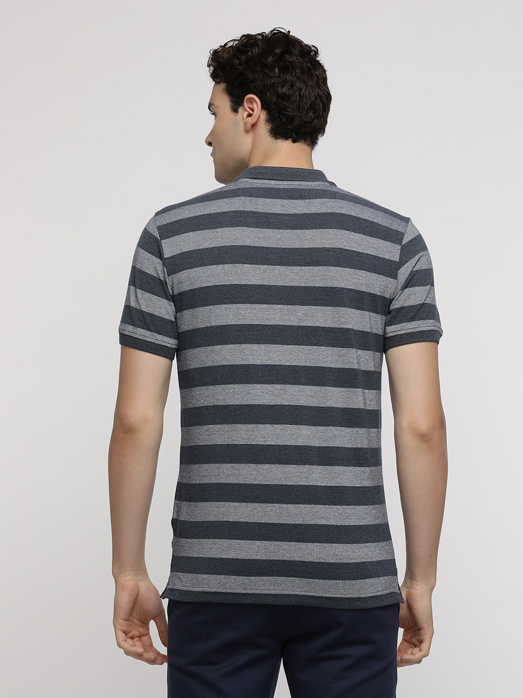 Denim Melange Birdseye Striped Polo T-Shirt