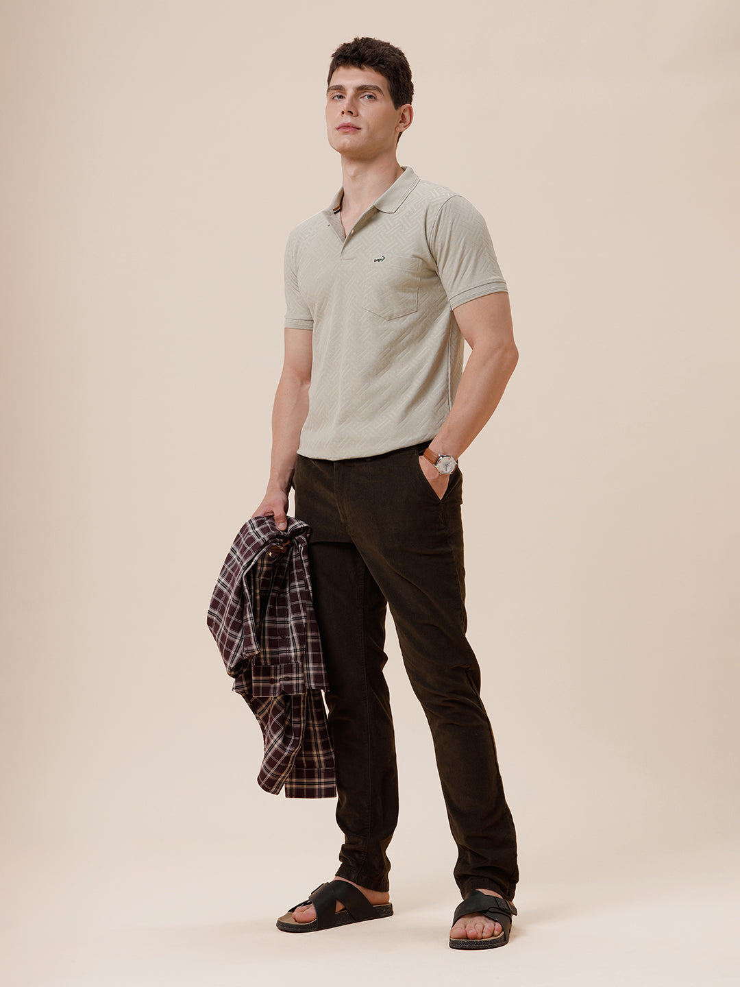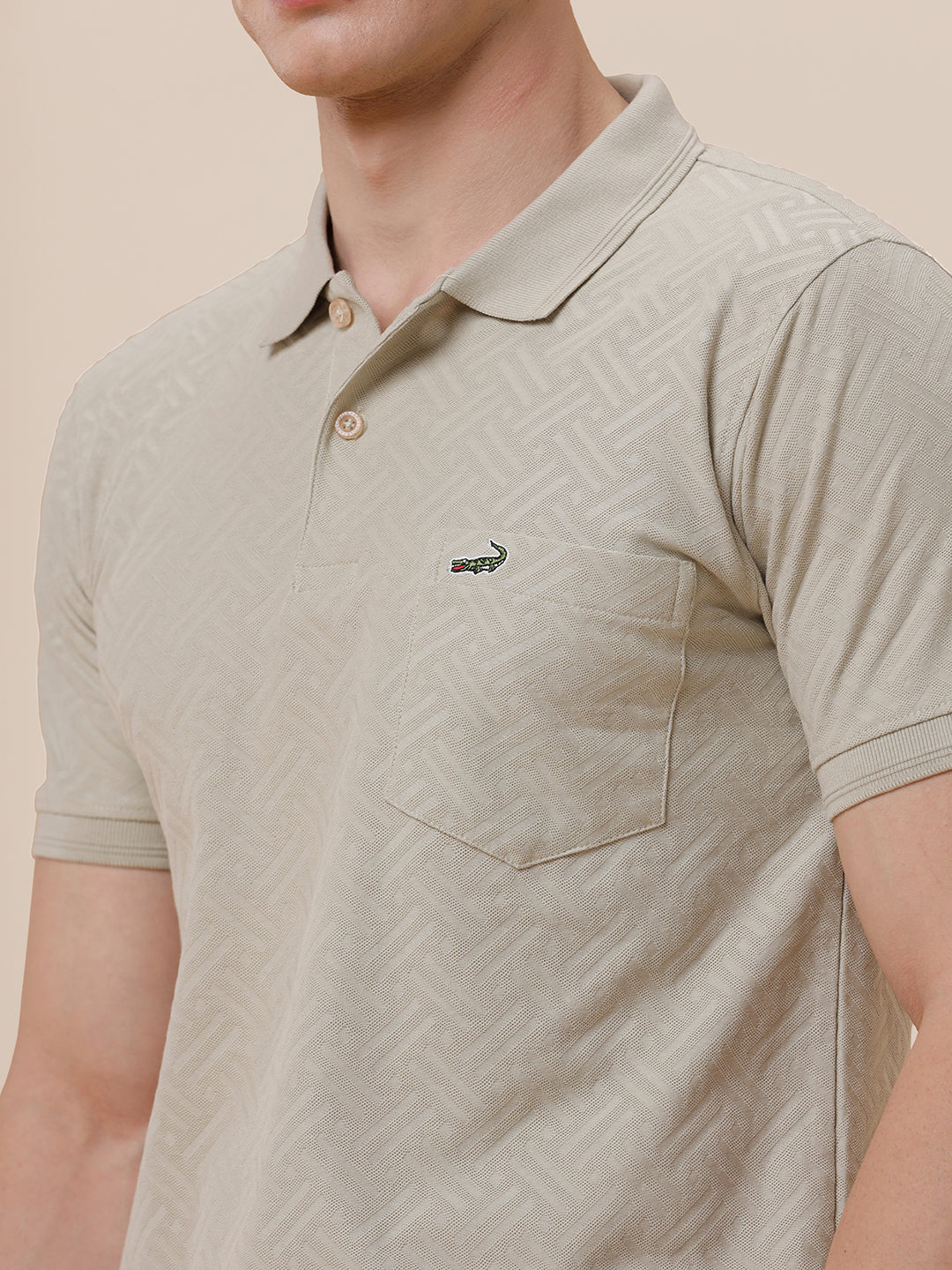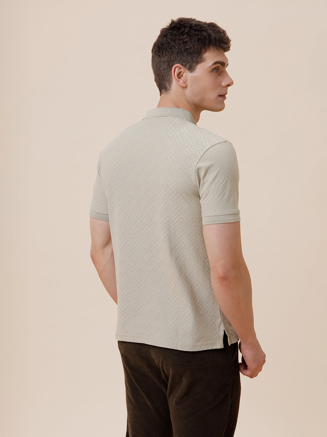 Diagonal Self Structure Solid Polo Tshirt In Stone