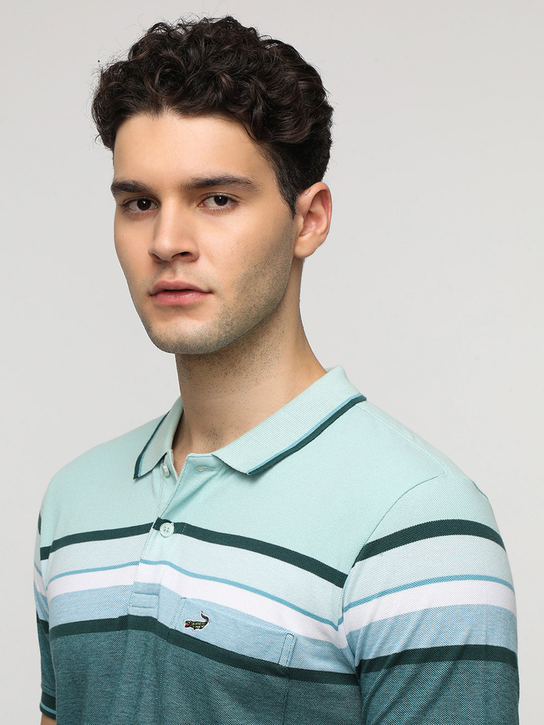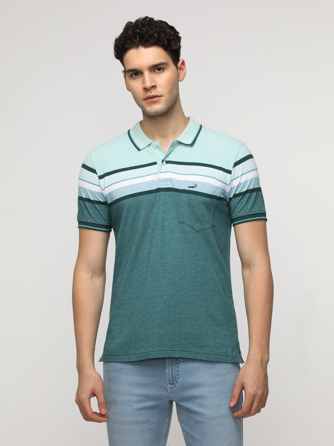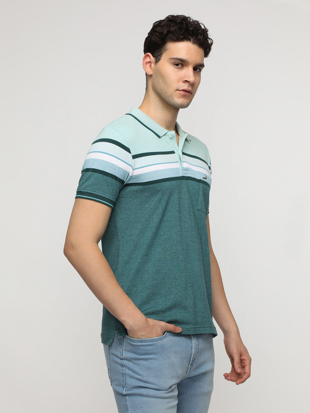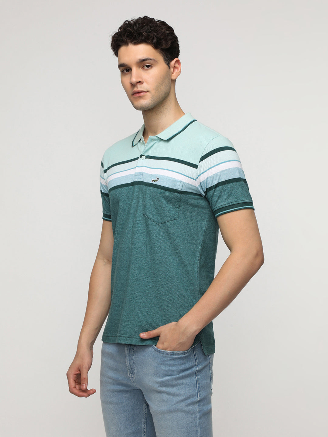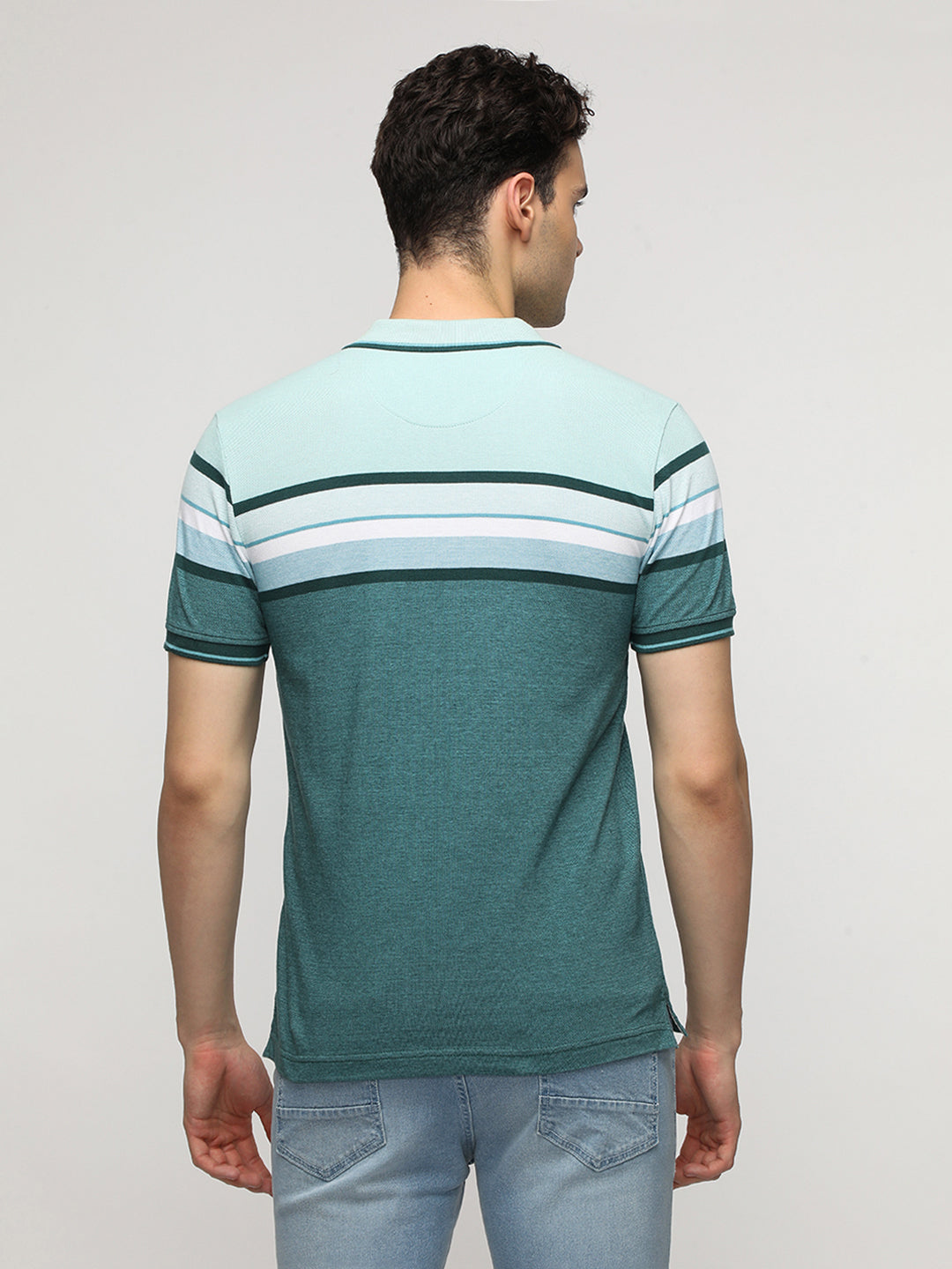 Engineered Jaquard Stripe Polo T-Shirt in Green