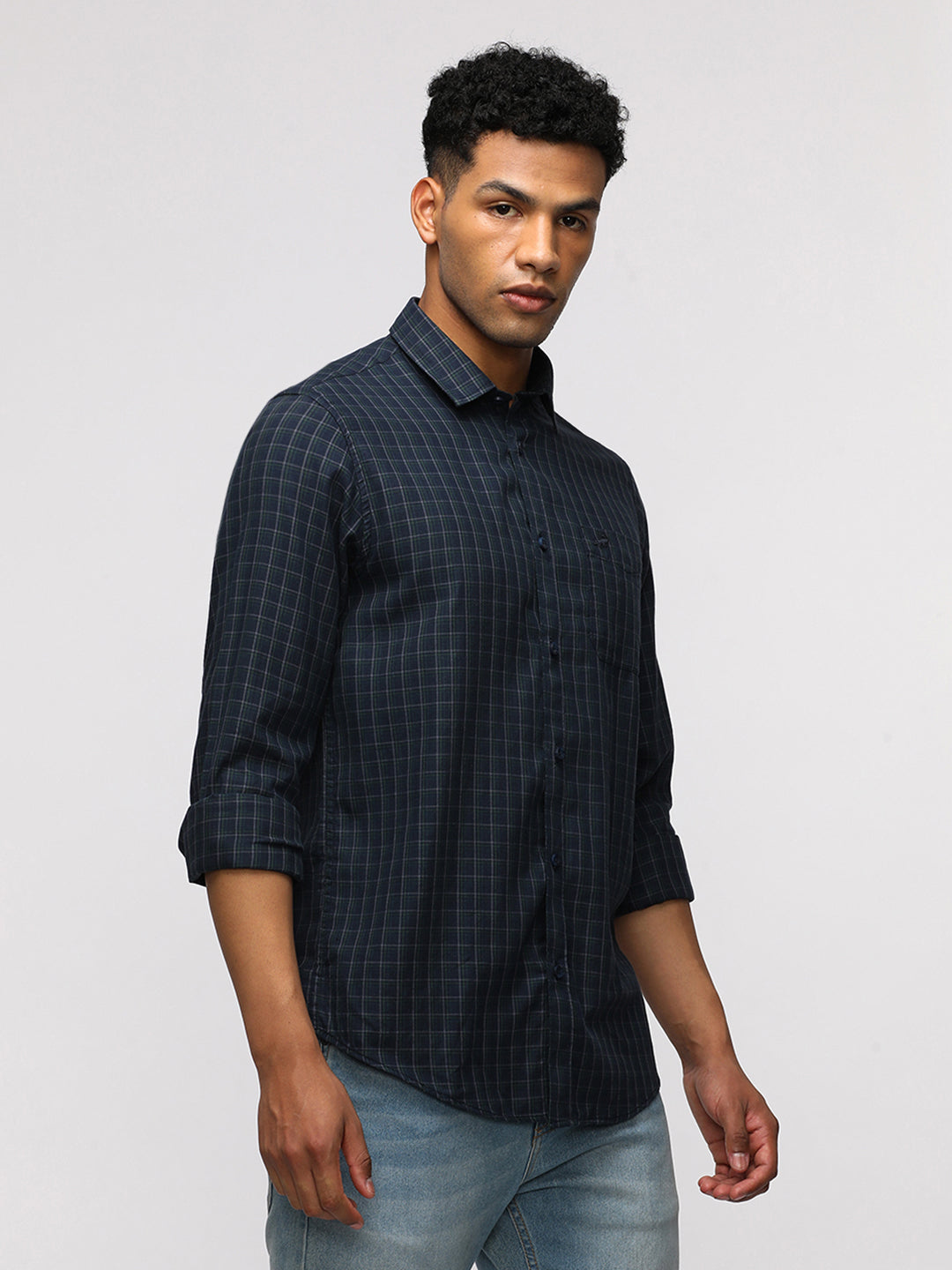 Full Sleeve Navy Checked Shirt for Trendy Wear