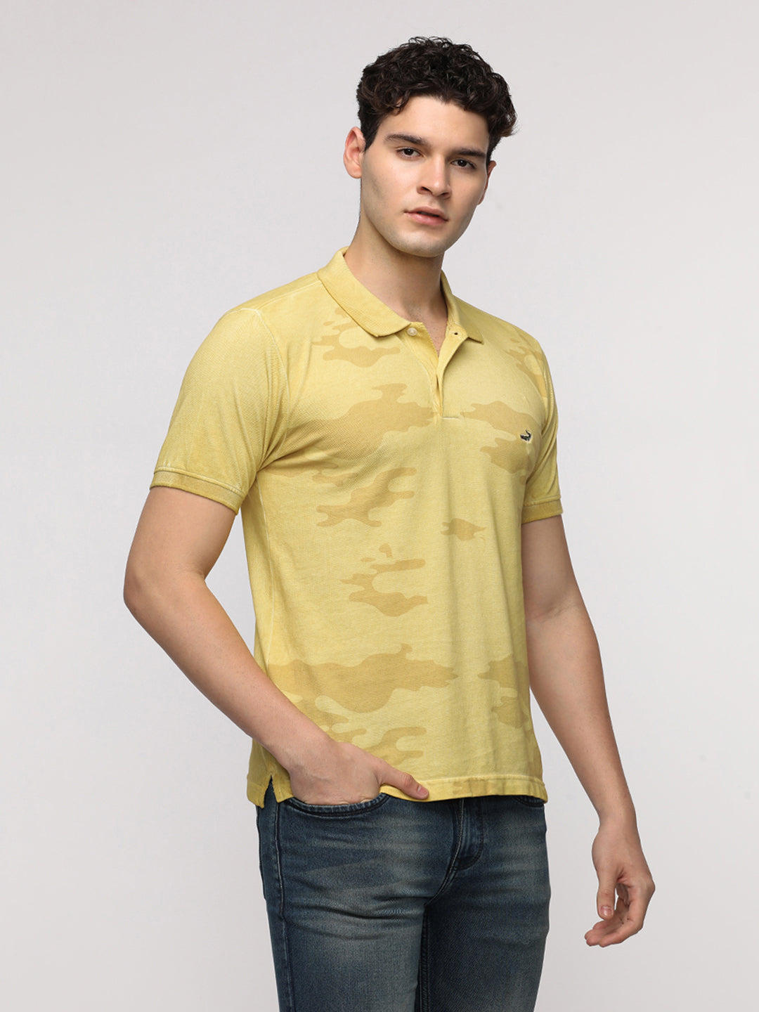 Garment Dyed Golden Yellow Slim T-Shirt with 100% Cotton
