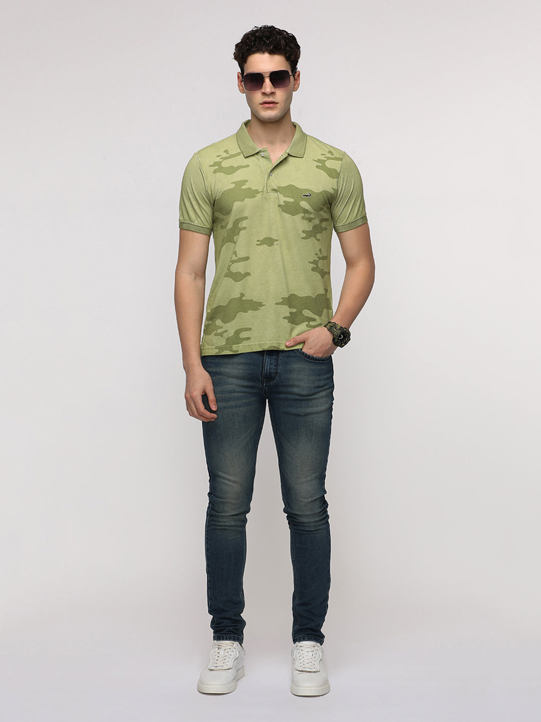 Garment Dyed Sporty Sage Slim T-Shirt with 100% Cotton