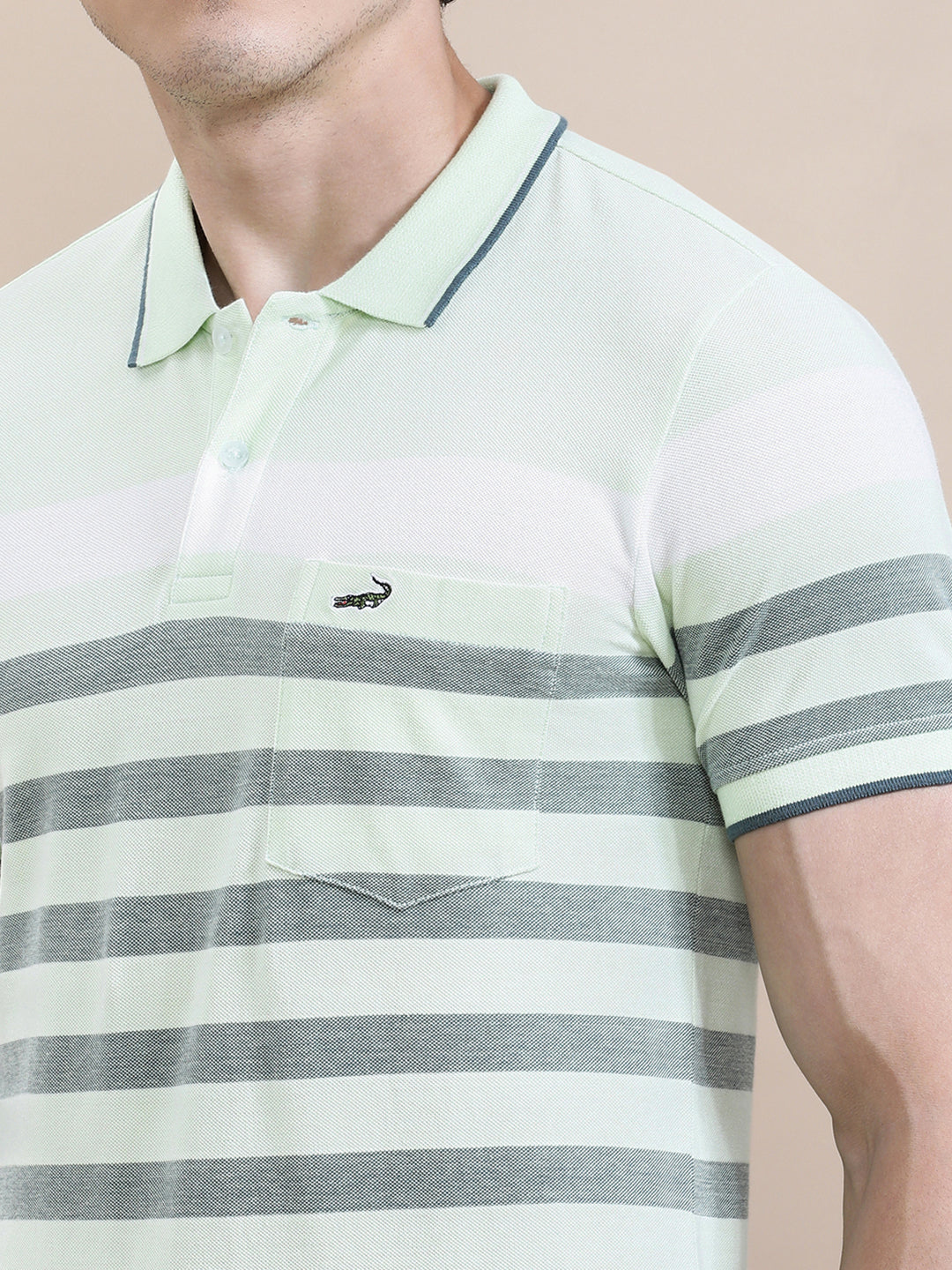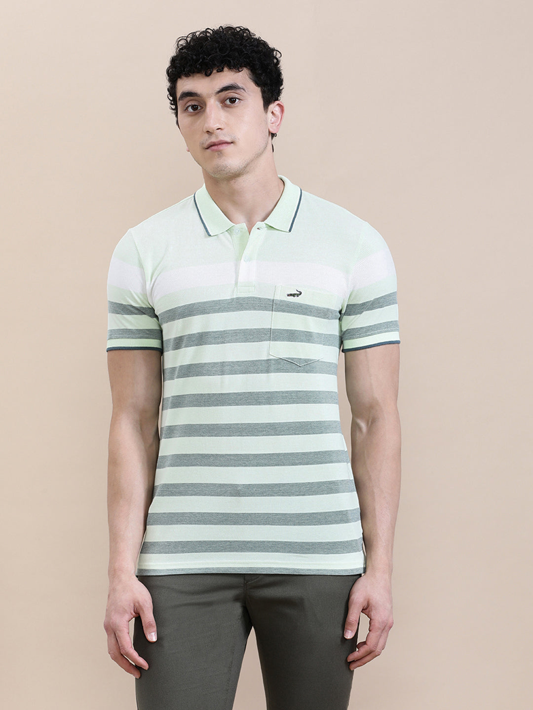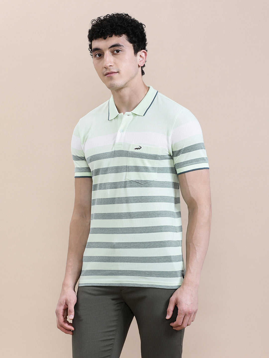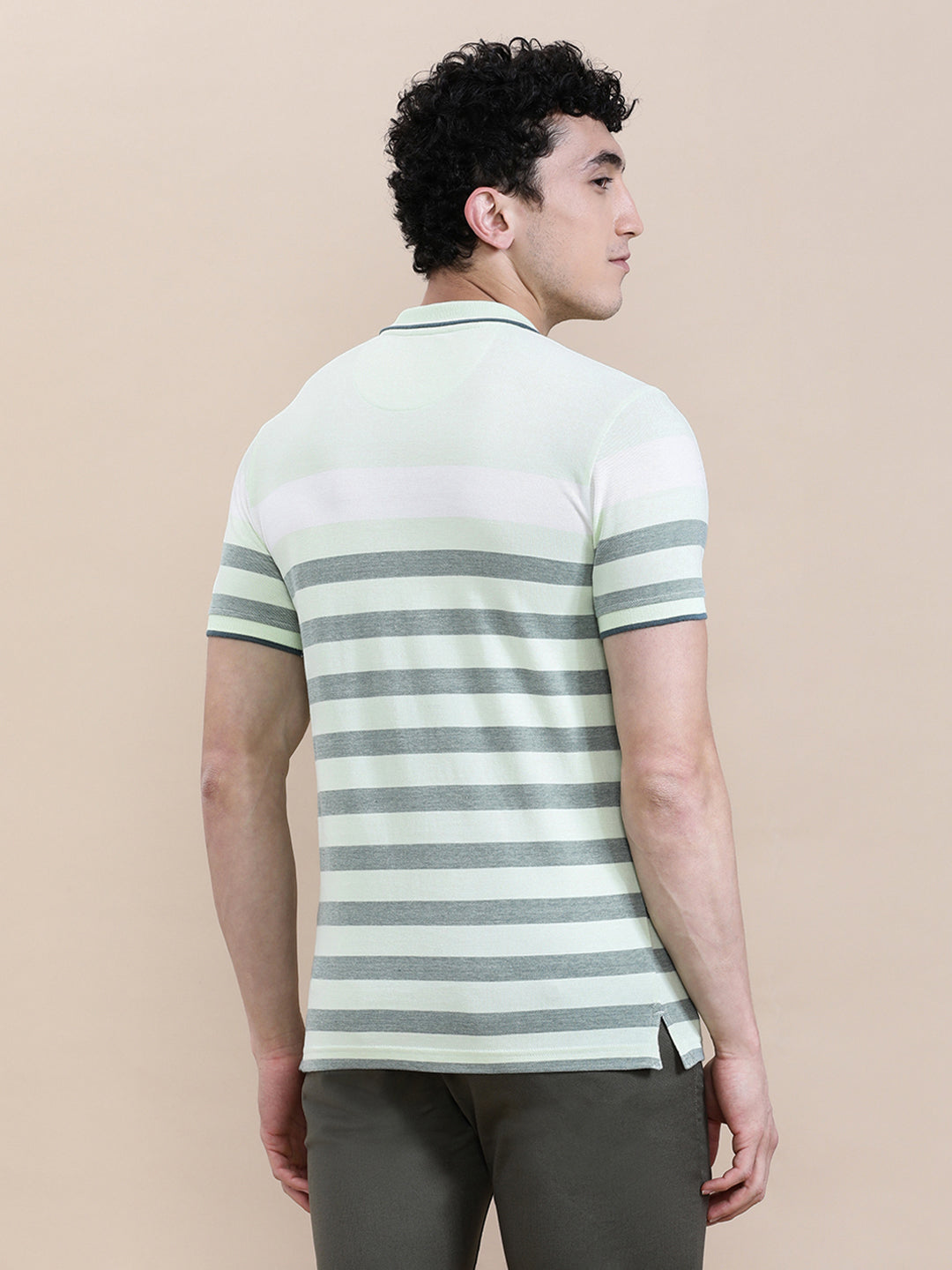Green Birdseye Engineered Stripe Slim Fit Polo