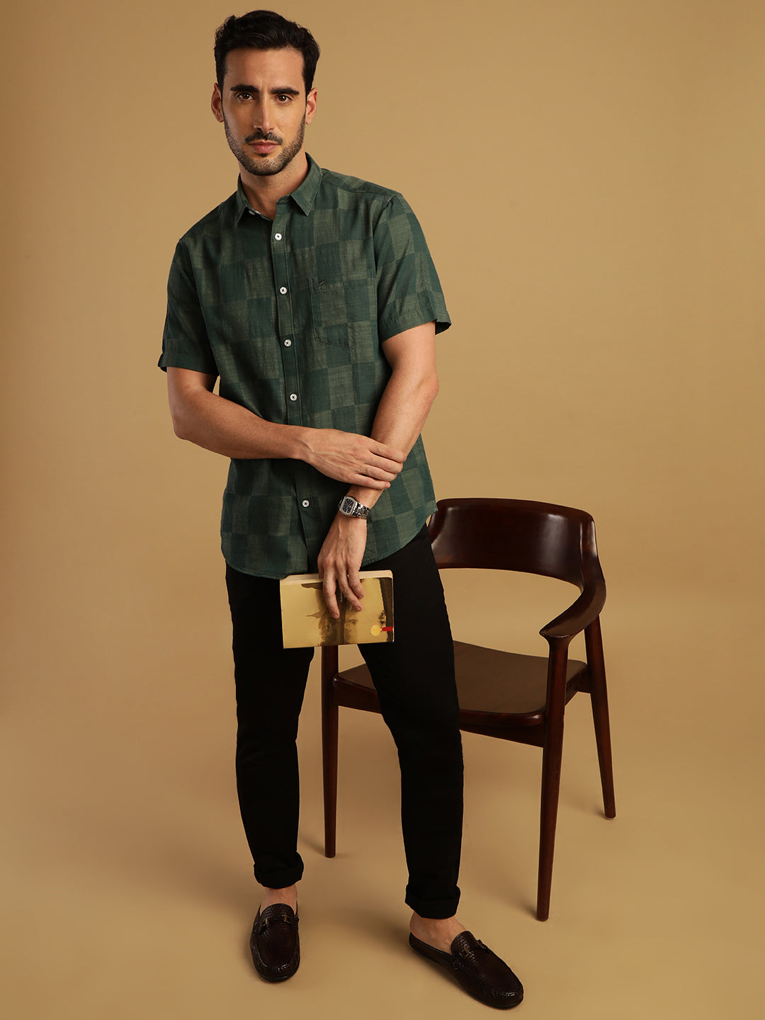 Green Checked Casual Half Sleeve 100% Cotton Shirt