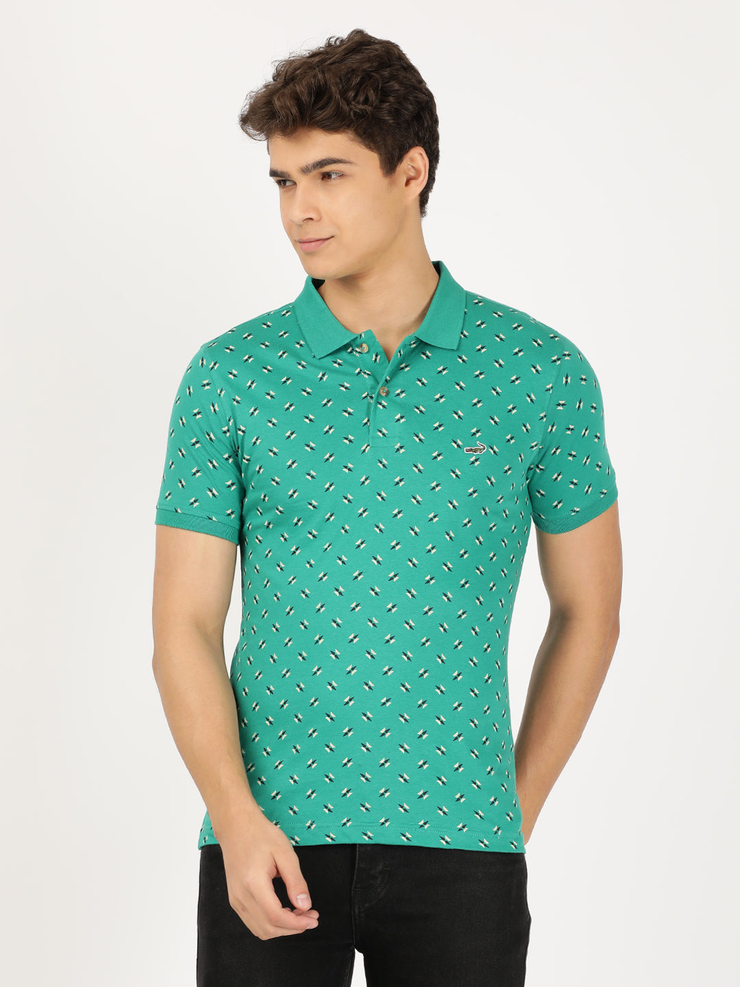 Green Printed Casual Polo T-Shirt