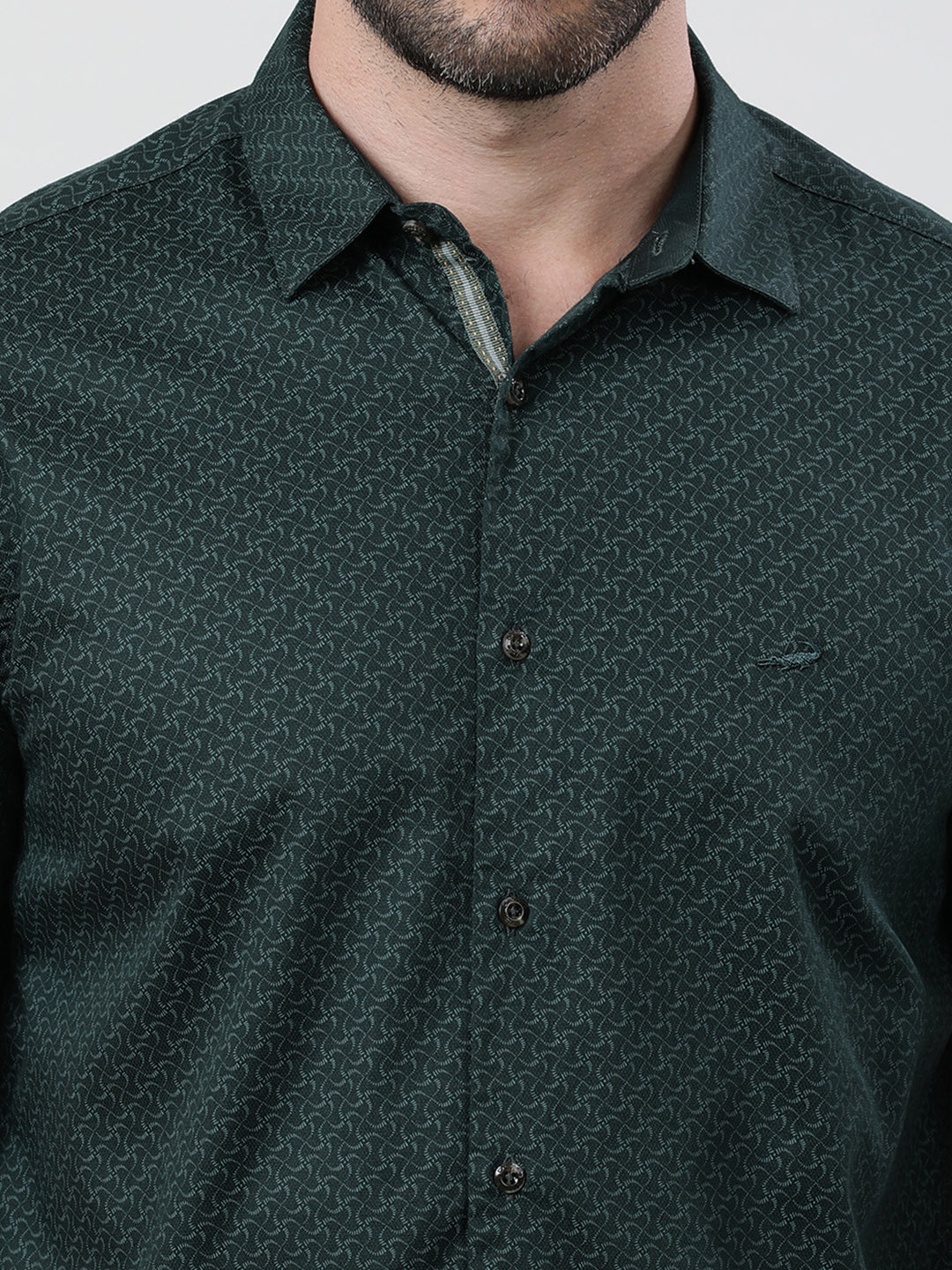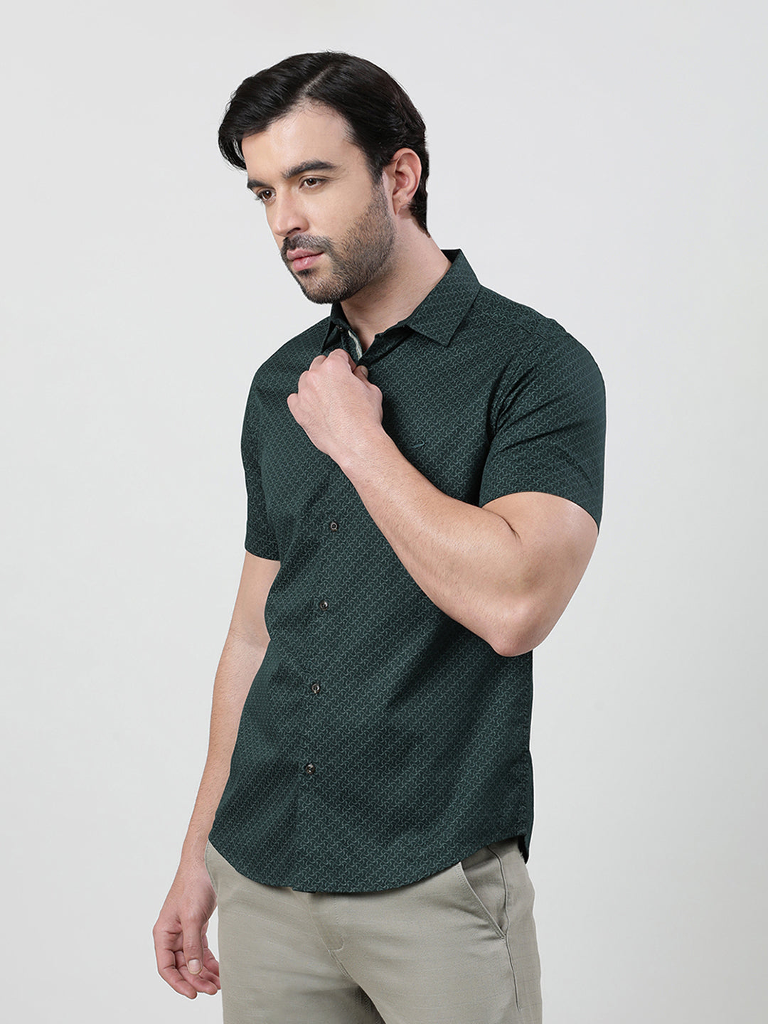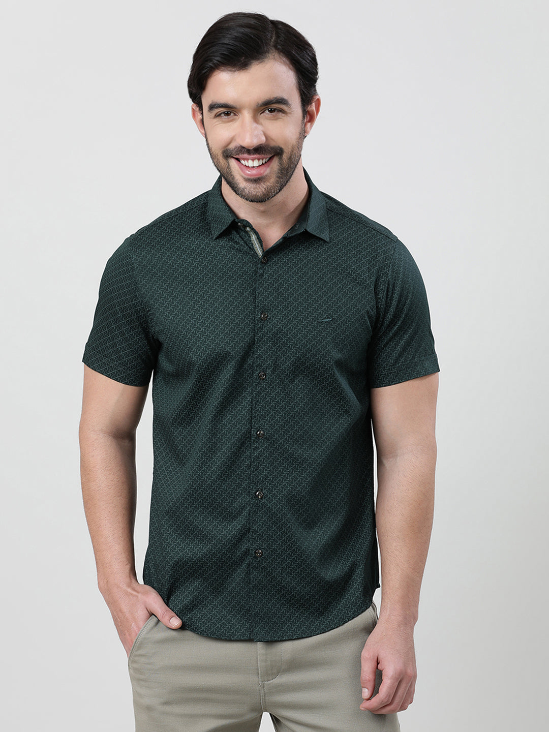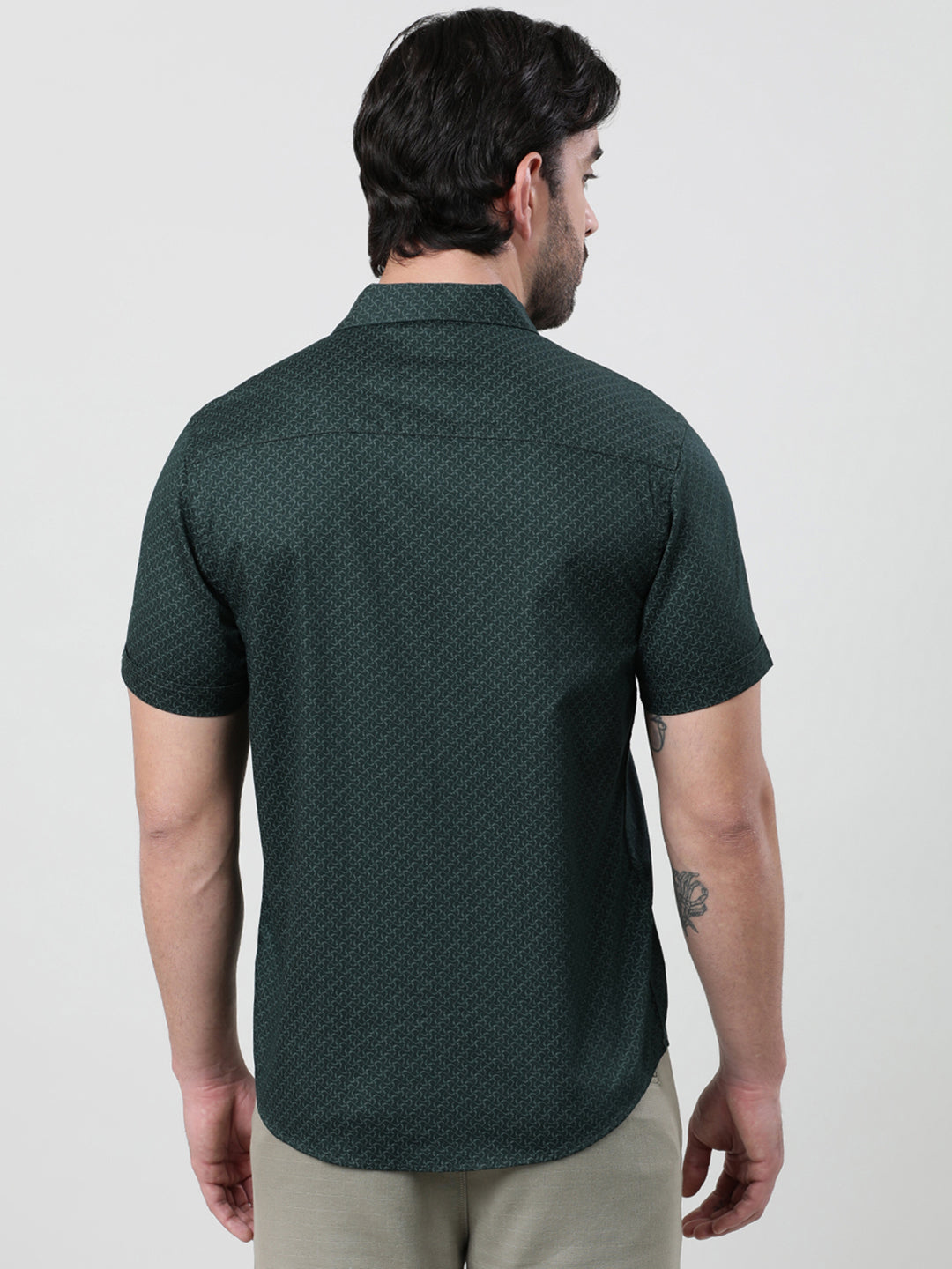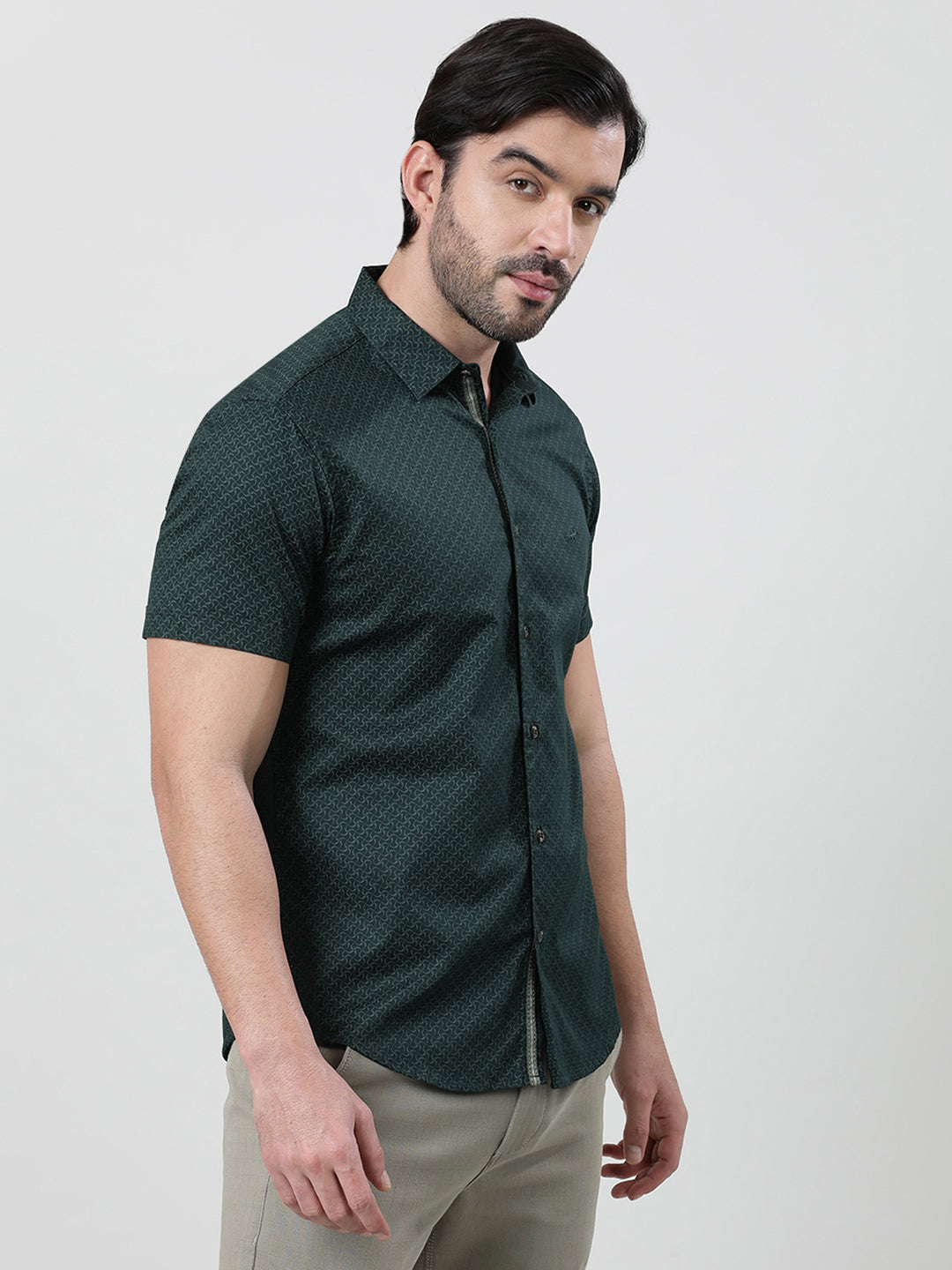 Green Printed Half Sleeve 100% Cotton Casual Shirt
