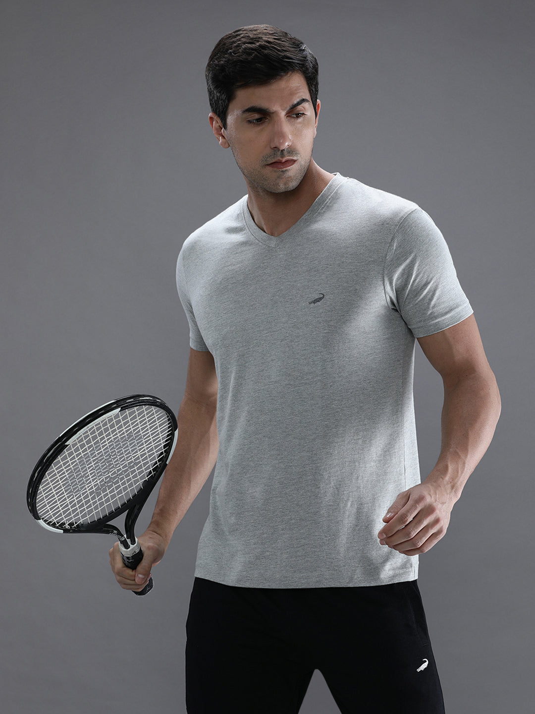 Grey Melange Solid Casual T-Shirt