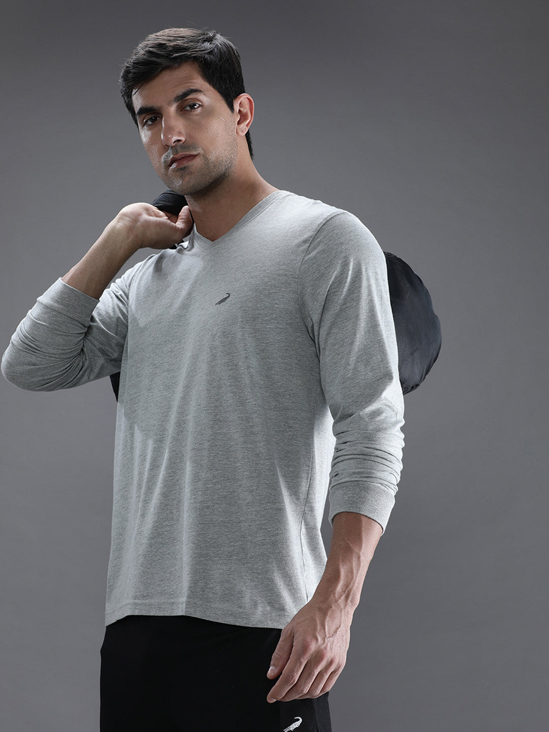 Grey Melange Solid T-Shirt