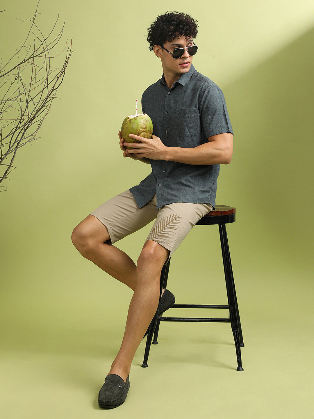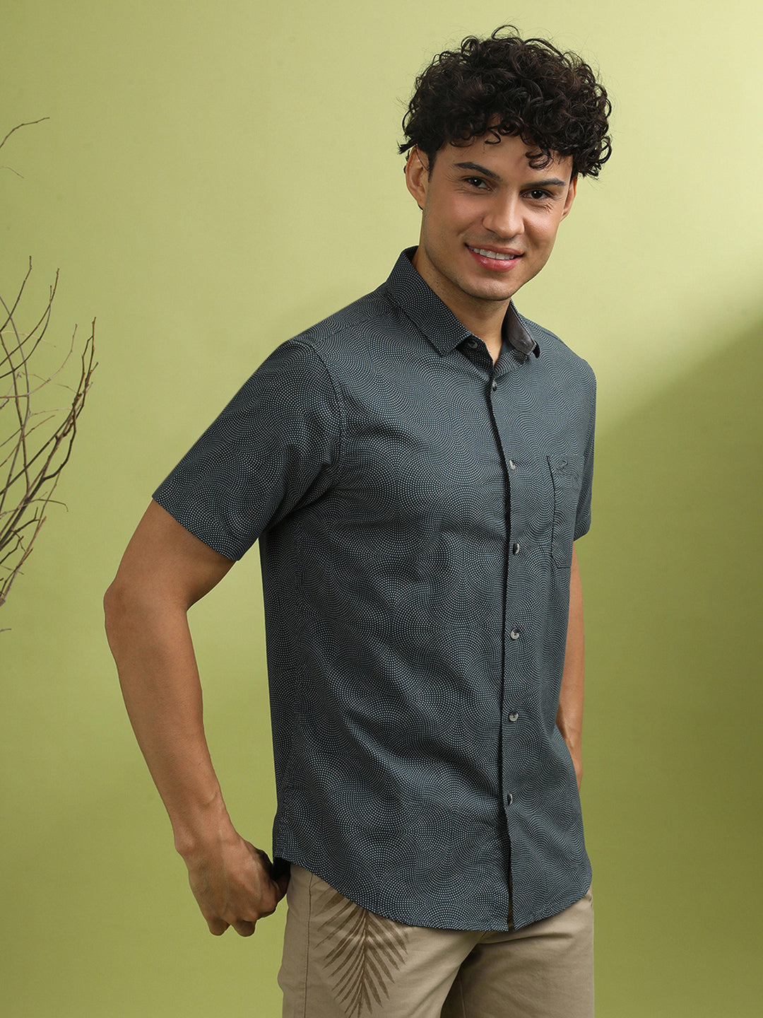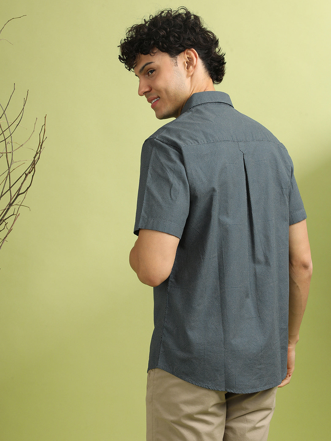 Grey Printed Half Sleeve 100% Cotton Shirt