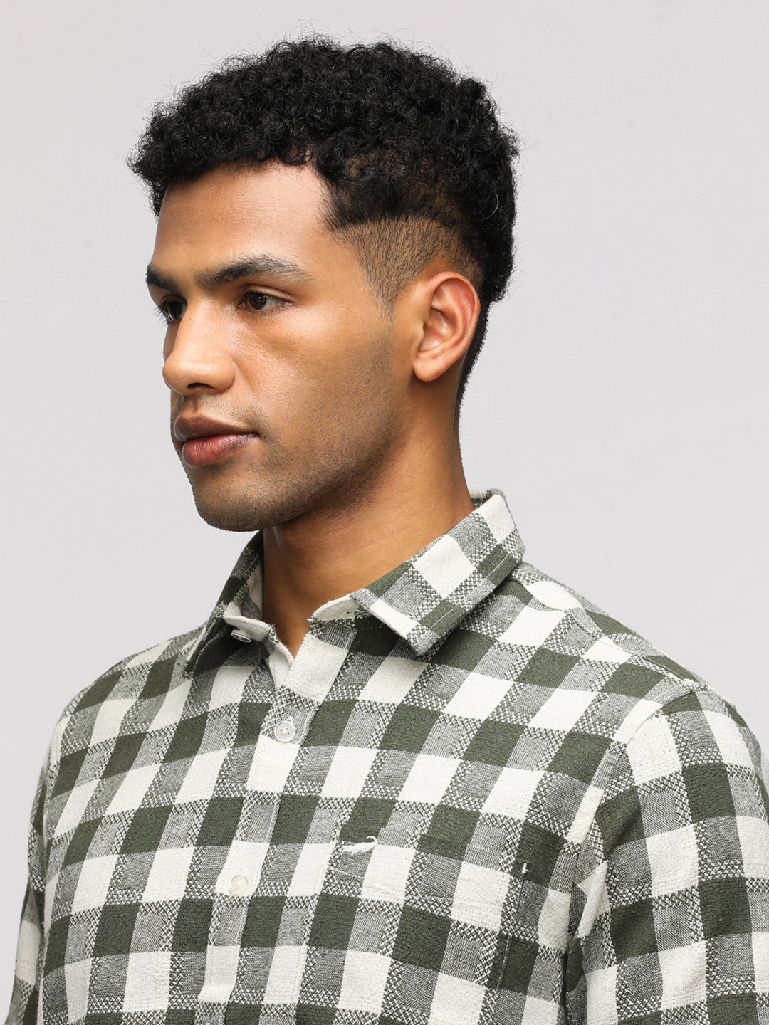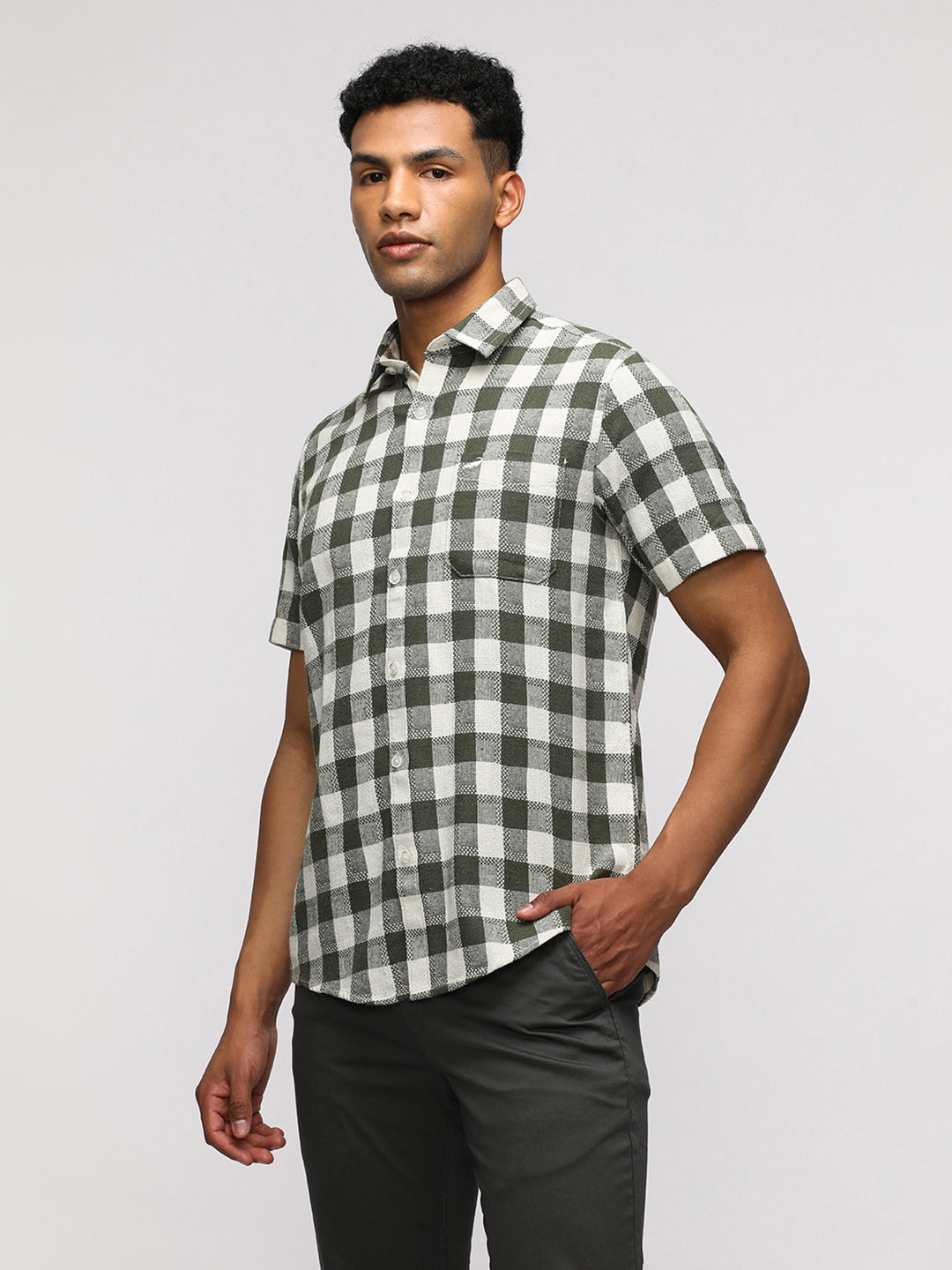 Half Sleeve Green Checked Shirt for Trendy Wear