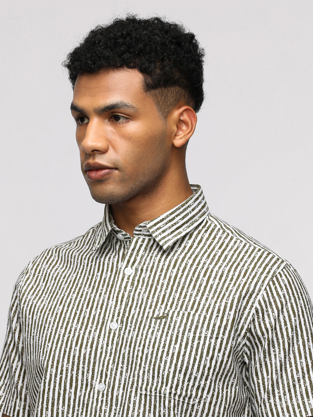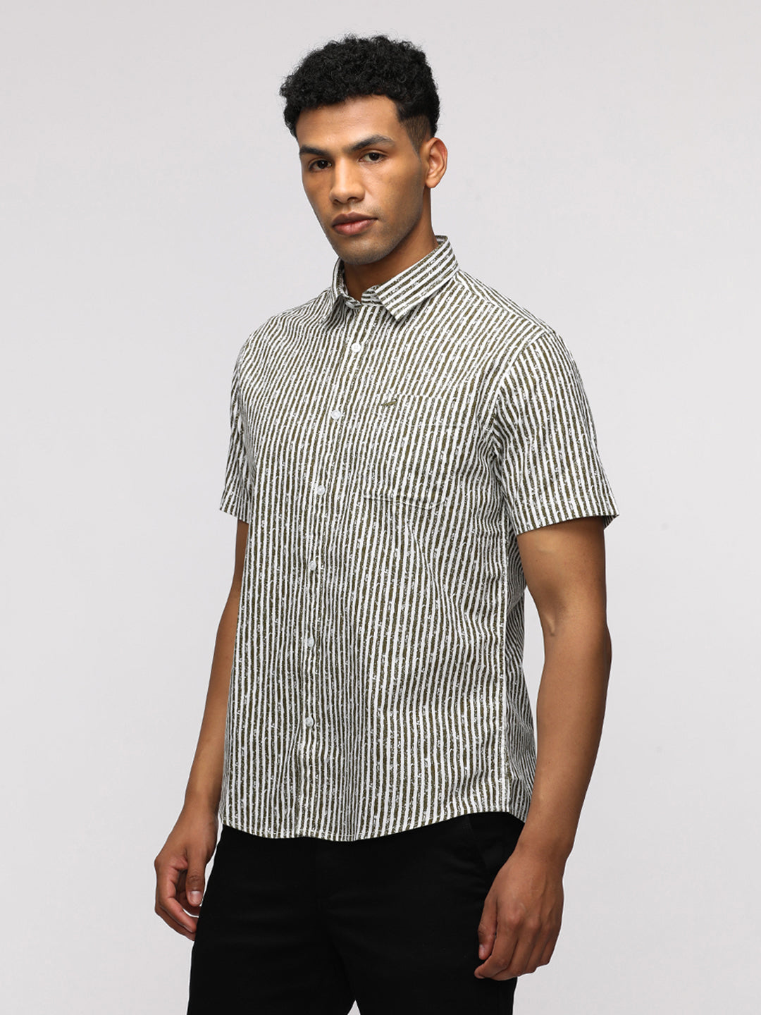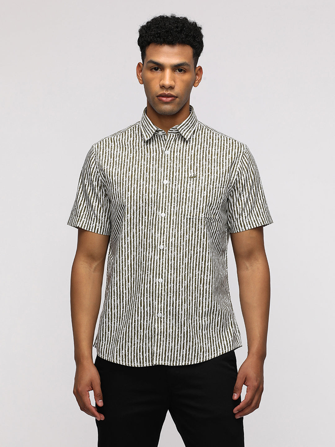 Half Sleeve Green Striped Shirt for Trendy Looks