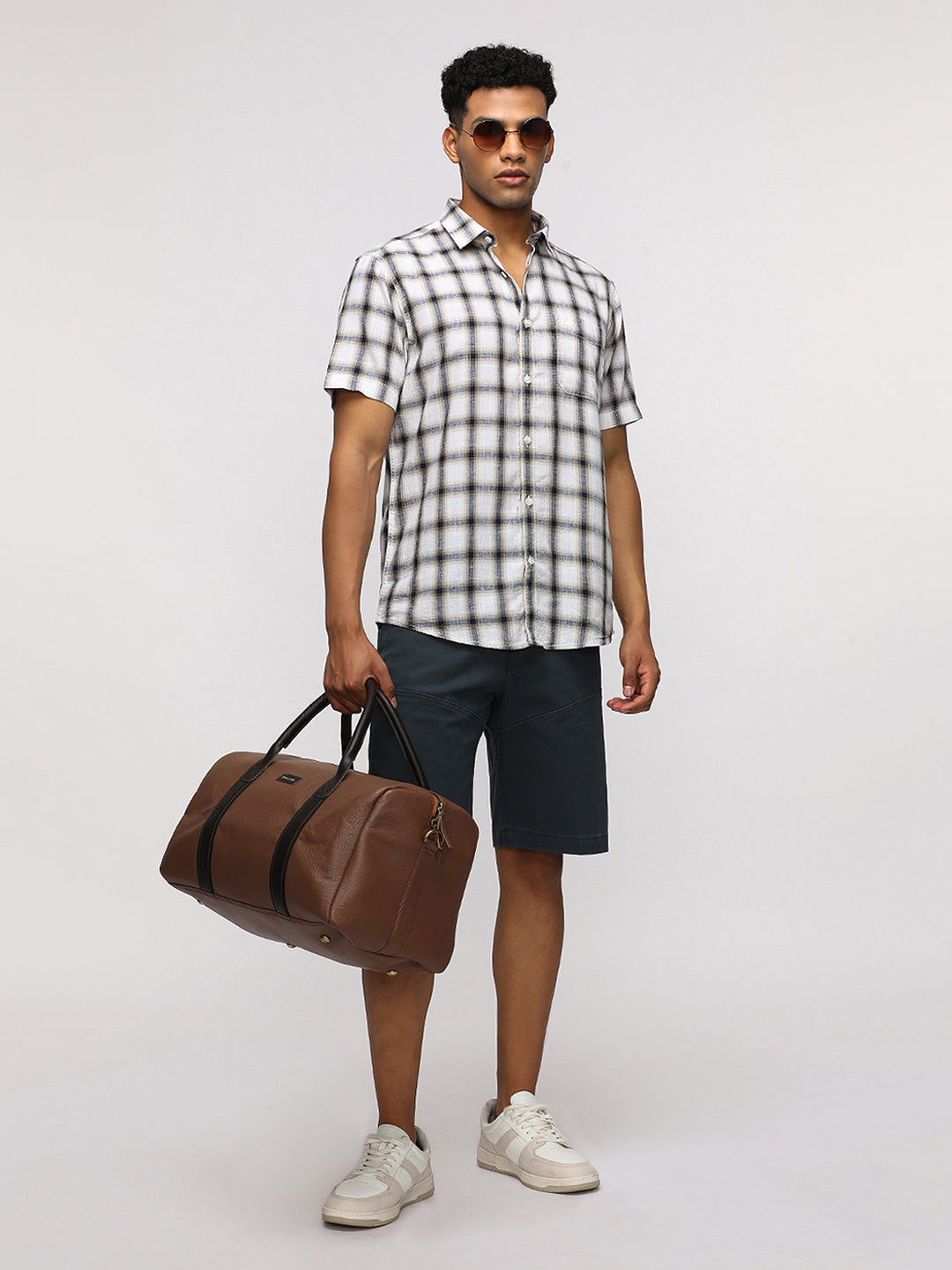 Half Sleeve Navy Checked Shirt for Sporty Style