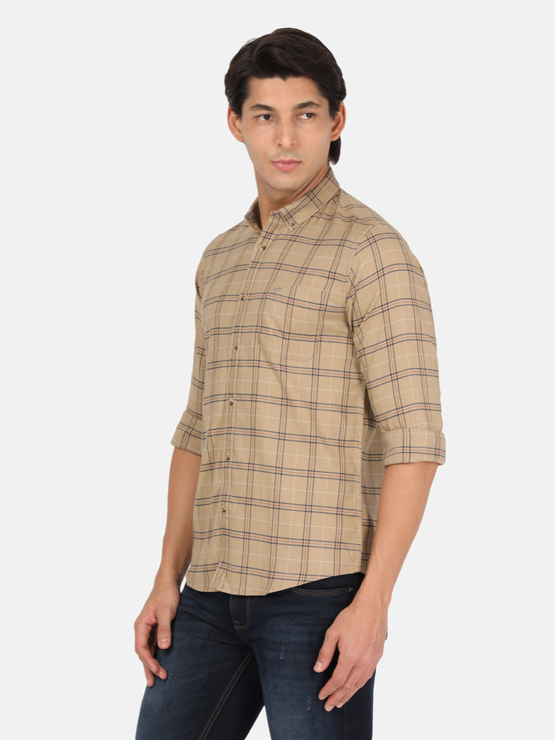 Khaki Brown Checked Full Sleeve Shirt