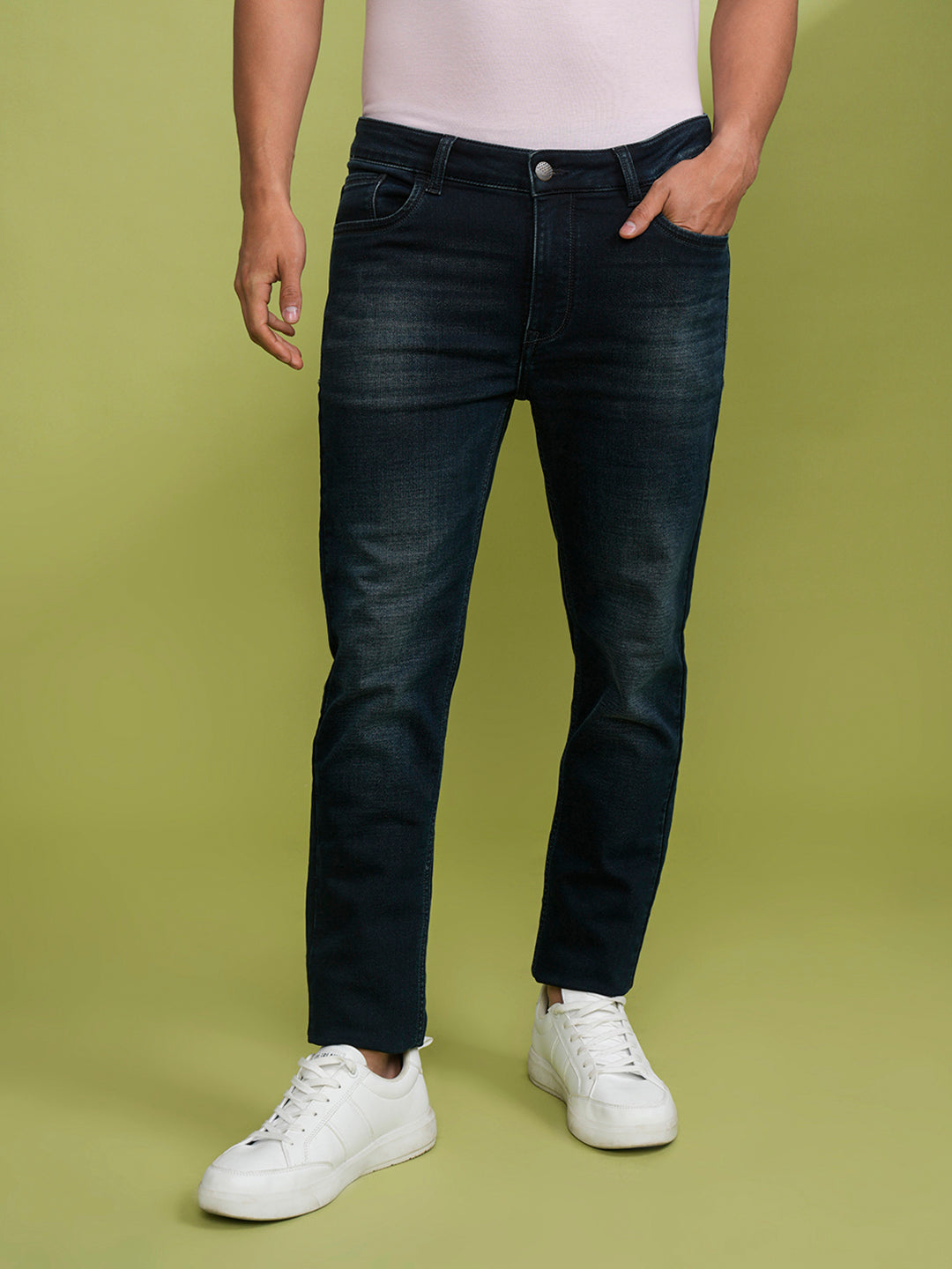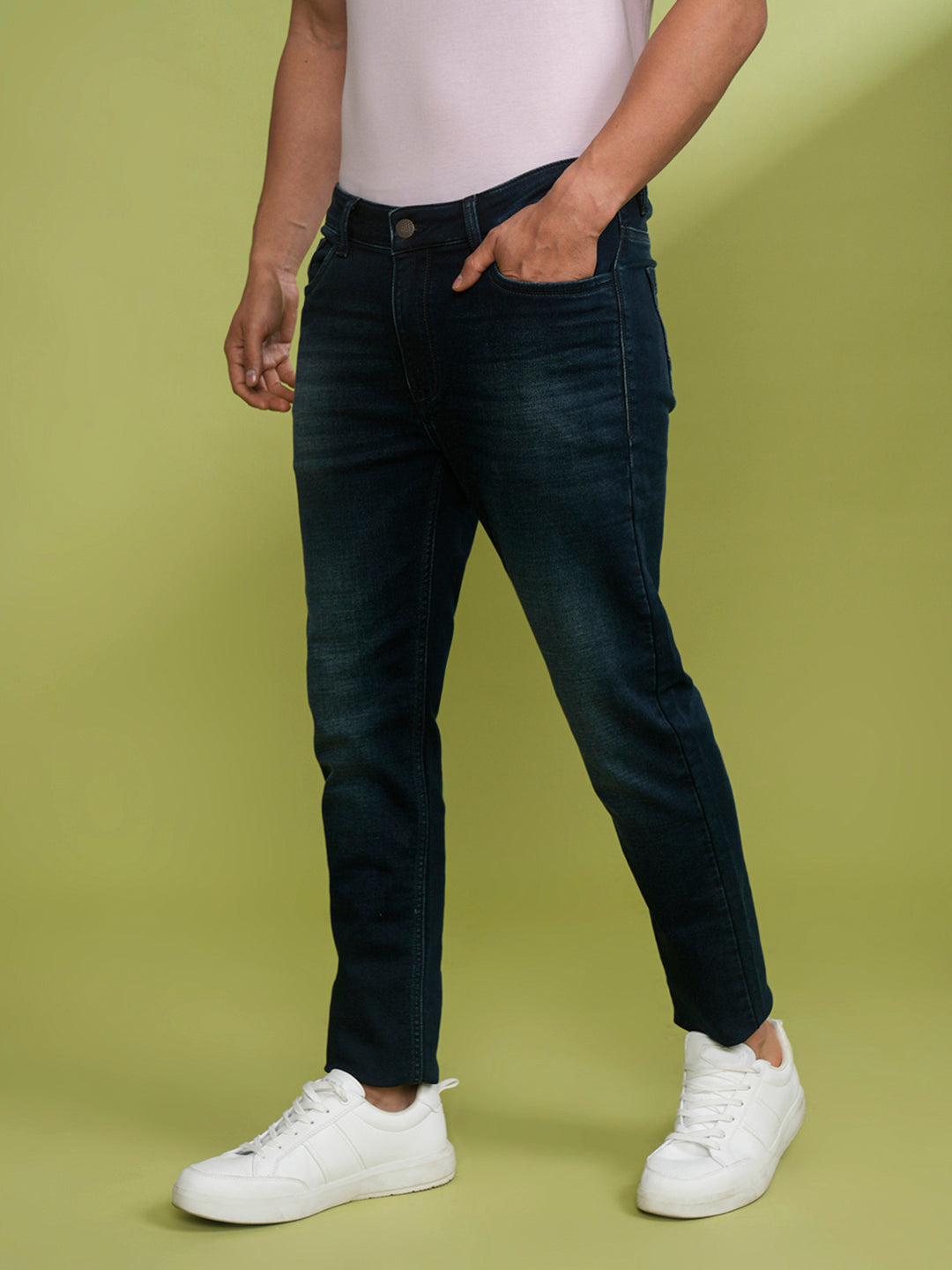 Knitted Premium Mid Blue Slim Jeans