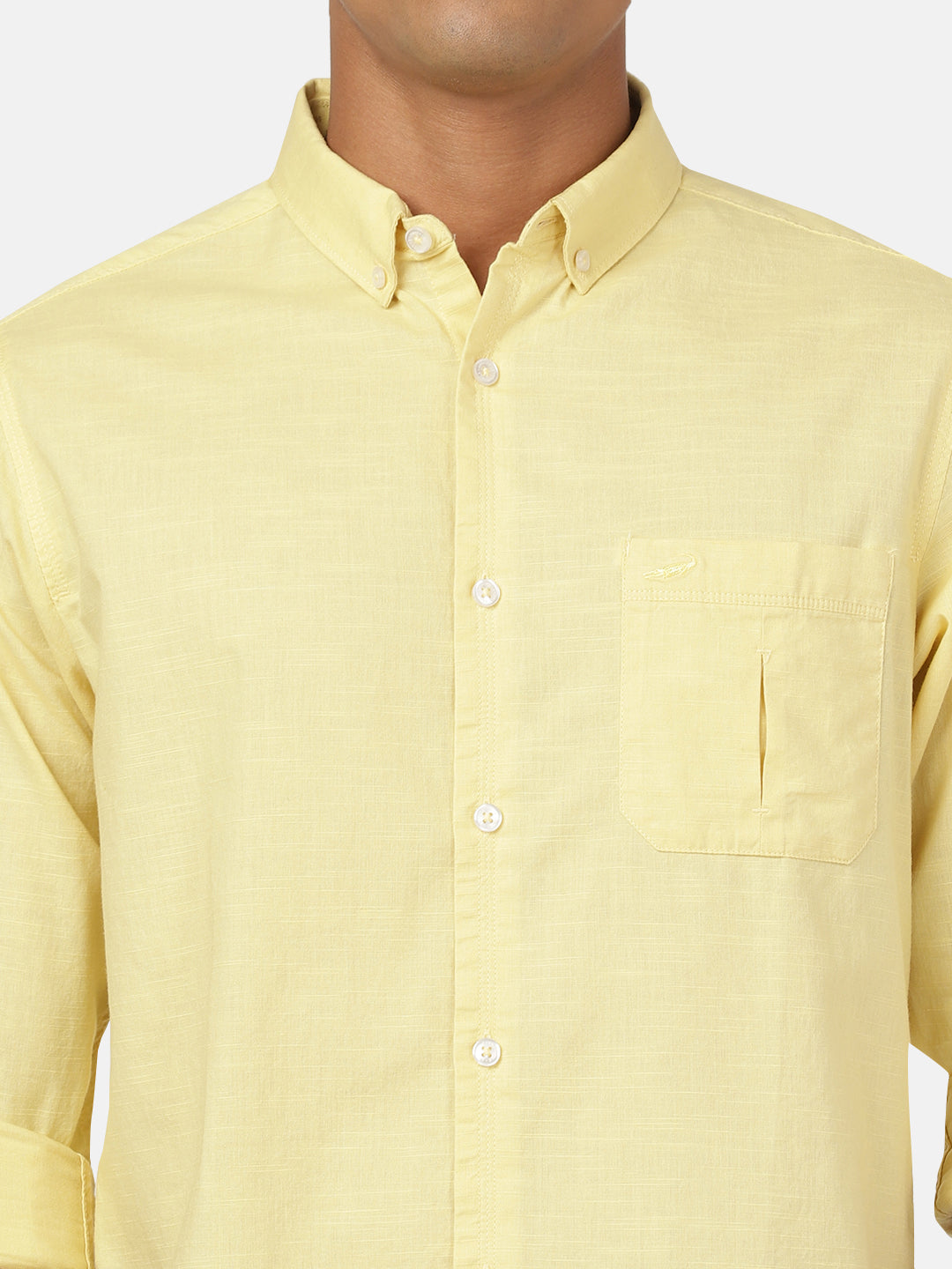 Lemon Yellow Solid Full Sleeve 100% Cotton Shirt