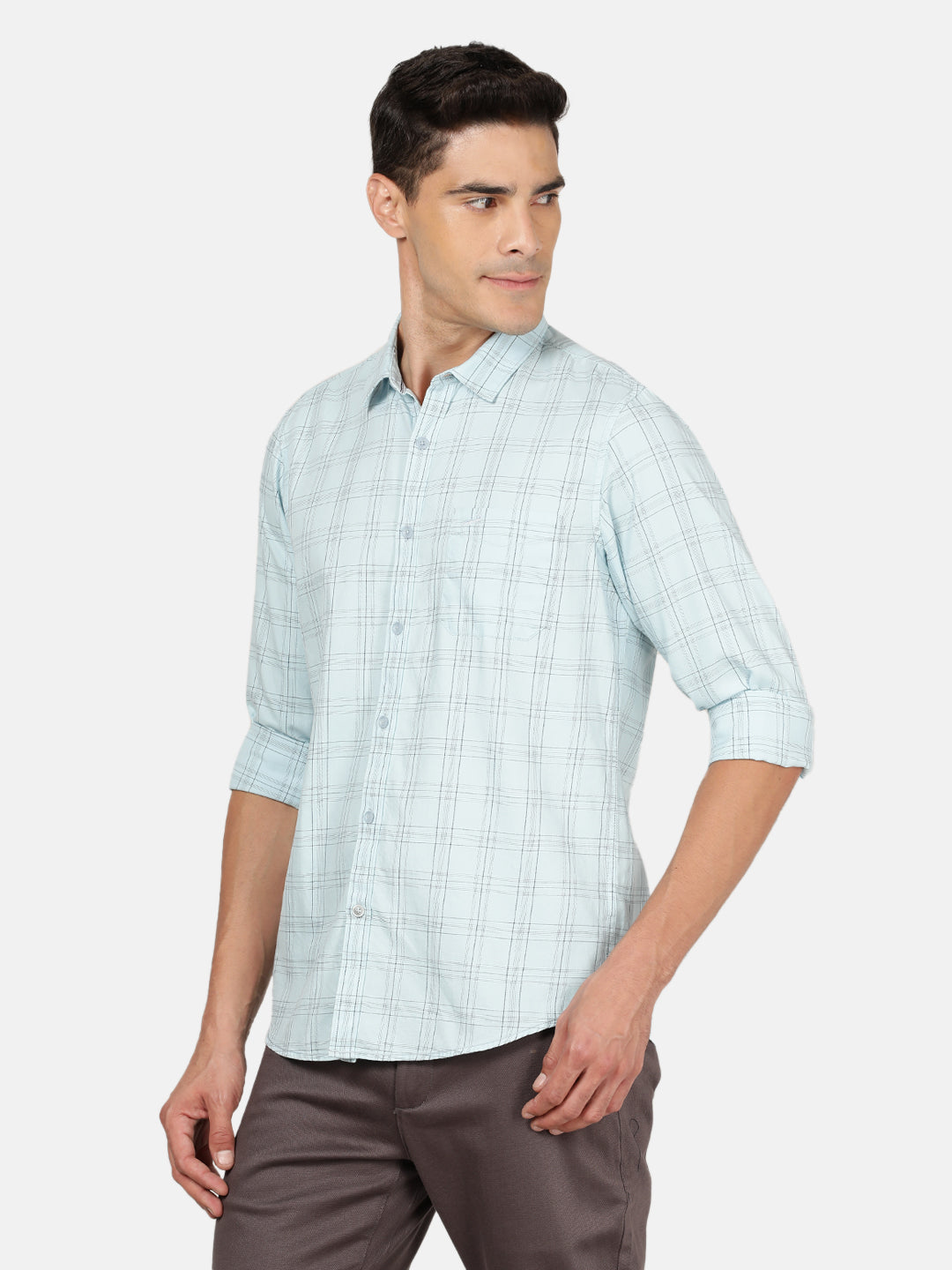 Light Blue Checked Casual Full Sleeve 100% Cotton Shirt