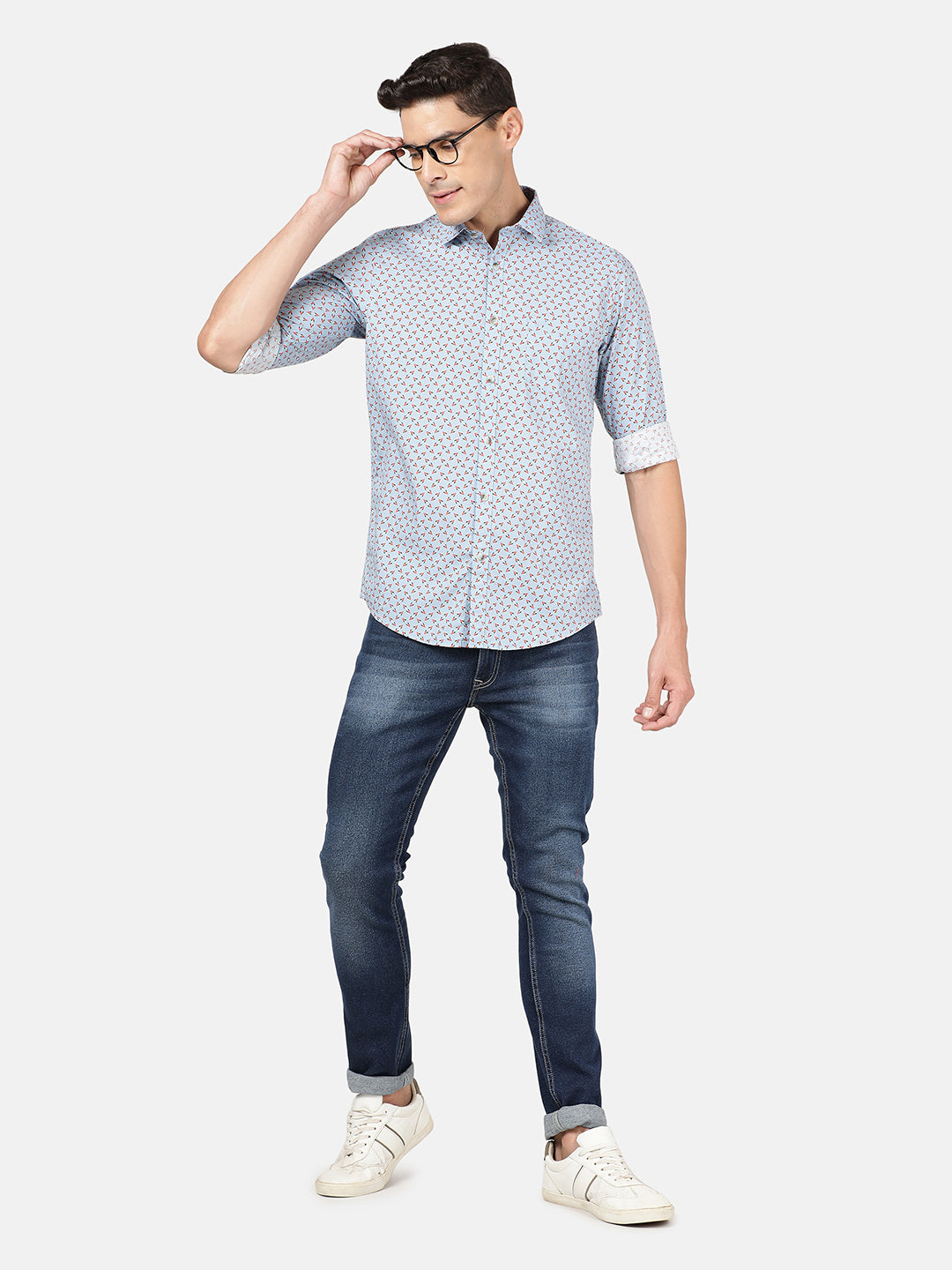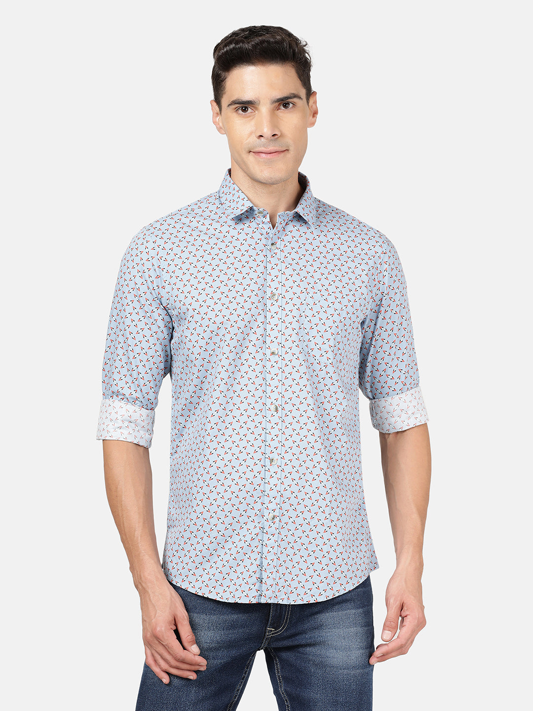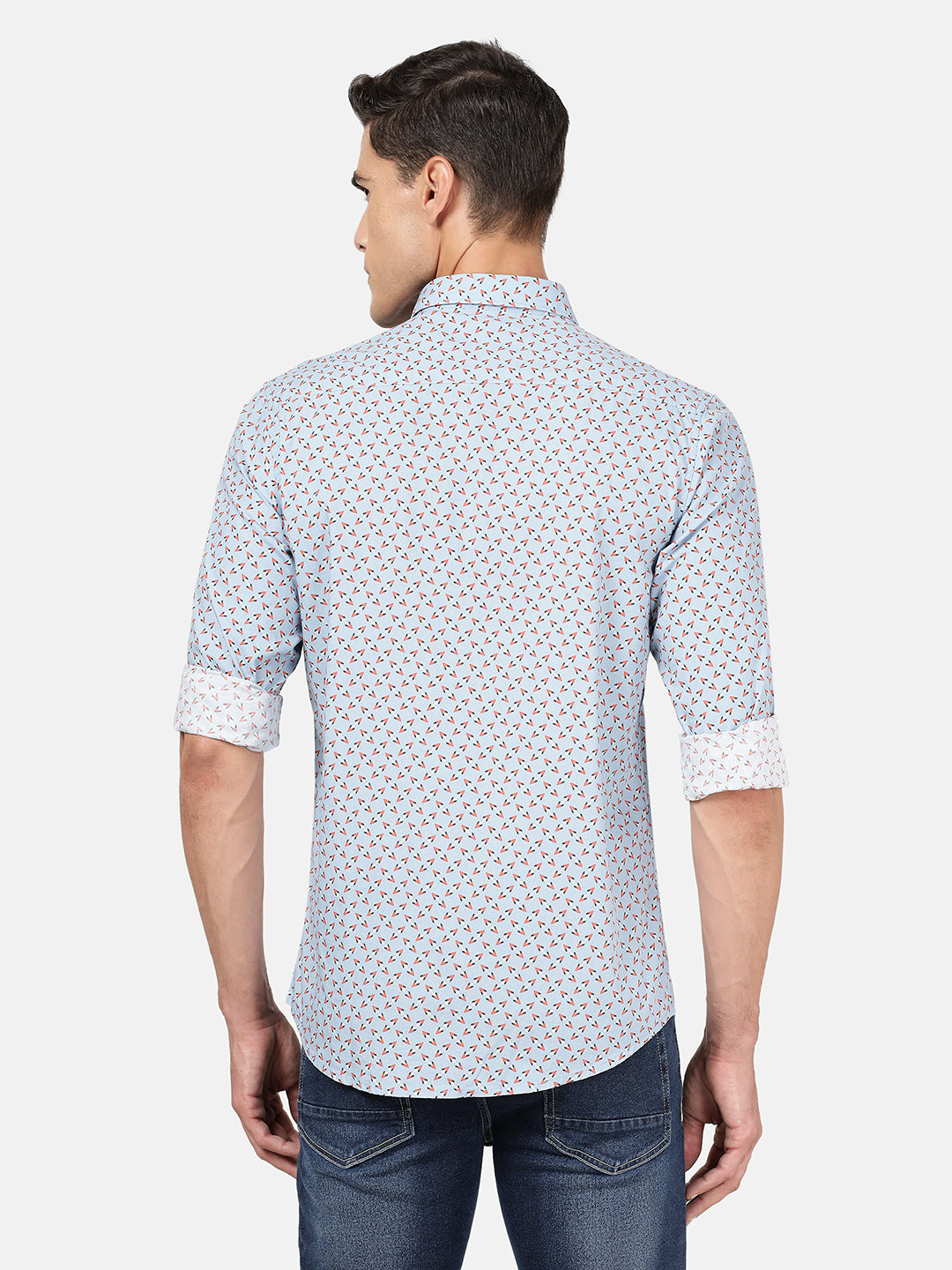 Light Blue Printed Full Sleeve 100% Cotton Shirt