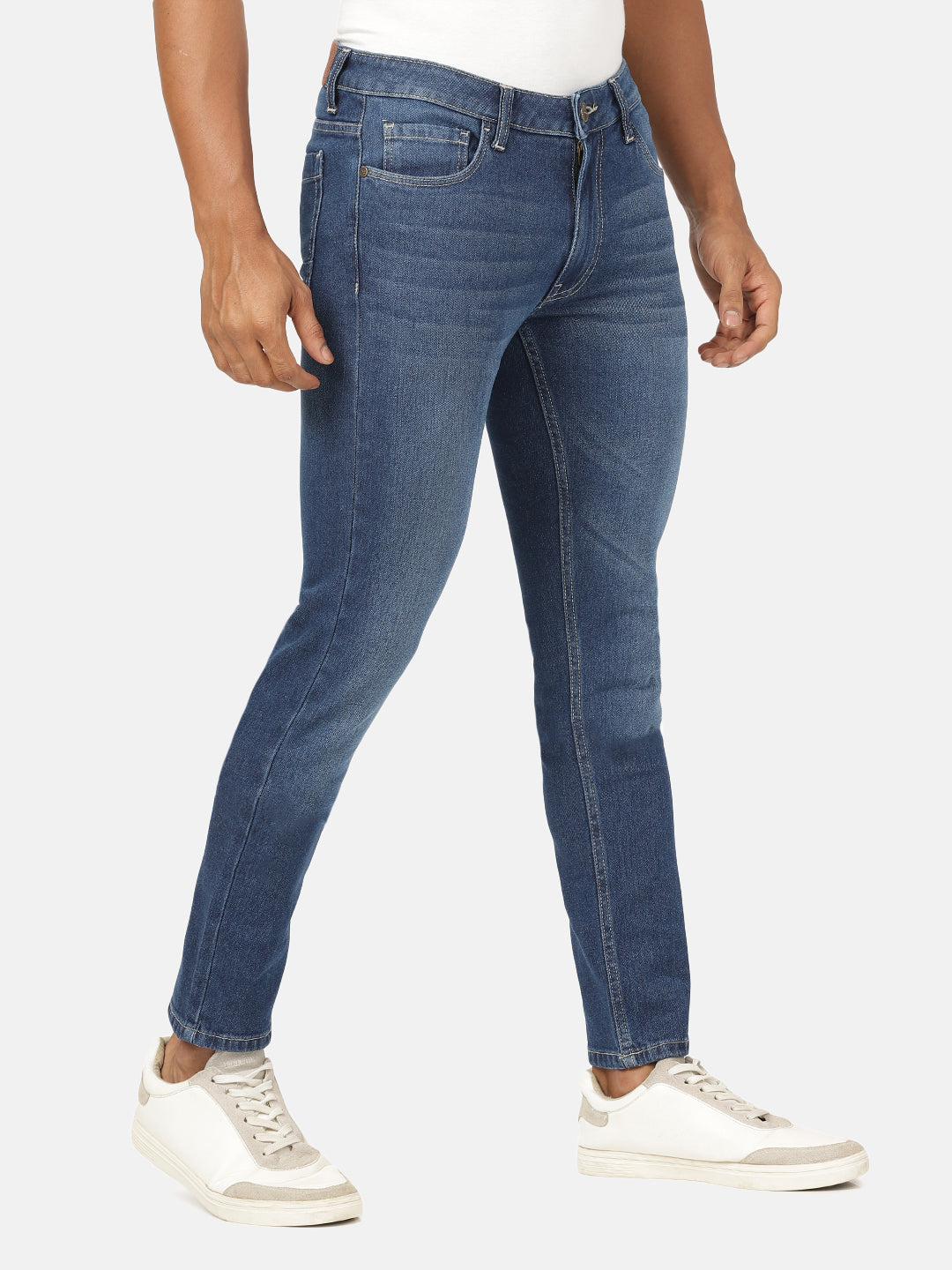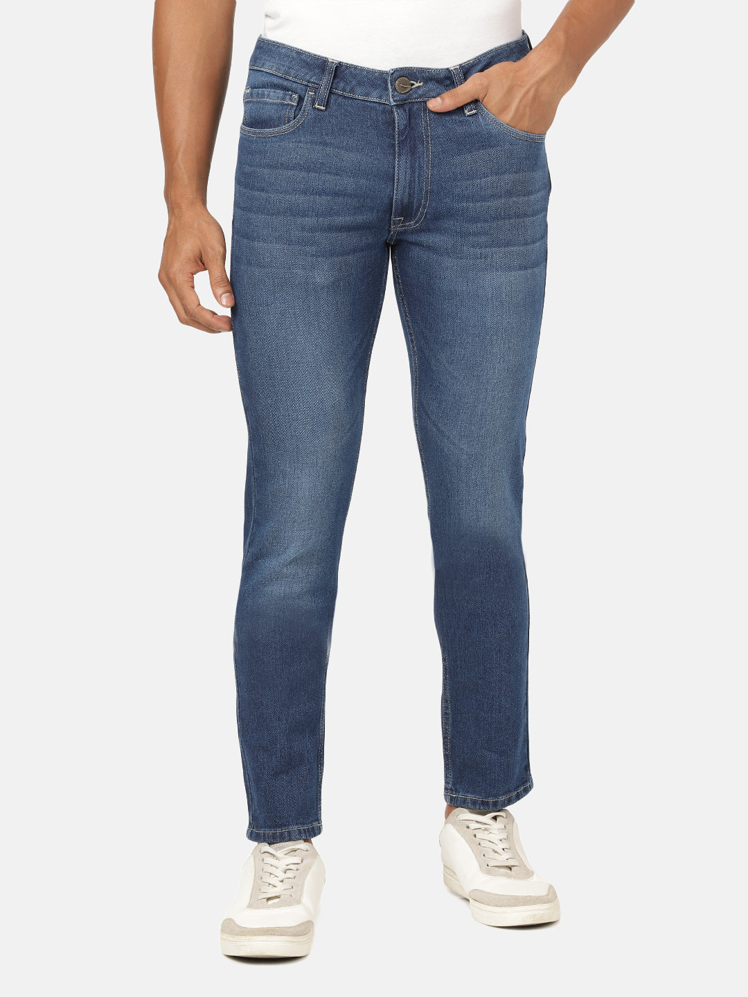 Light Blue Solid Mid Rise Slim Tapered Casual Jean