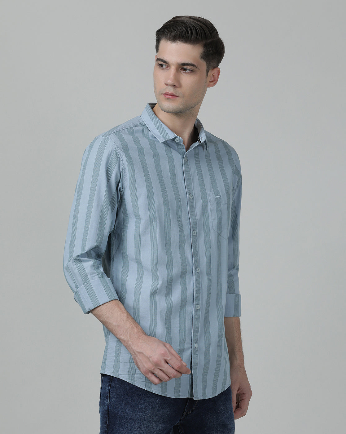 Light Blue Striped Full Sleeve 100% Cotton Casual Shirt