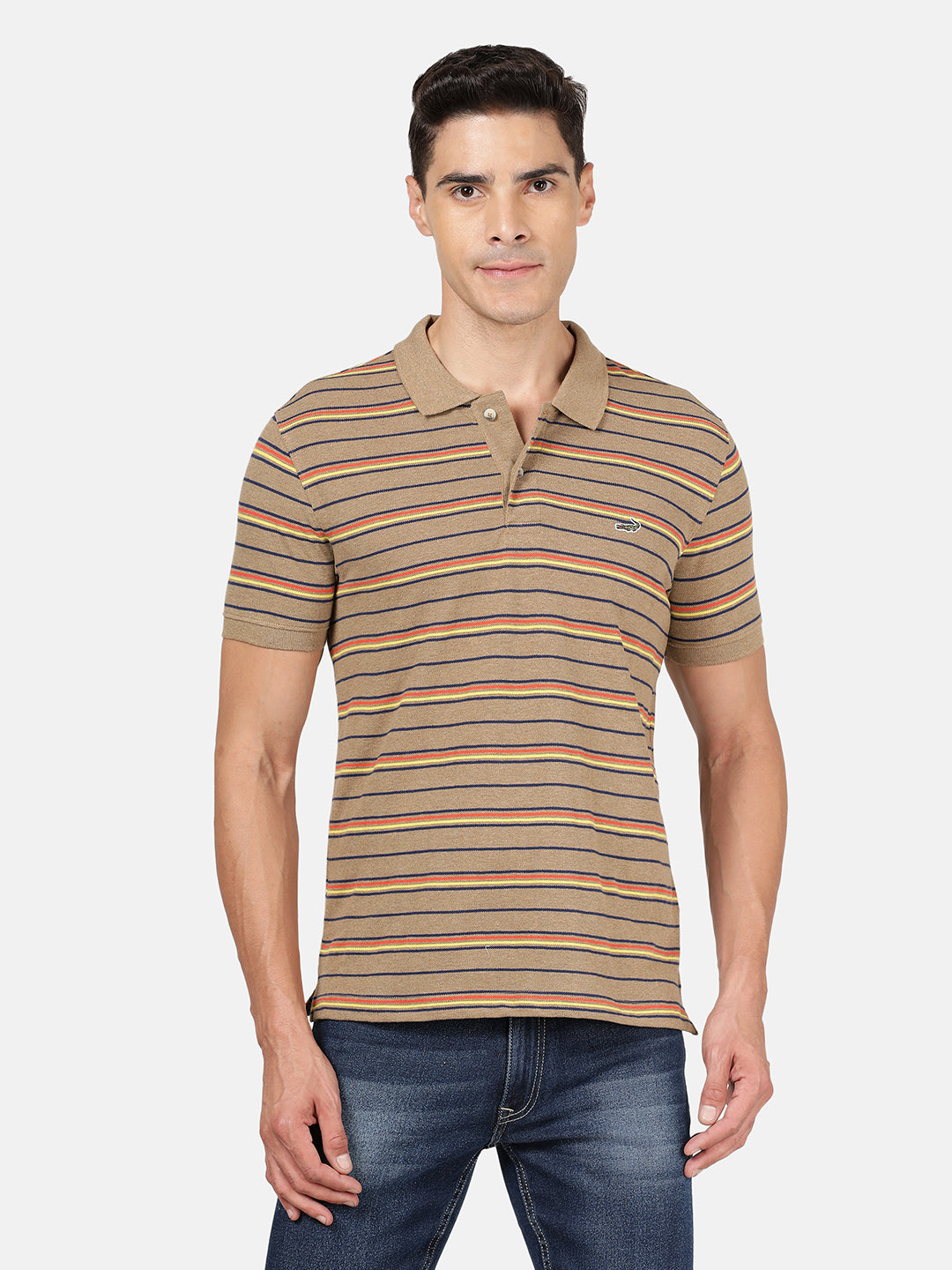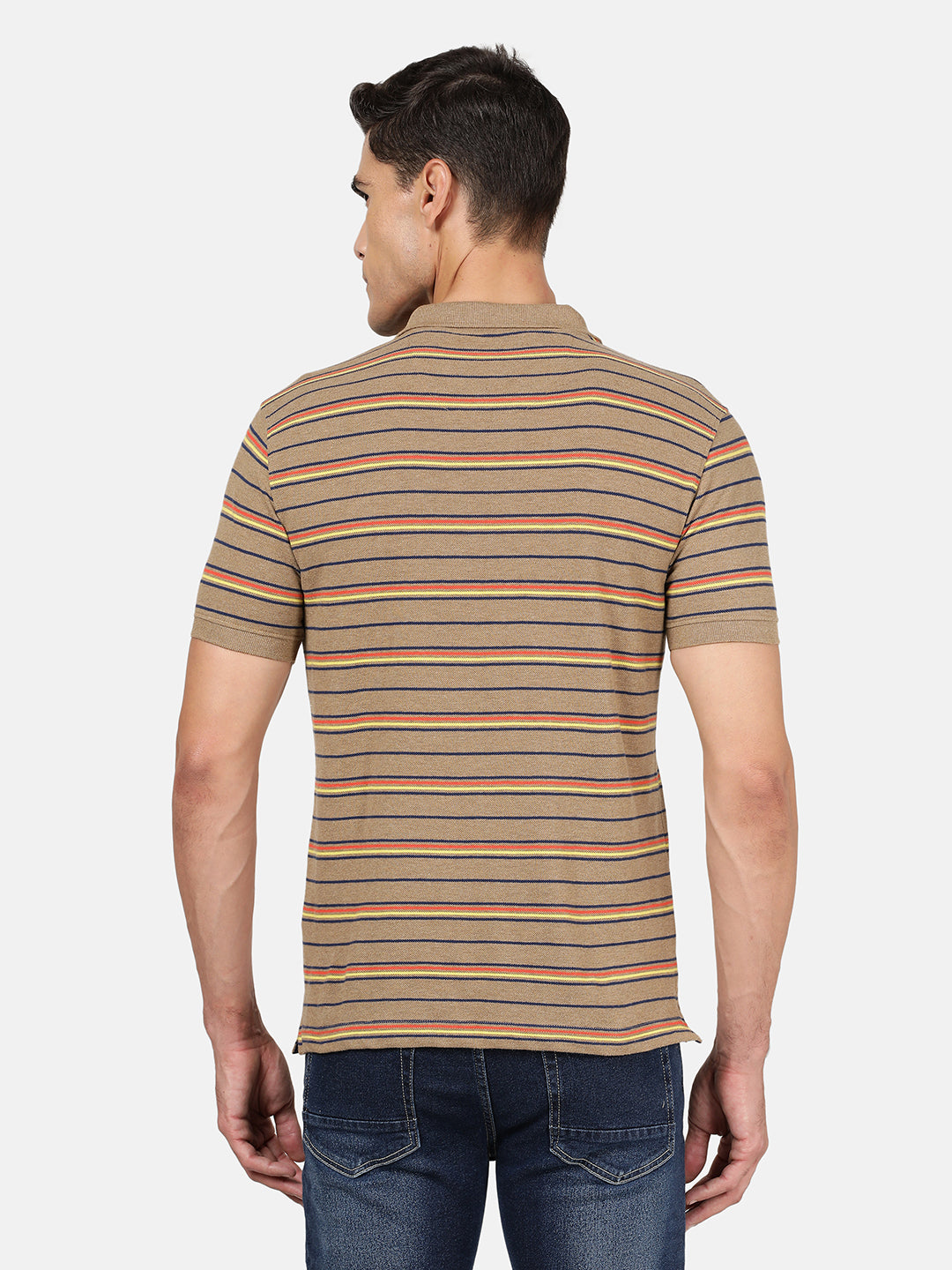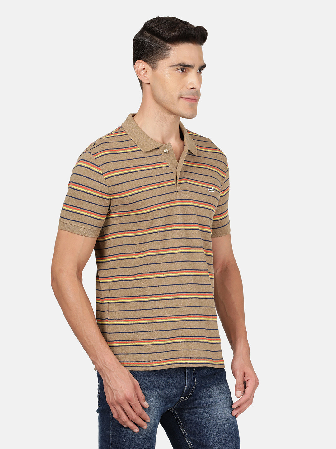 Light Brown Striped Polo T-Shirt