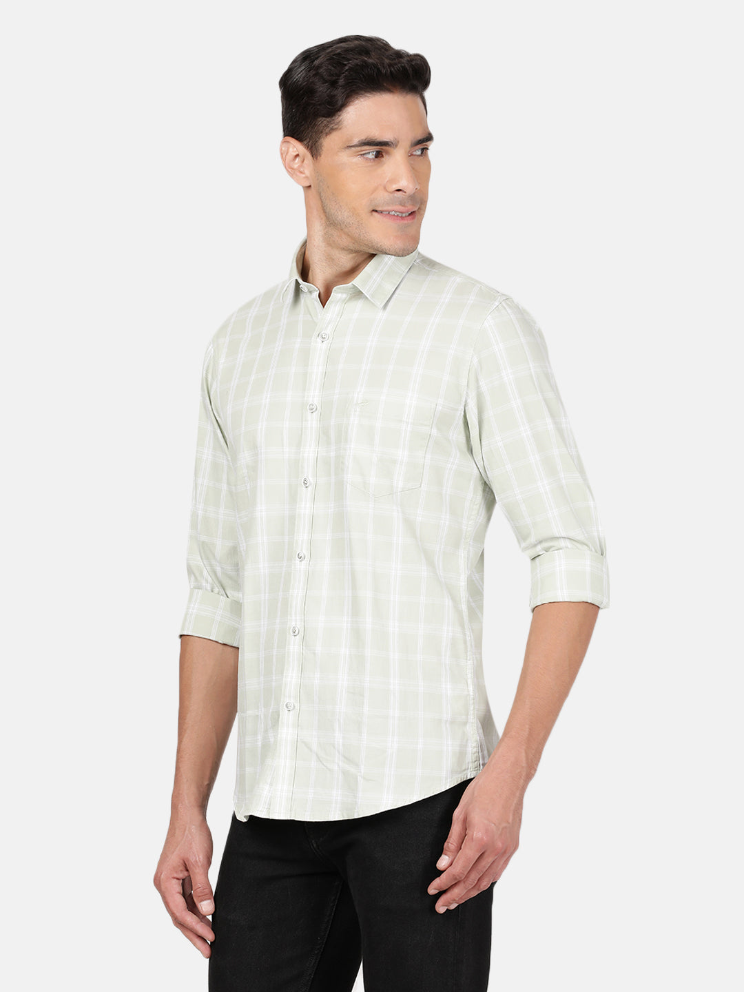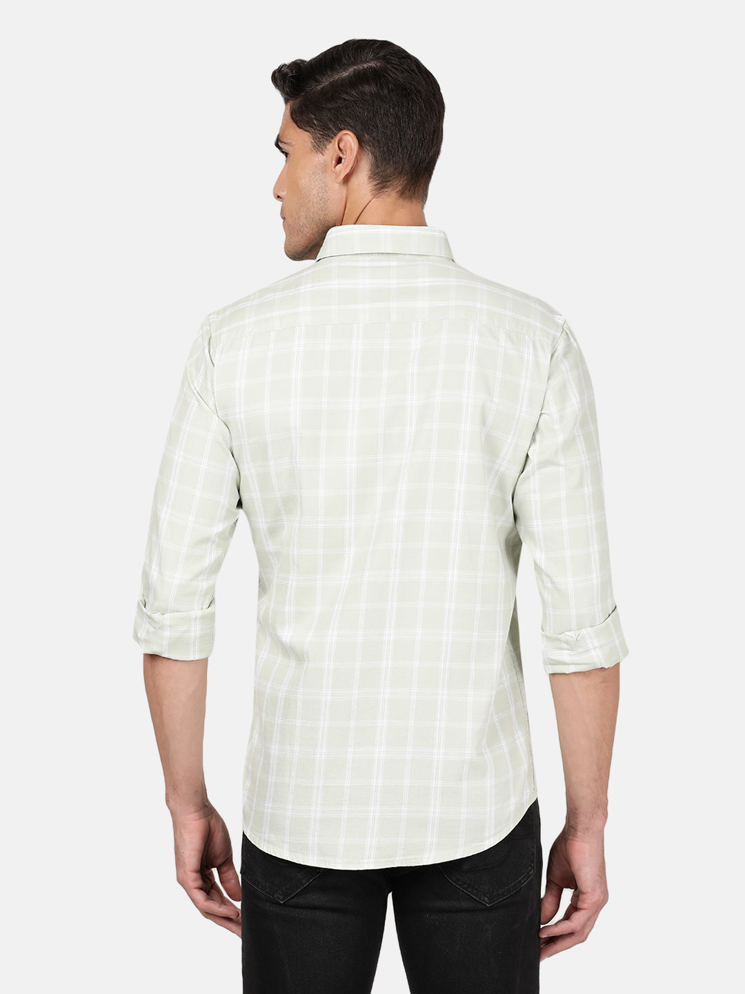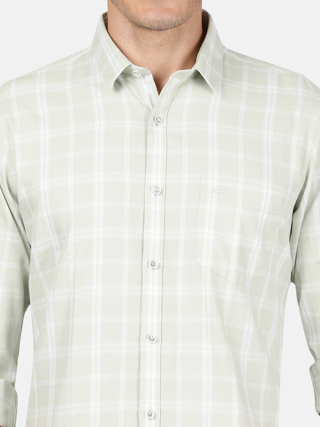 Light Green Checked Full Sleeve 100% Cotton Casual Shirt