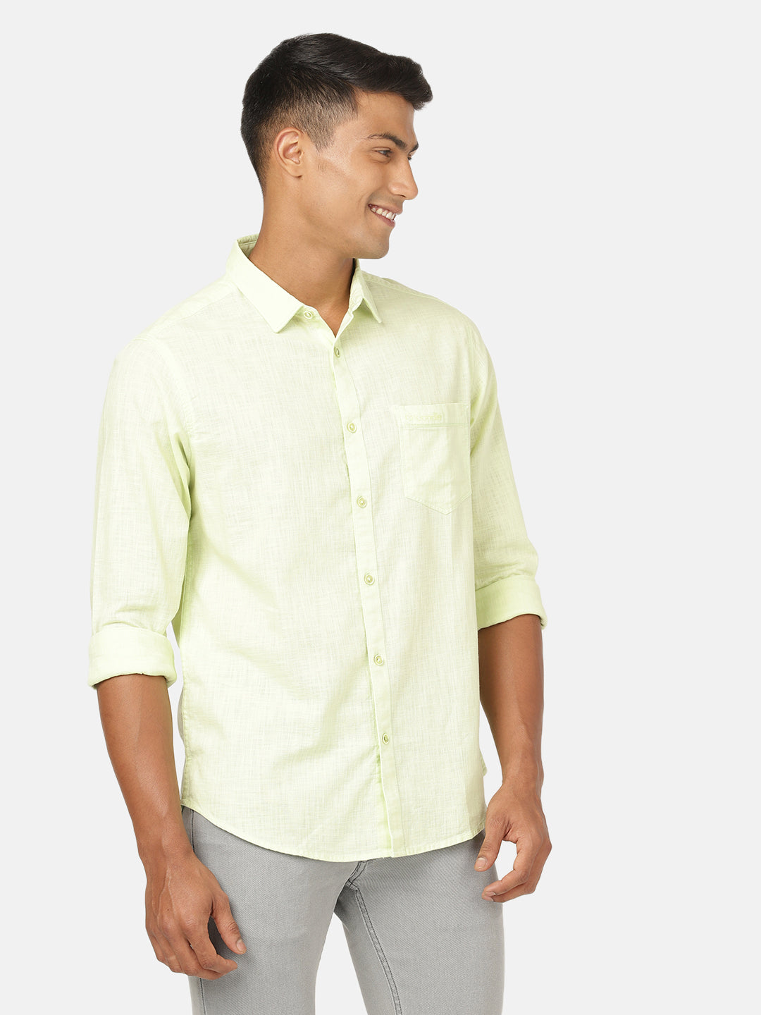 Light Green Solid Full Sleeve 100% Cotton Shirt